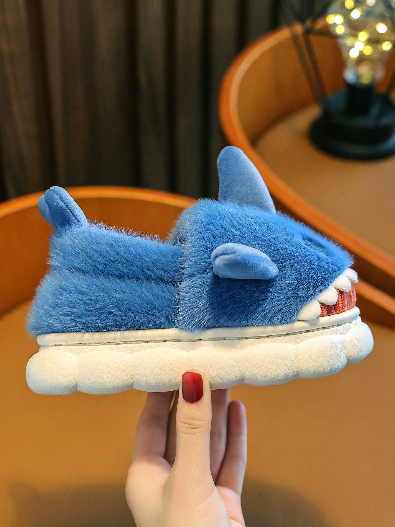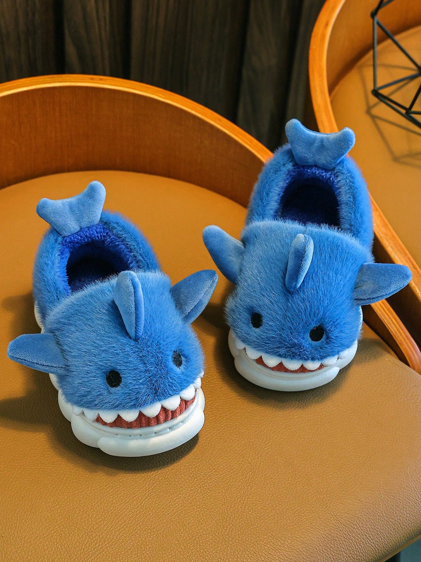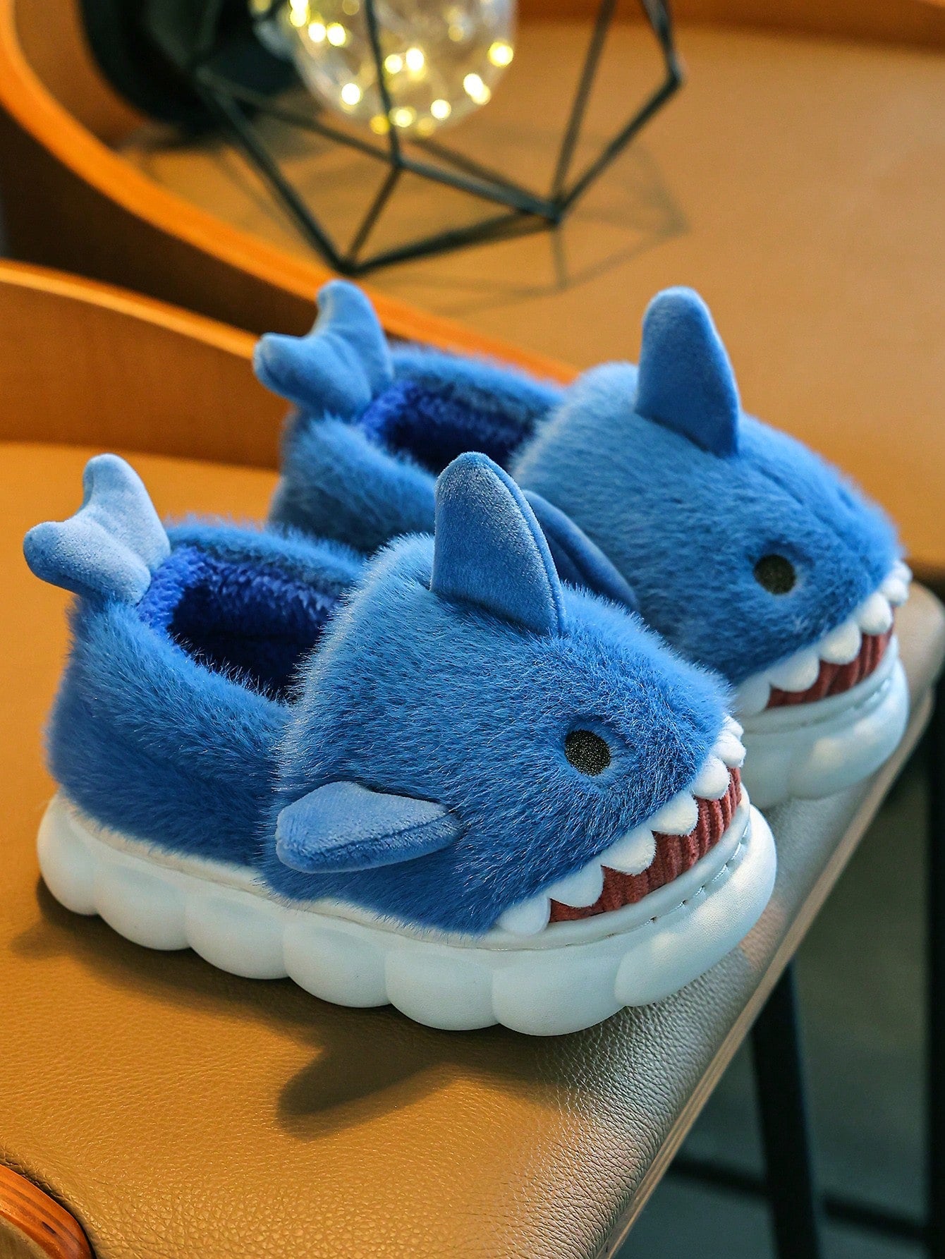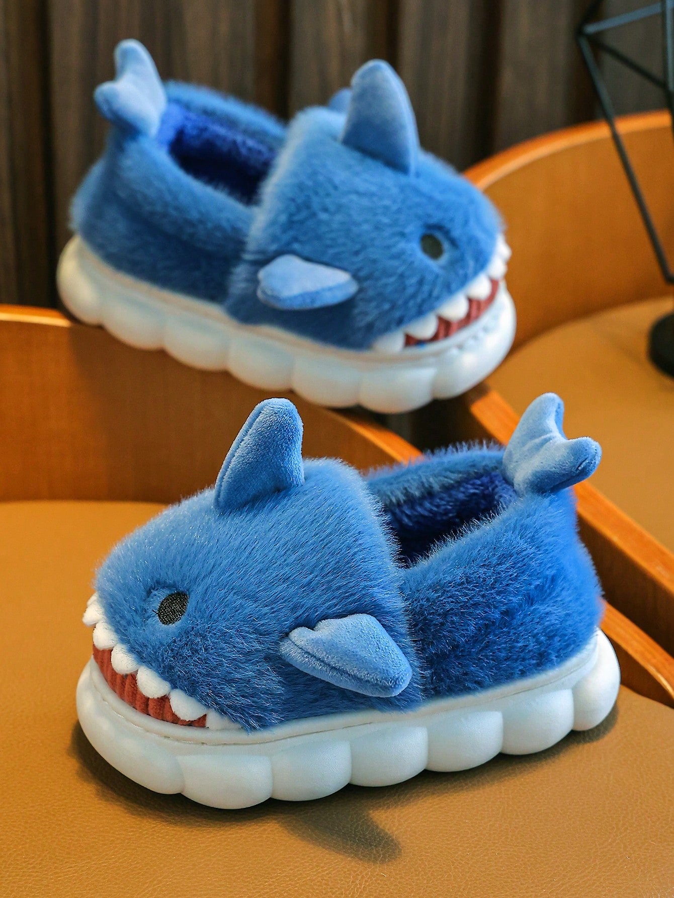 زوج نعال وشبشب فرو قطيفة بشكل سمكة قرش جميلة للأولاد، مناسبة للاستخدام في الشتاء