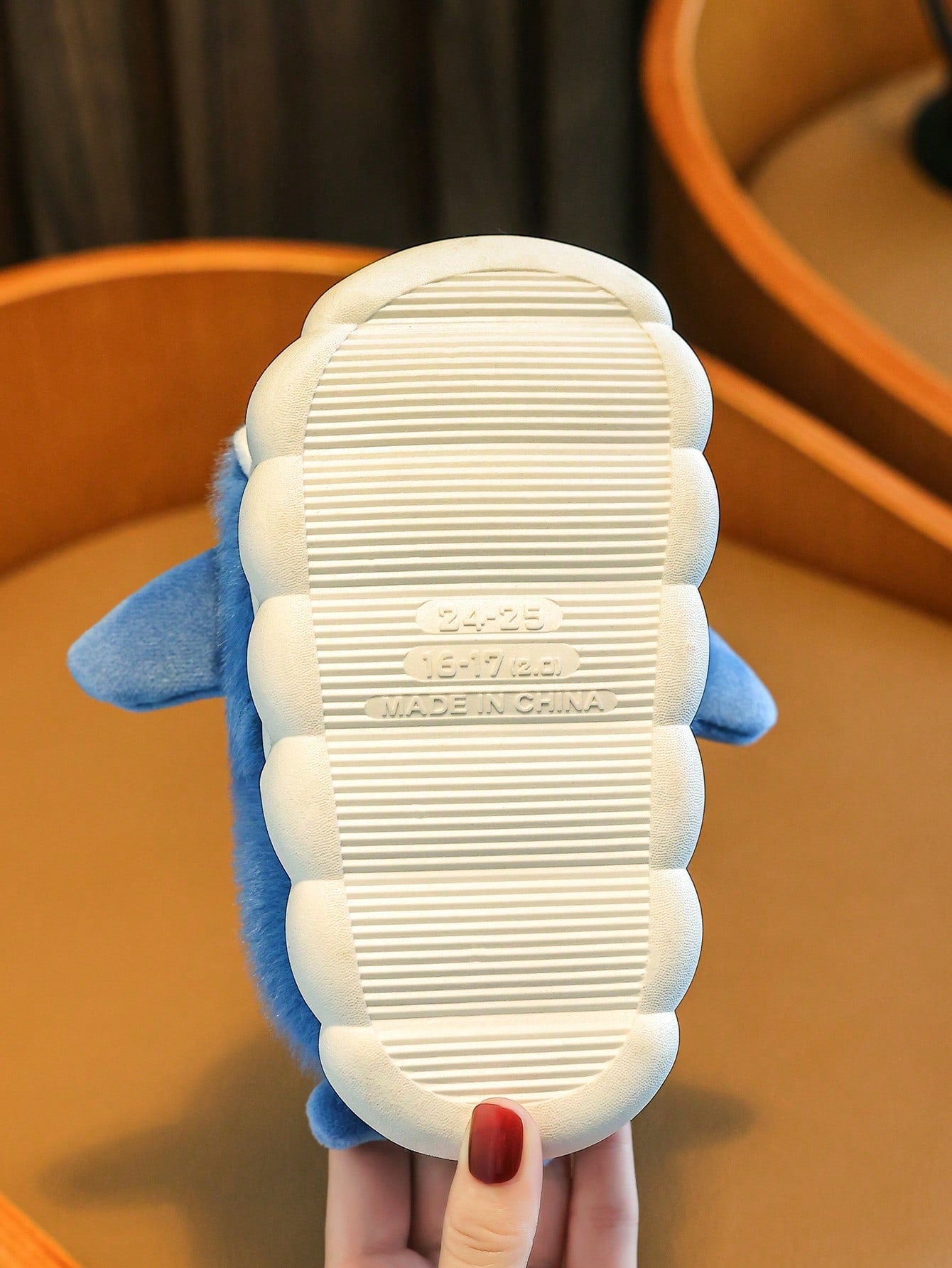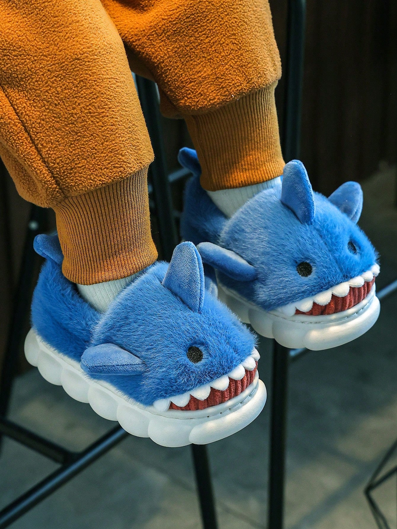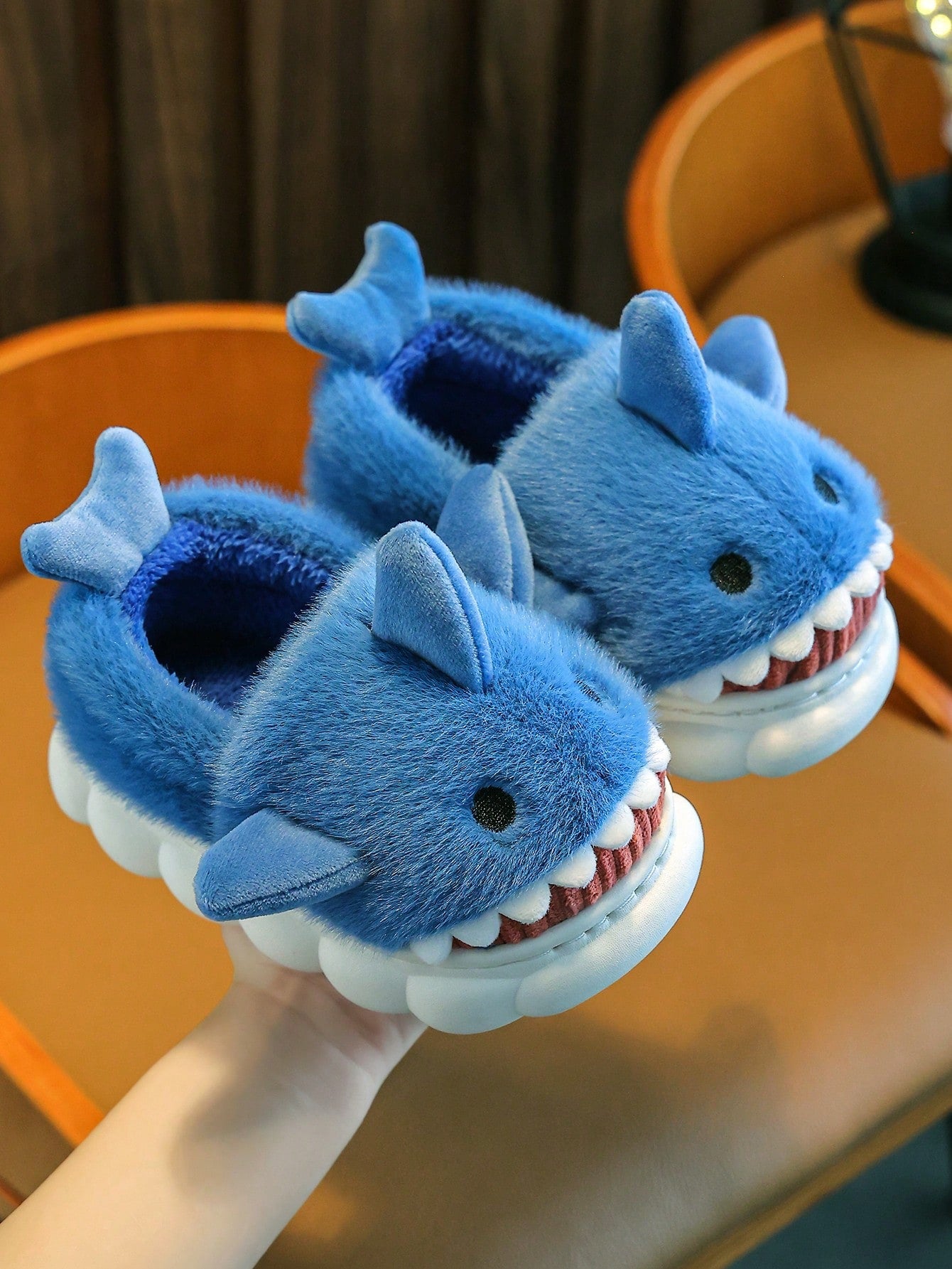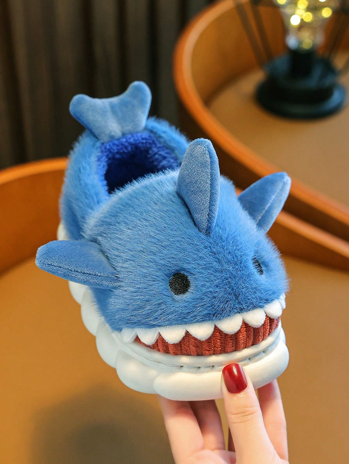 زوج نعال وشبشب فرو قطيفة بشكل سمكة قرش جميلة للأولاد، مناسبة للاستخدام في الشتاء