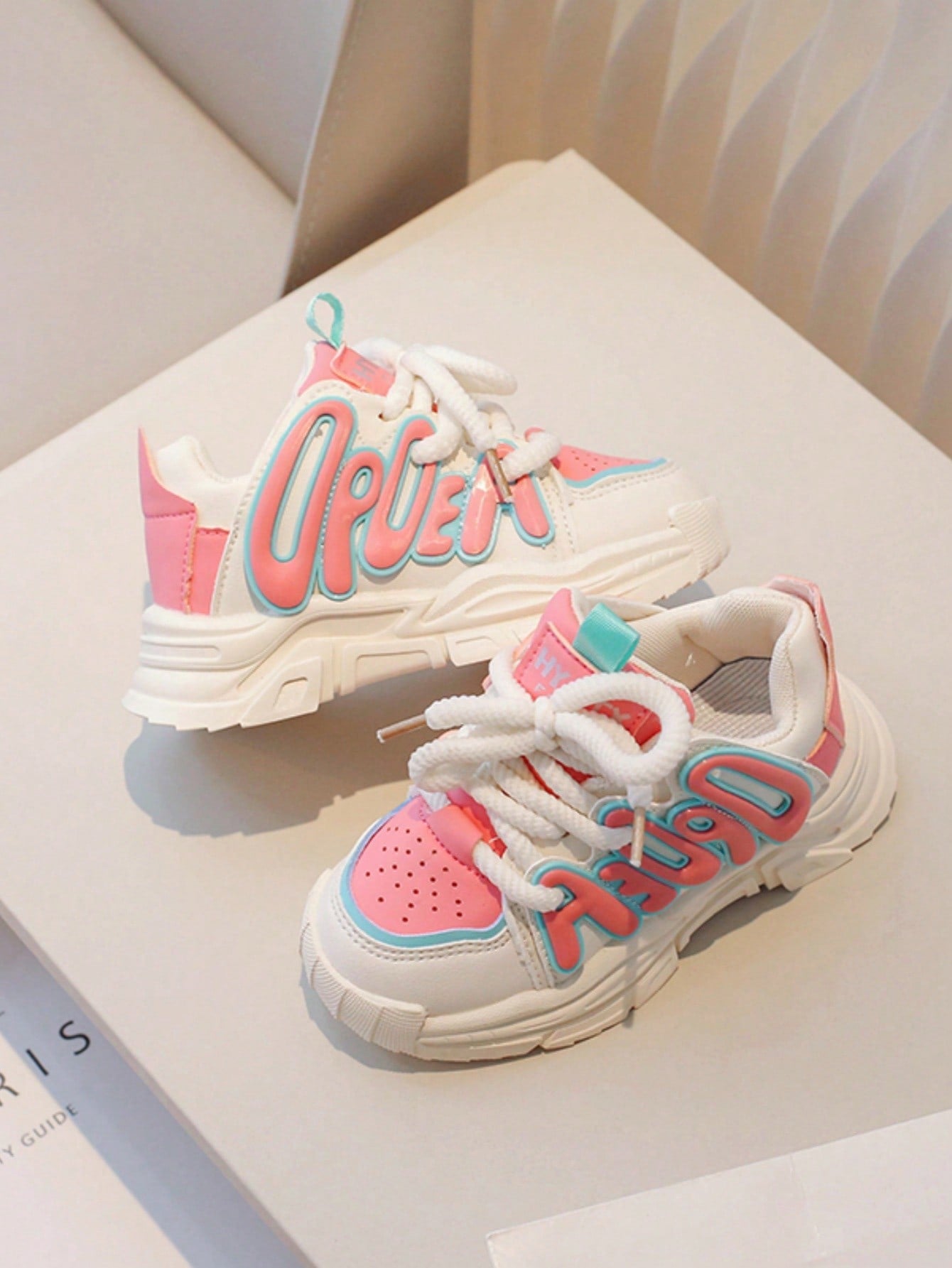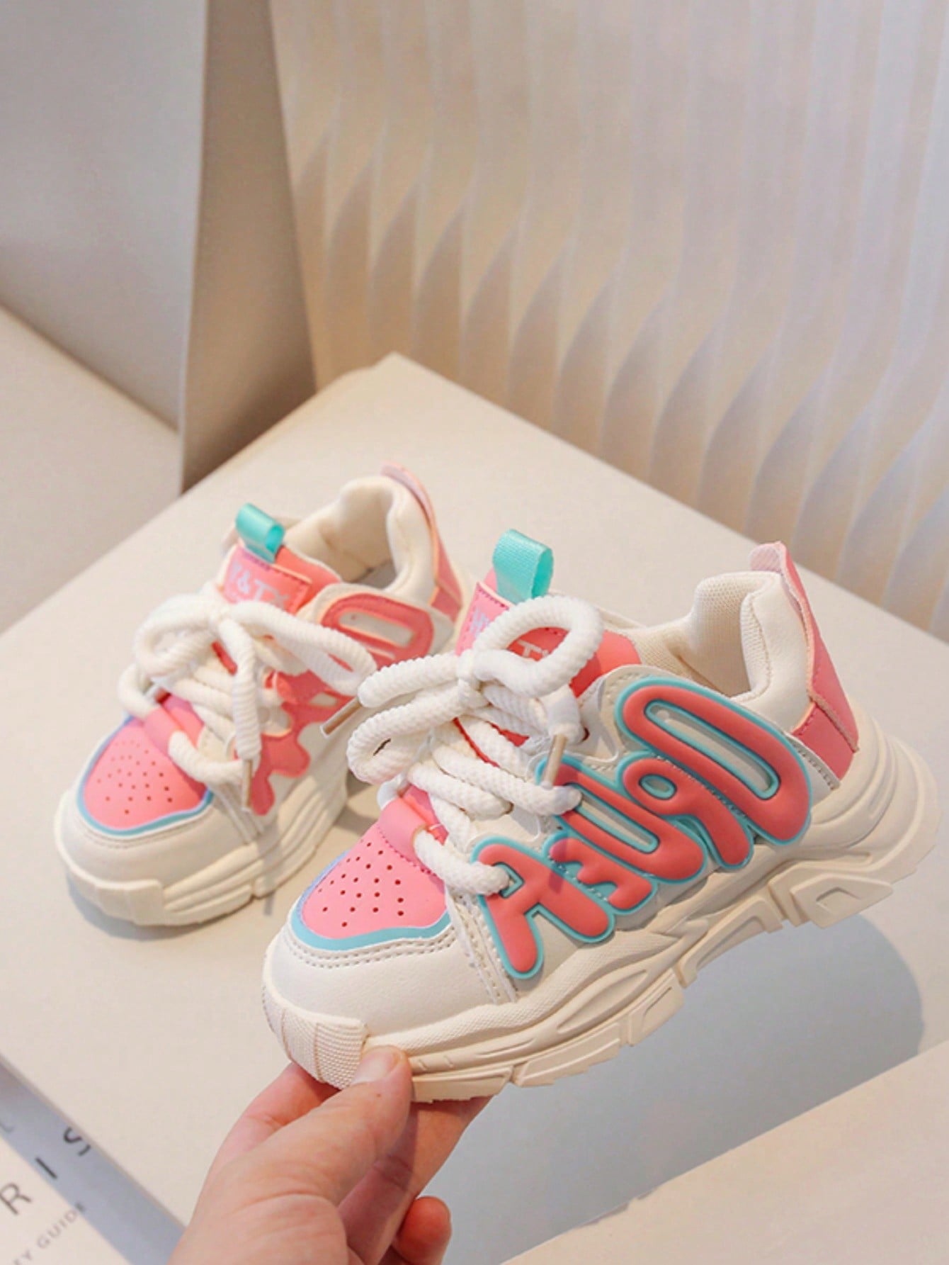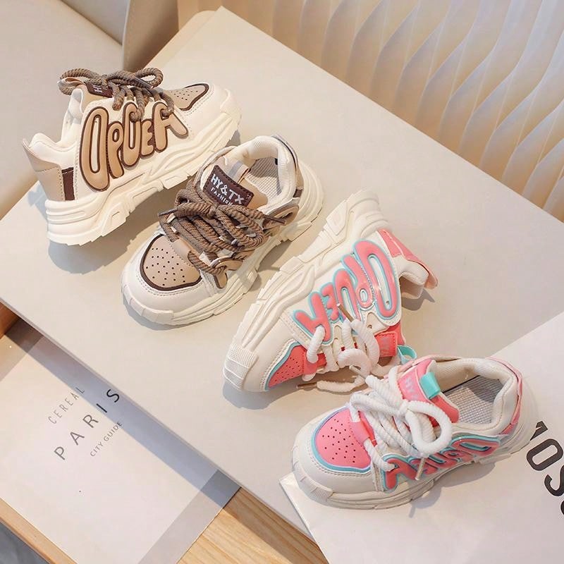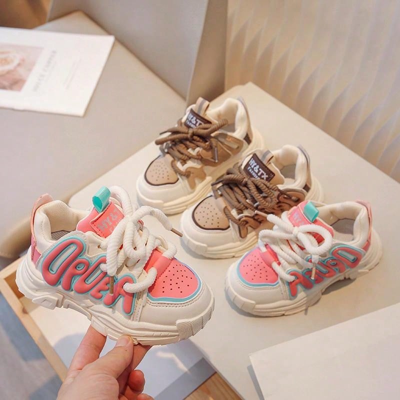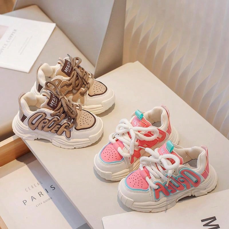زوج واحد من أحذية الجري المقاومة للانزلاق للأطفال الأولاد والبنات مع زخرفة الحروف للربيع والصيف والخريف والشتاء