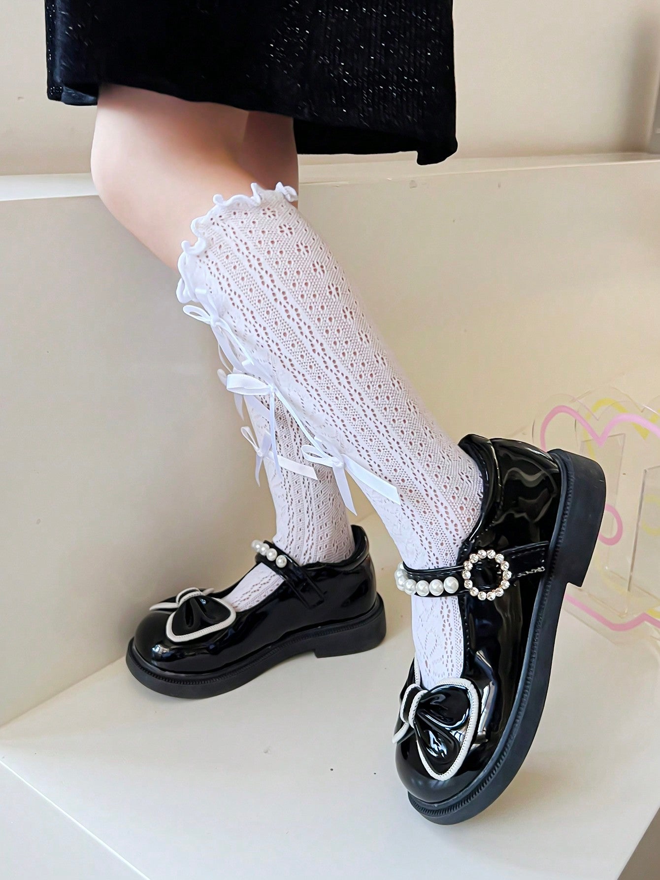 زوج واحد من الجوارب للفتيات حتى الركبة مع ديكور على شكل فيونكة