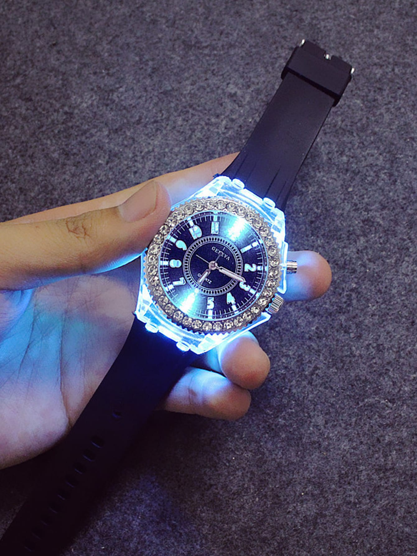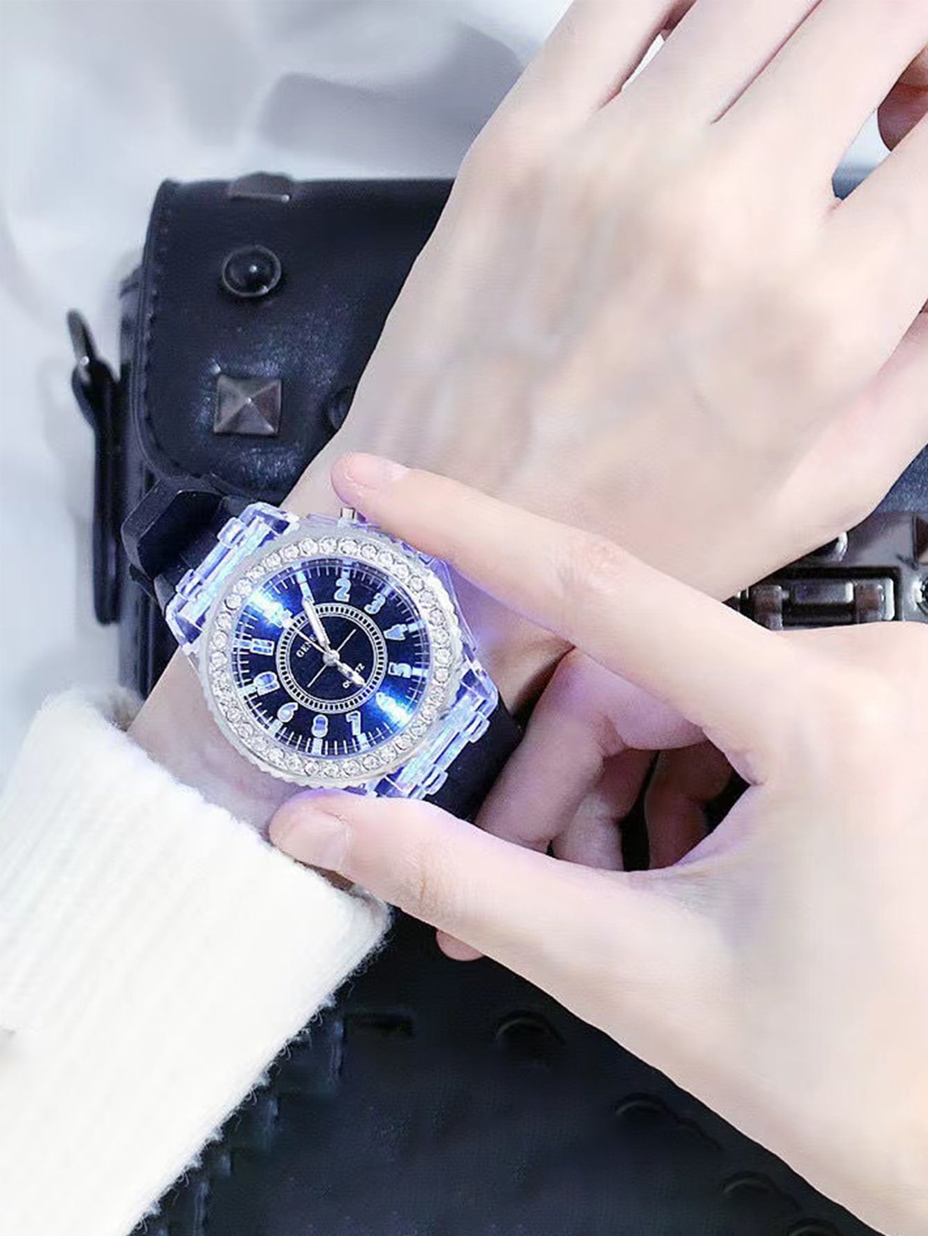 ساعة السوار موضة للنساء حجر الراين مرصعة ليد متعدد الألوان إضاءة الى كاجوال ارتداء في خريف
