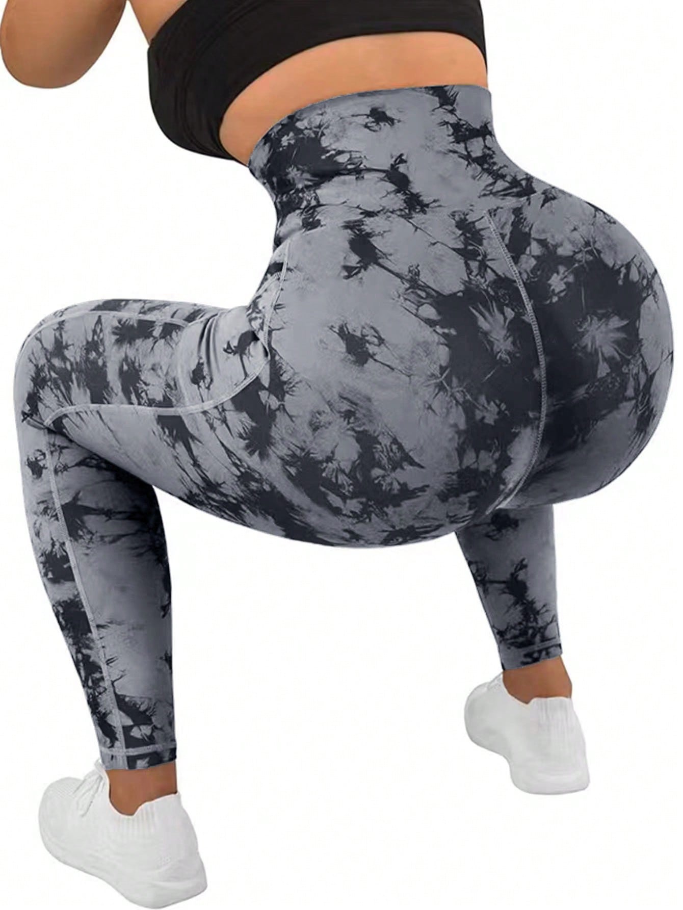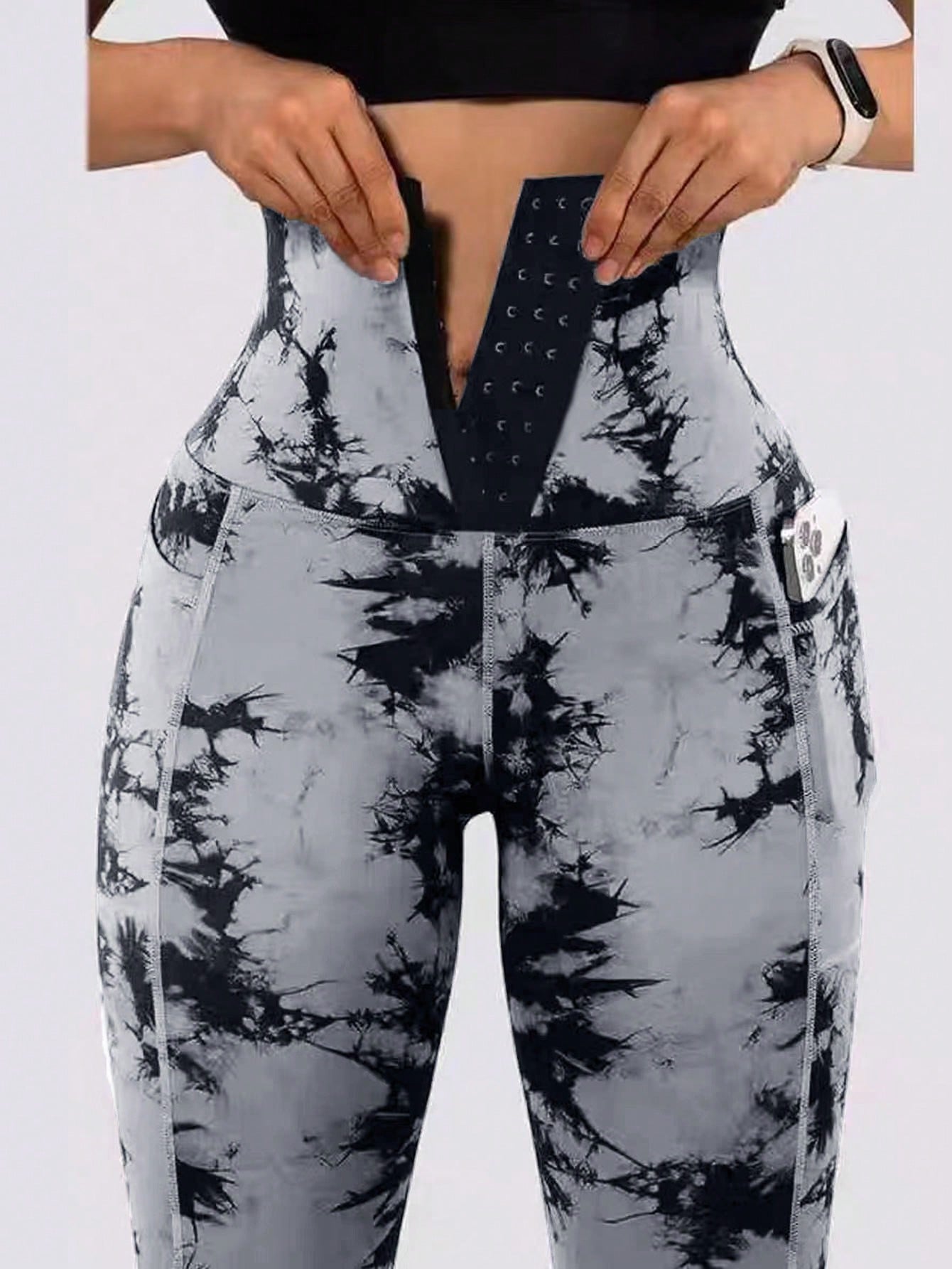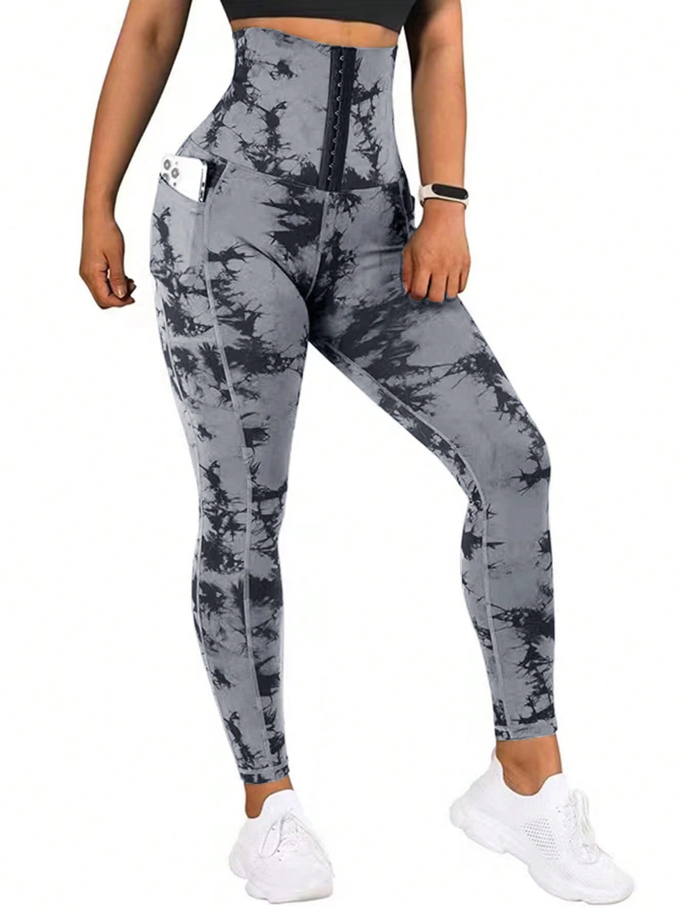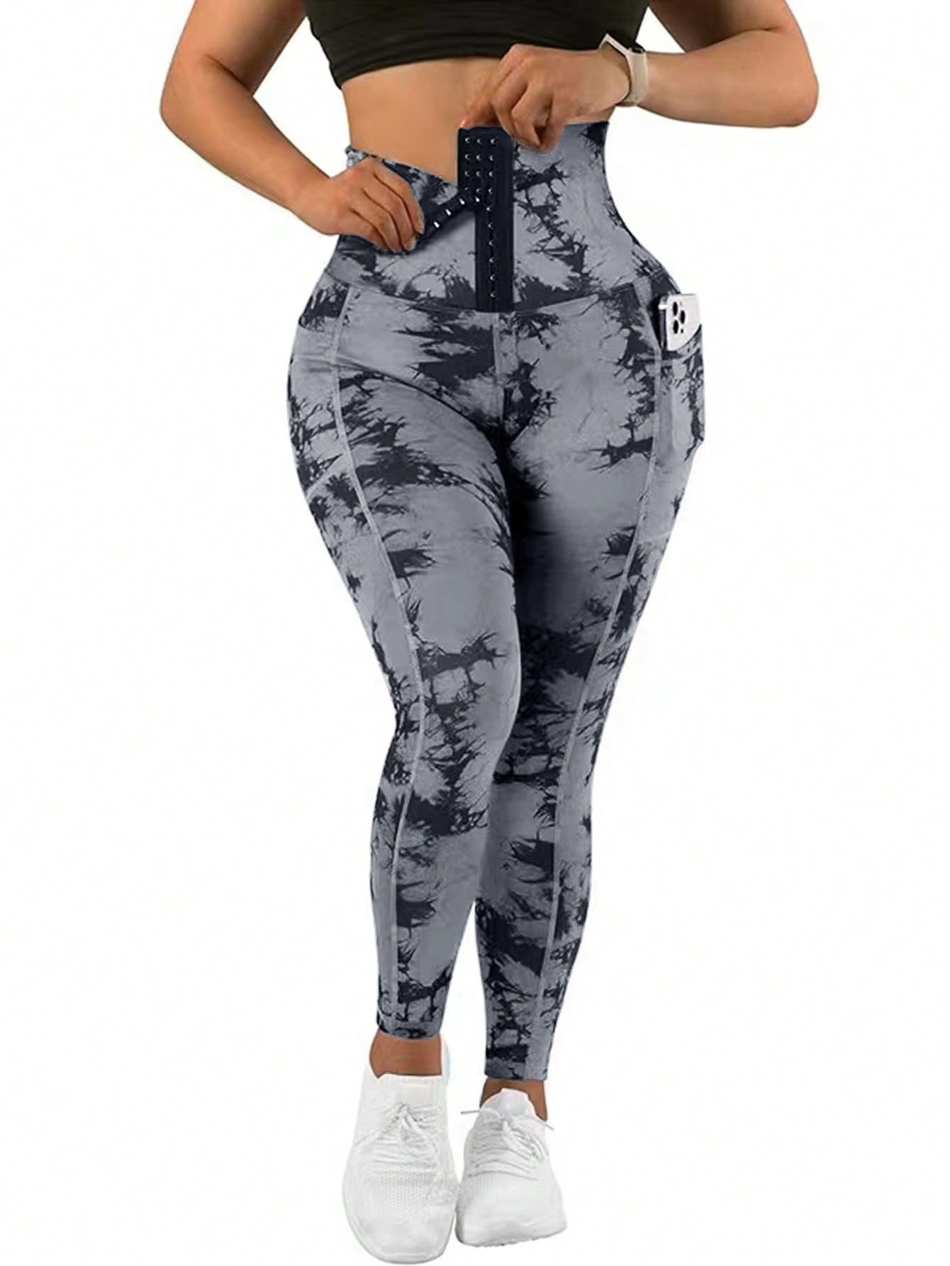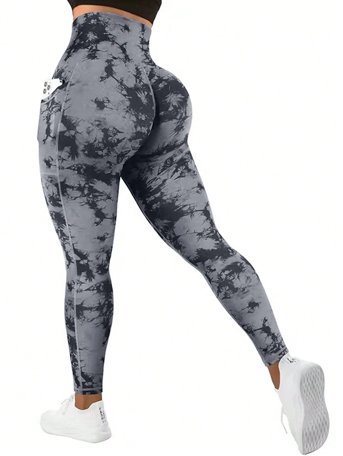 ساقي رياضية للطباعة بربطة الصباغة بالغسل بالجيب للخصر العالي للنساء للدراجات الهوائية والجري والتنس لخارج المنزل قطعة واحدة