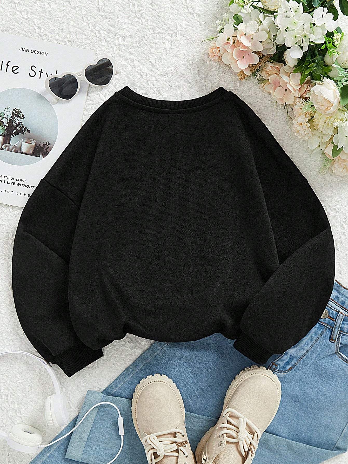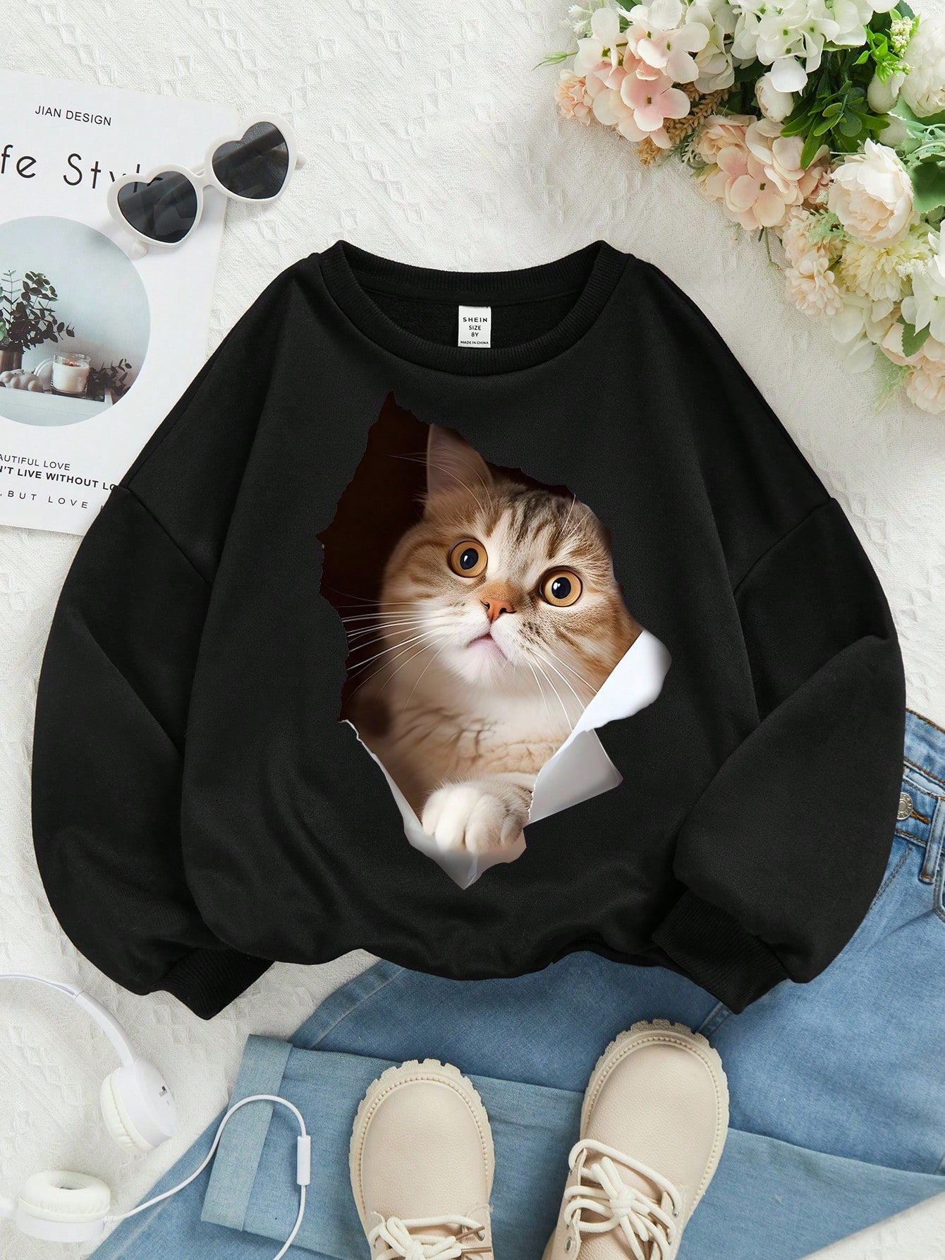 سترة بقبة دائرية وأكمام طويلة للفتاة المراهقة بنمط كرتوني عارضة لفصلي الخريف والشتاء