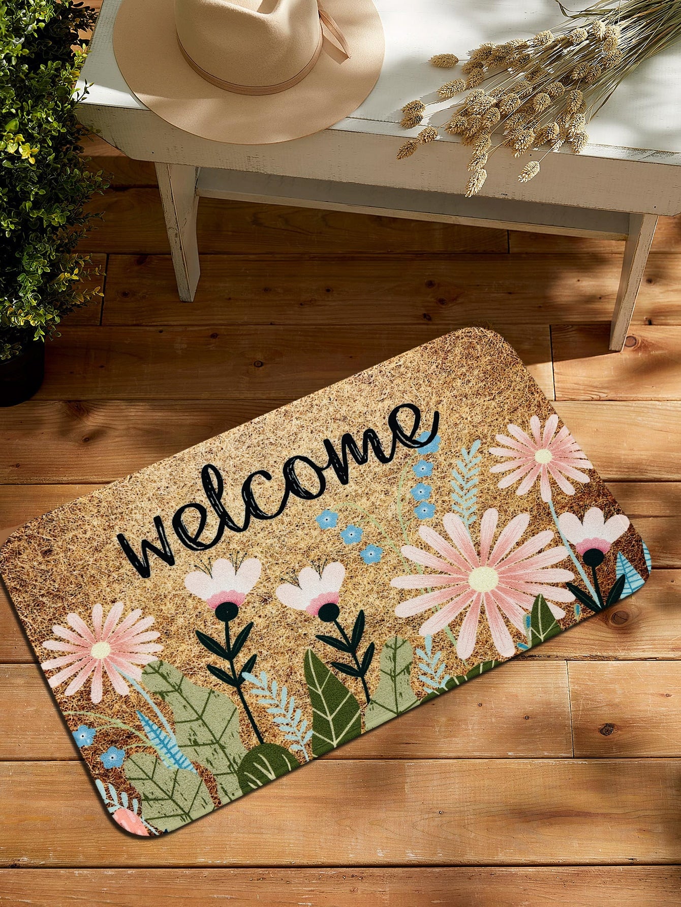 سجادة بوليستر أنيقة برسومات الزهور والأحرف لديكور المنزل