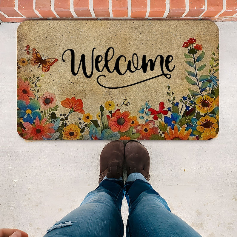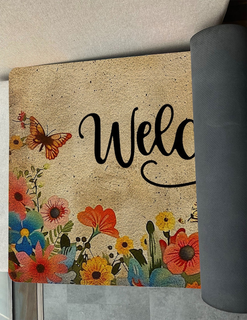 سجادة بوليستر أنيقة برسومات الزهور والأحرف لديكور المنزل