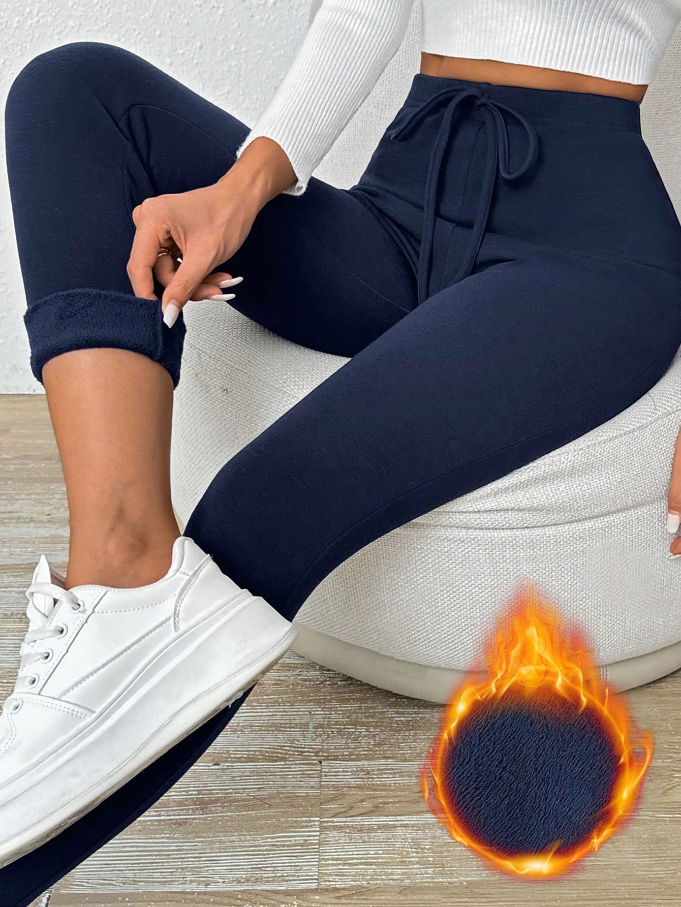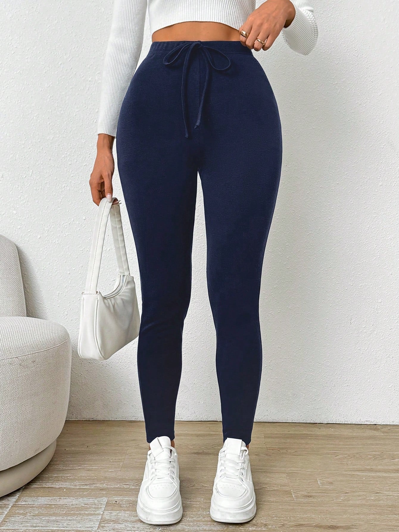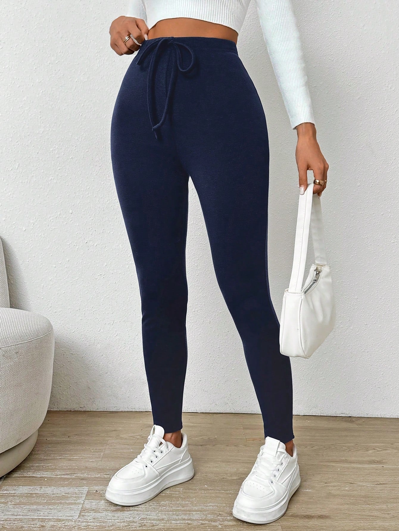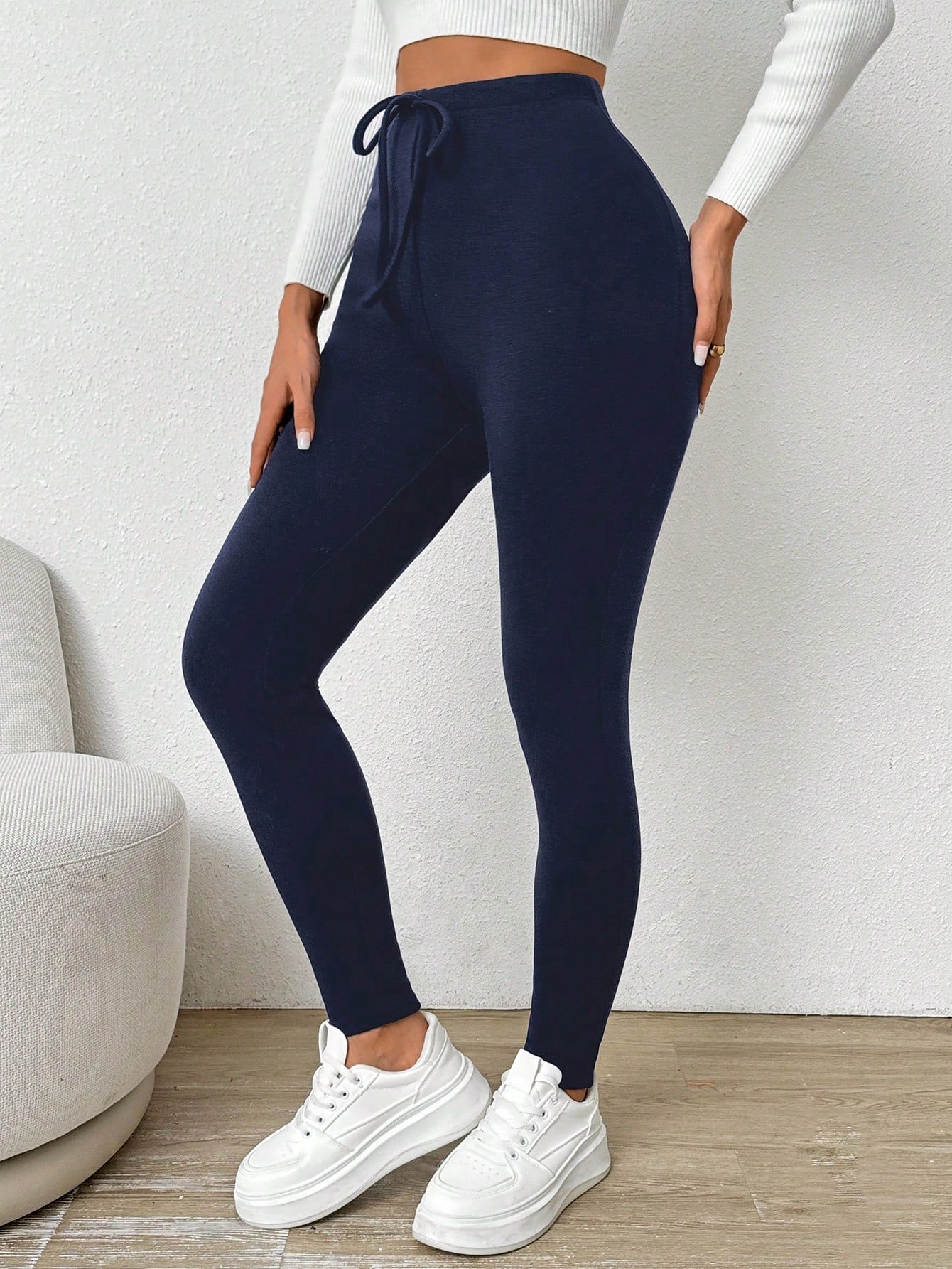 سراويل رياضية لنساء بلون أحادي مع ربطة خصر