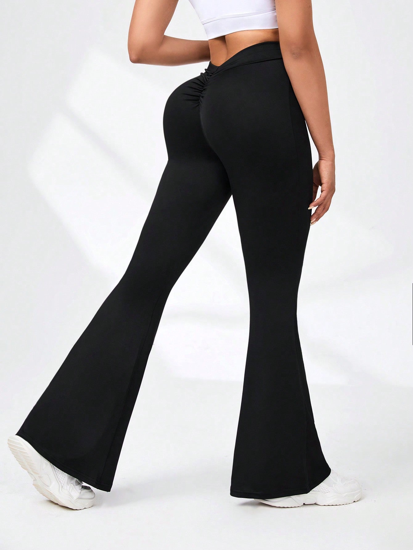 سروال رياضي بقصة واسعة وخصر مطاطي خلفي بتفاصيل مجعدة