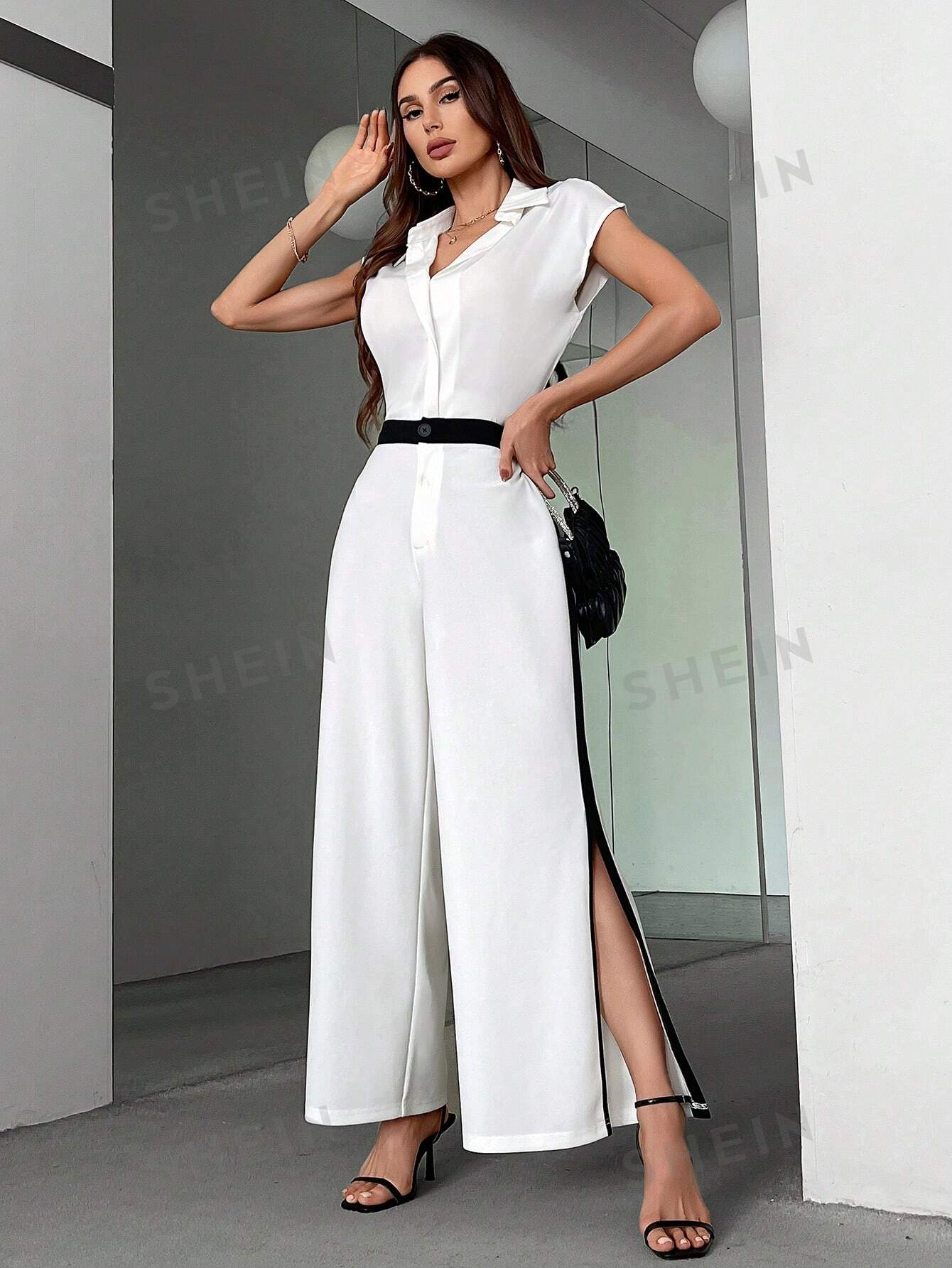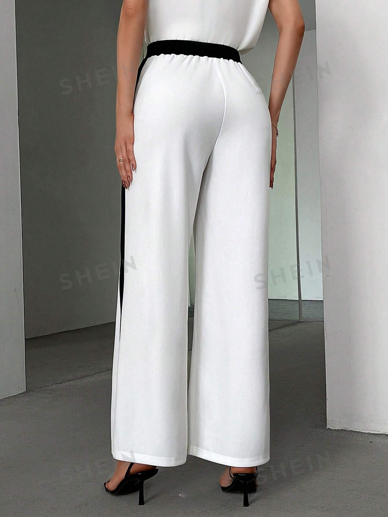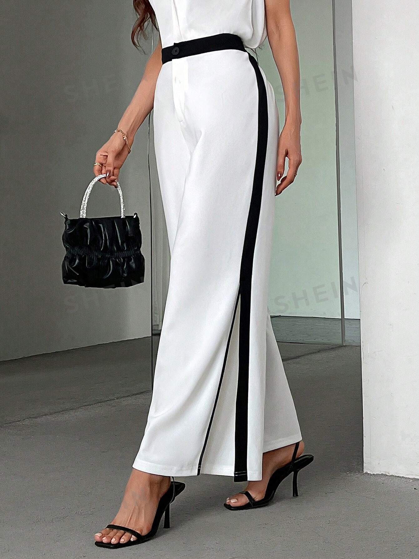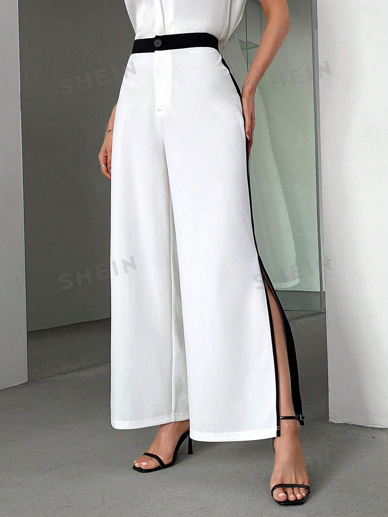 سروال واسع الساقين للنساء بتصميم بسيط وأنيق على شكل كتل الألوان مع شق جانبي