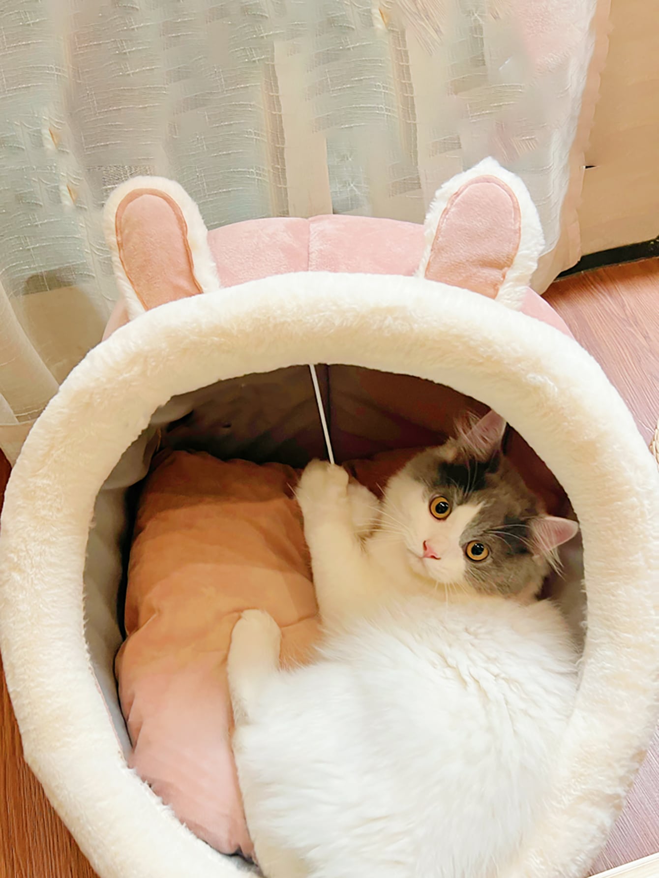 سرير الحيوانات الأليفة لتزيين الأذن وبيت الحيوانات الأليفة على شكل أرنب للكلاب والقطط وسرير قطة دافئ فتحة للقطط والكلاب الصغيرة في الأماكن المغلقة