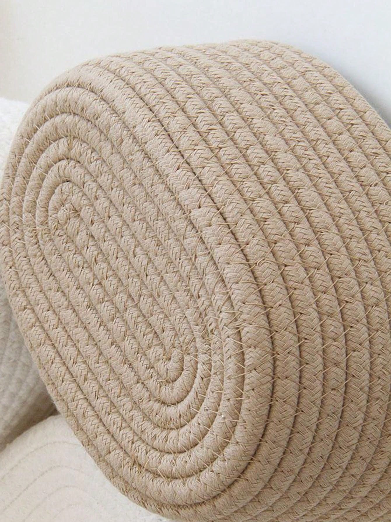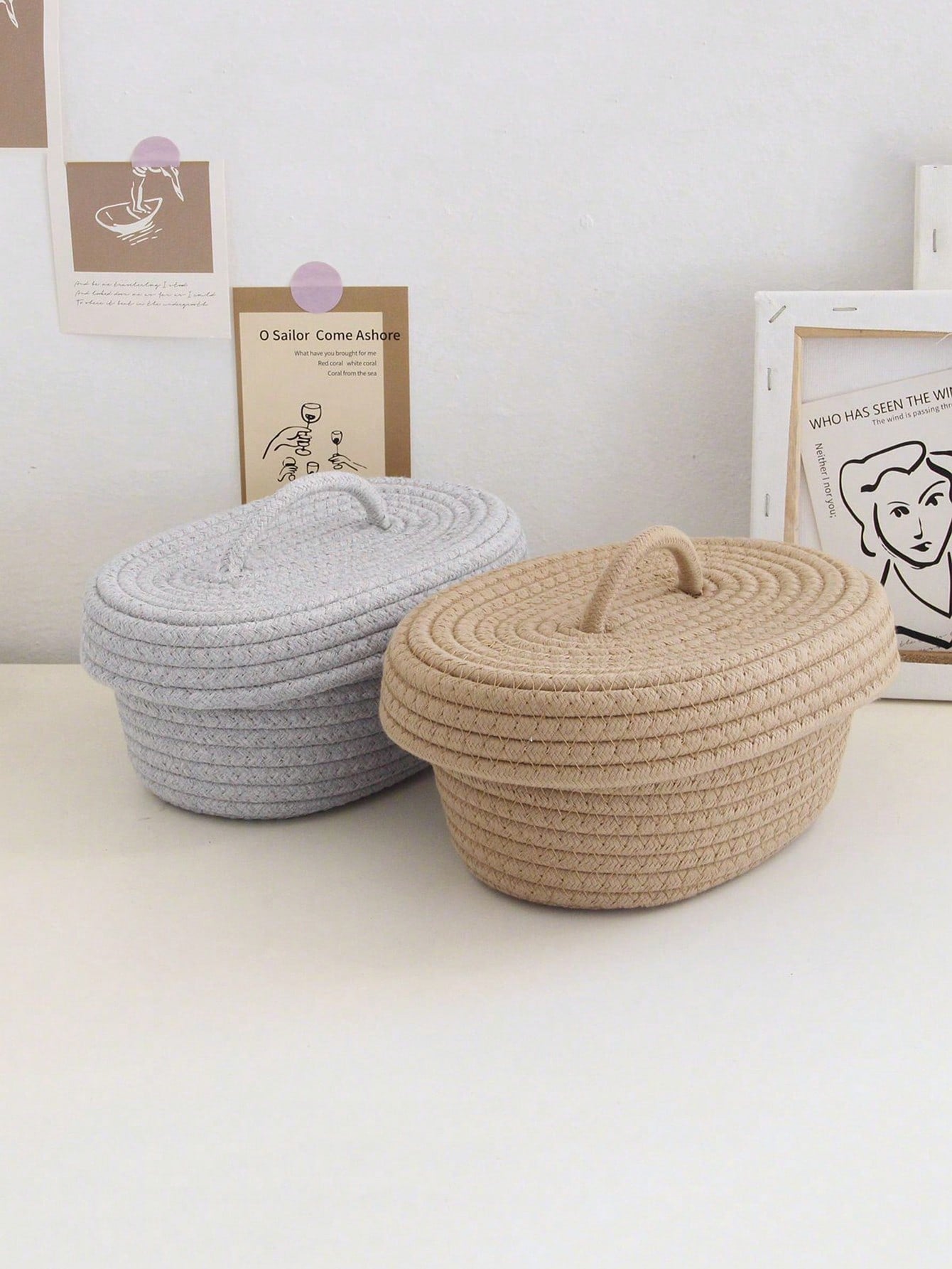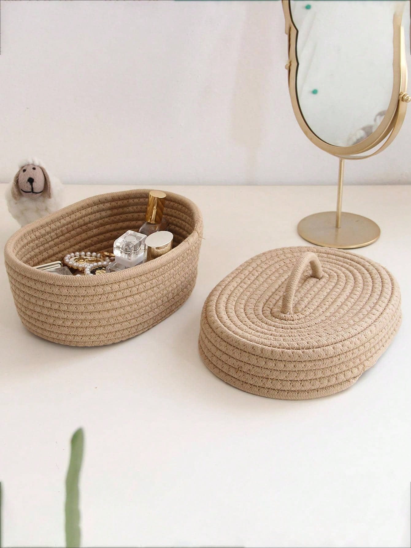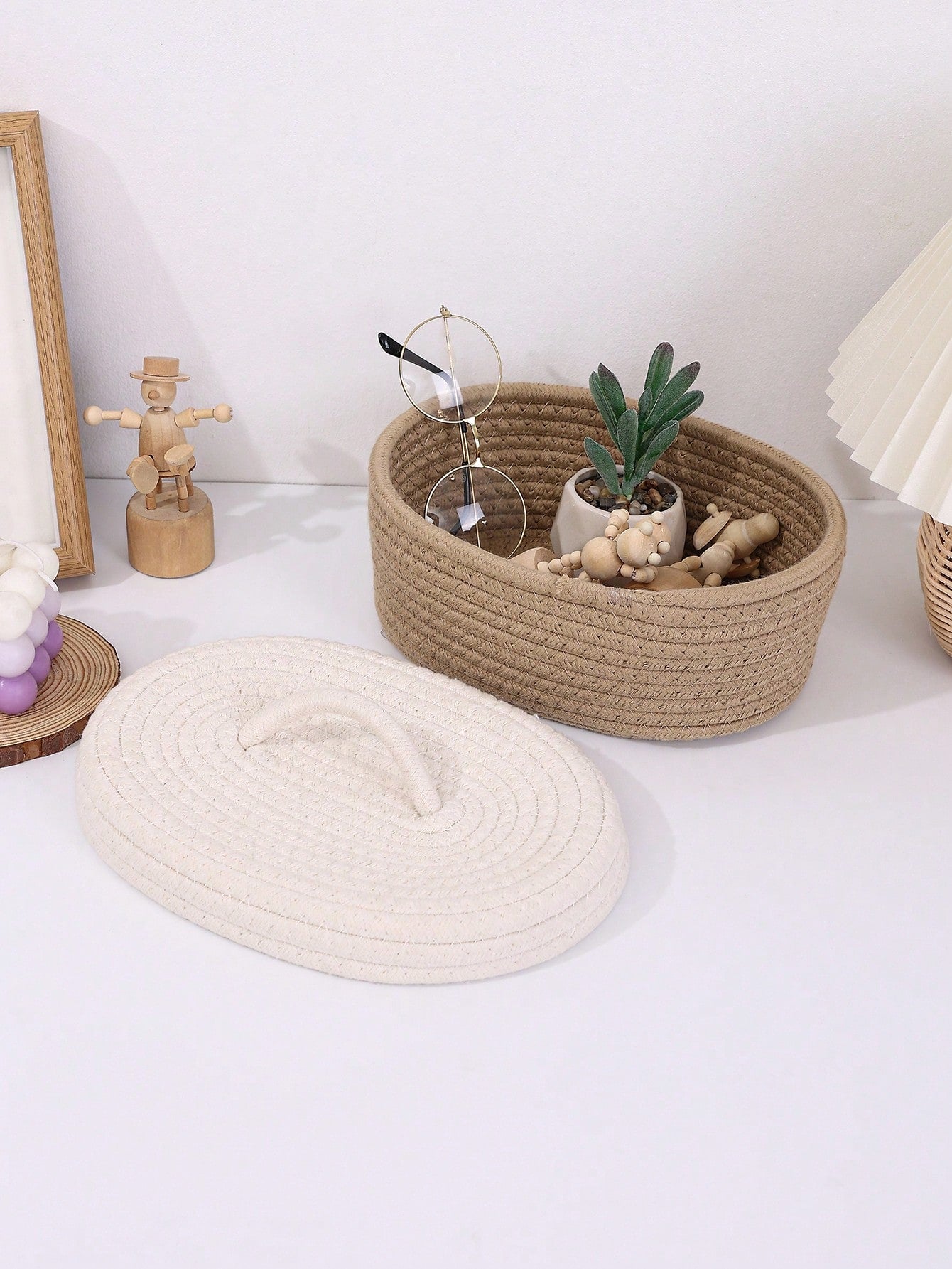سلة تخزين خيوط مغطاة بيضاوية، صندوق تخزين مكتبي مصنوع يدويًا مُنسوج للنوم والمنضدة الجانبية