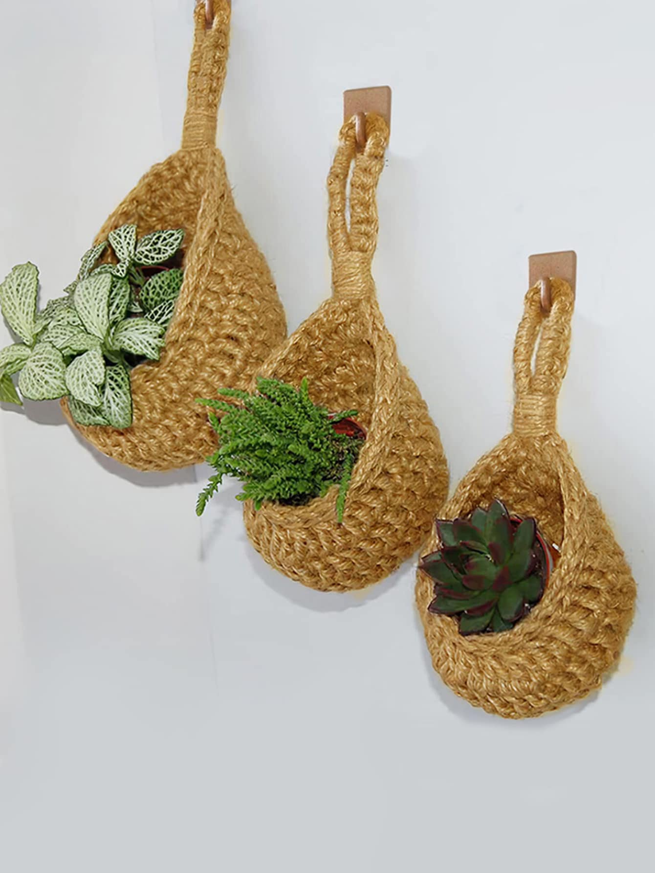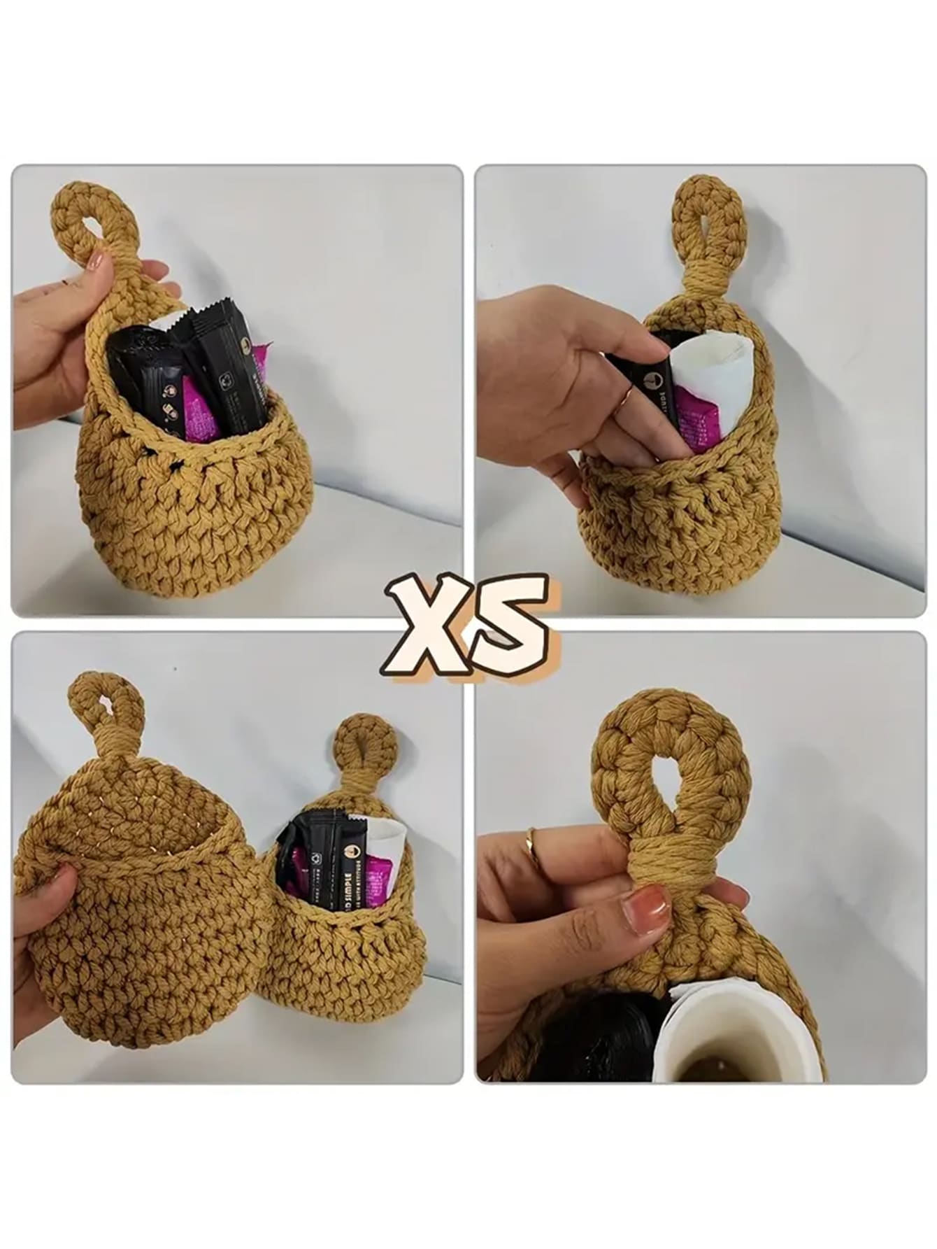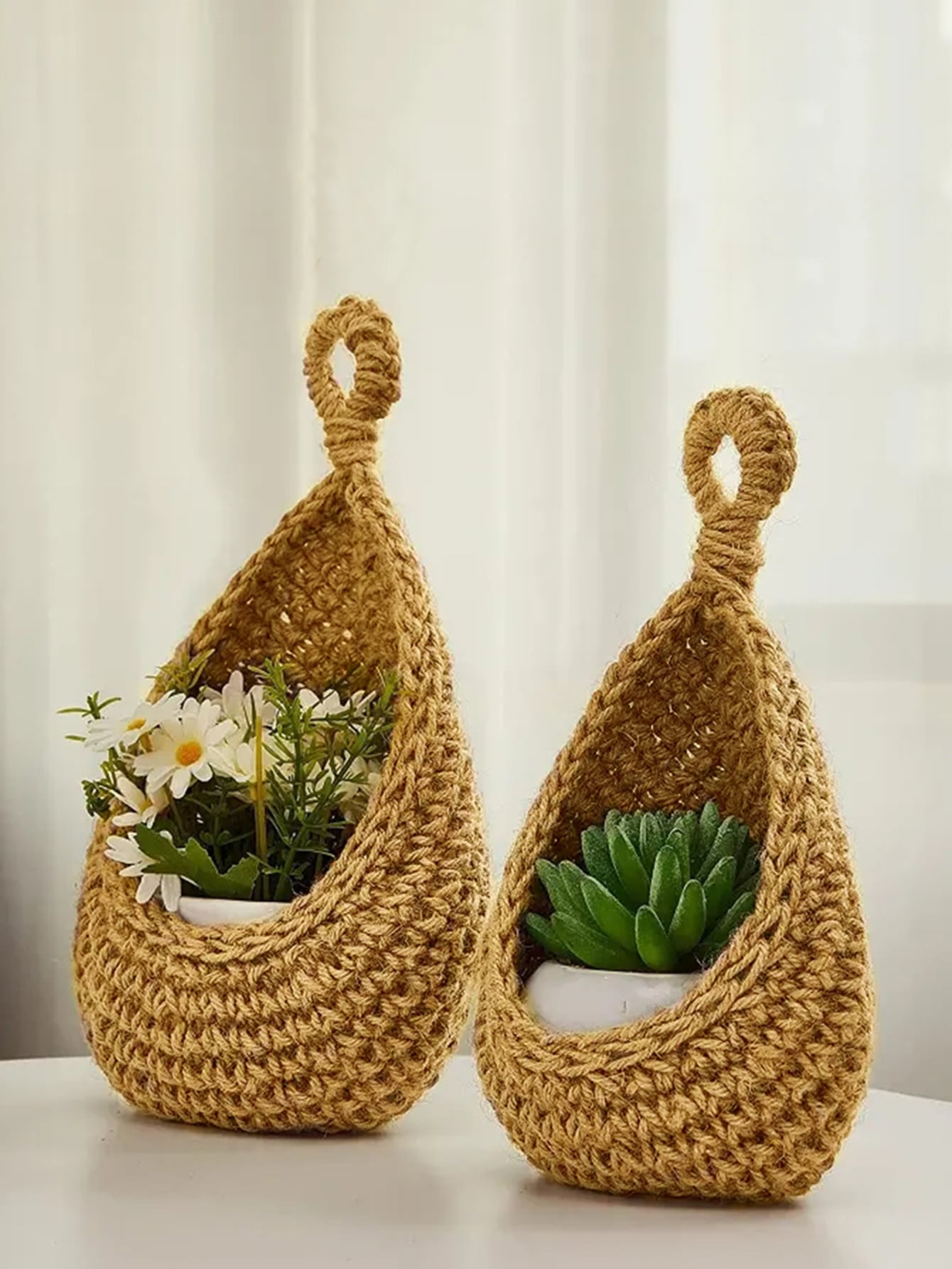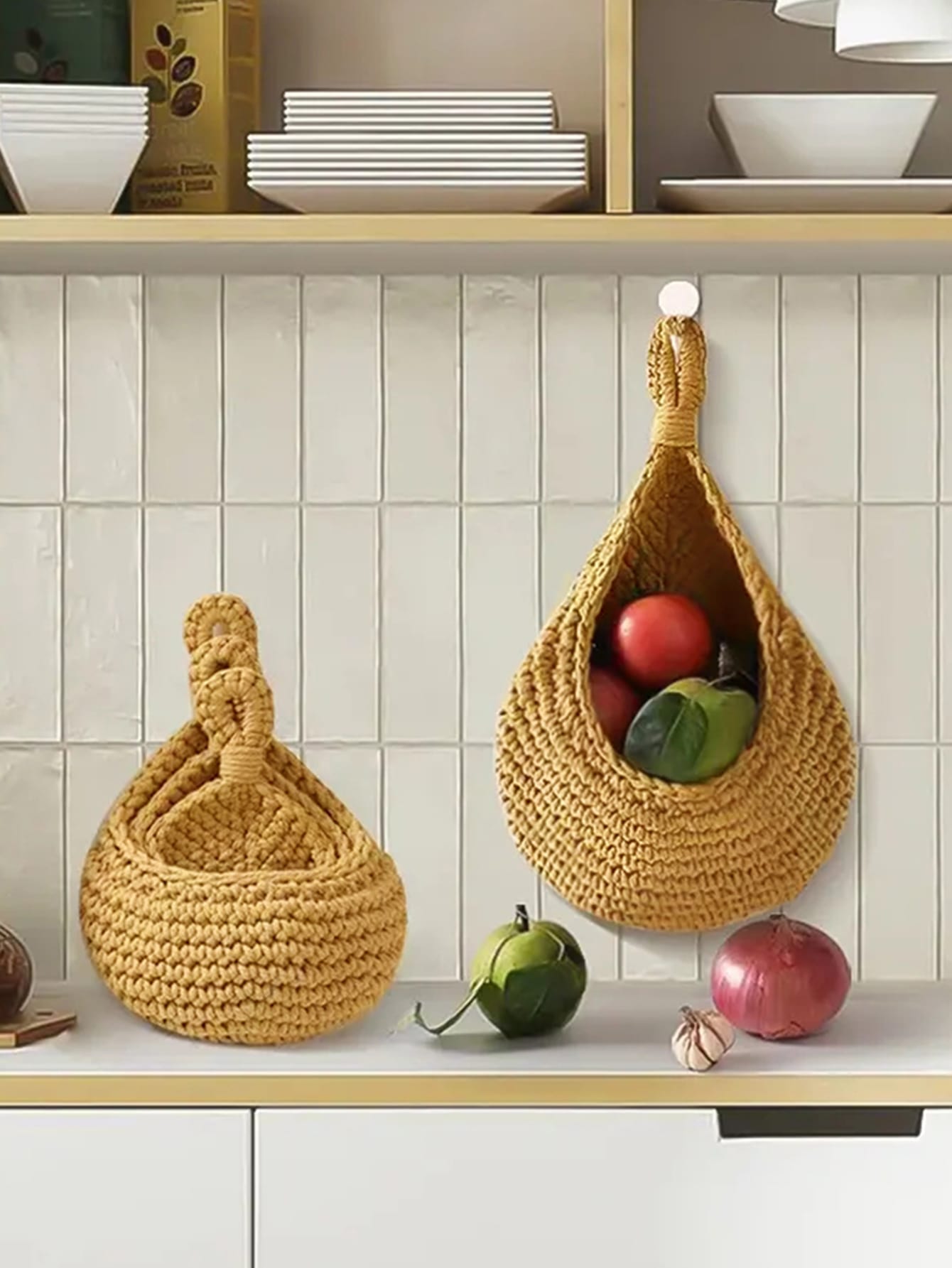 سلة معلقة جدران مضفرة على الطراز البوهيمي، سلة يدوية مضفرة للخضروات والفواكه في المطبخ لديكور بوهو في شكل دمعة للتخزين وزراعة النباتات وتنظيم الحاويات