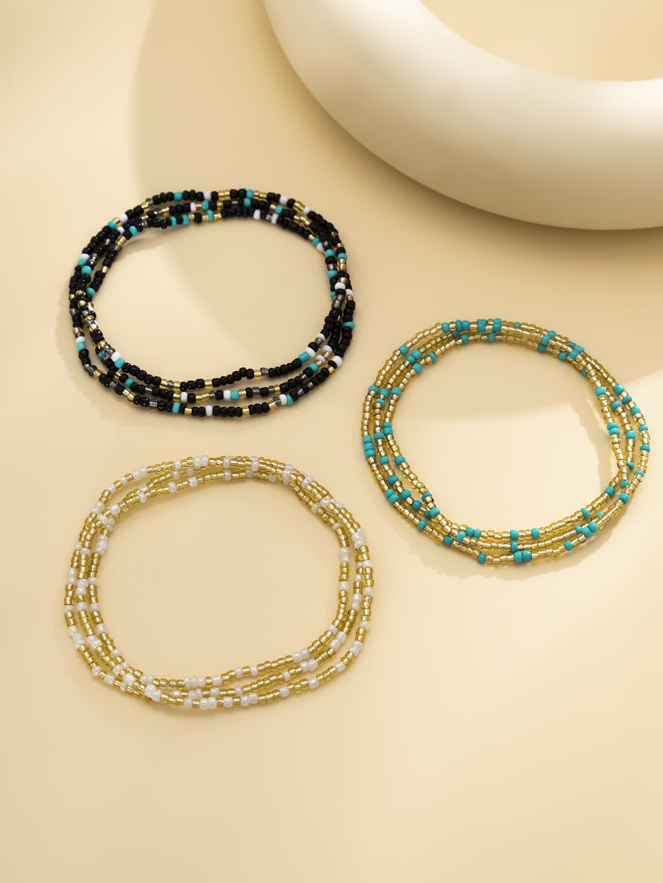 سلسلة الخصر بوهيميا بلاستيك ملون بديكور خرز للنساء الى حفل شاطئي الصيف عطلة 3قطعات/طقم