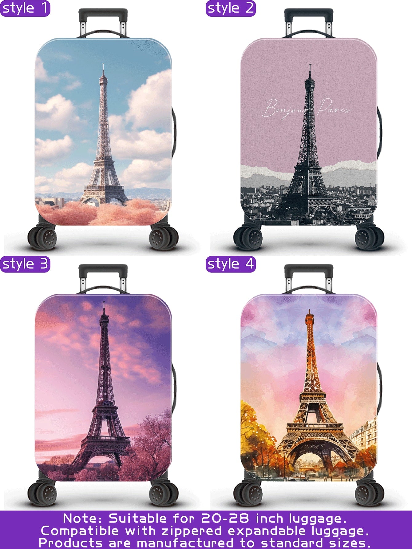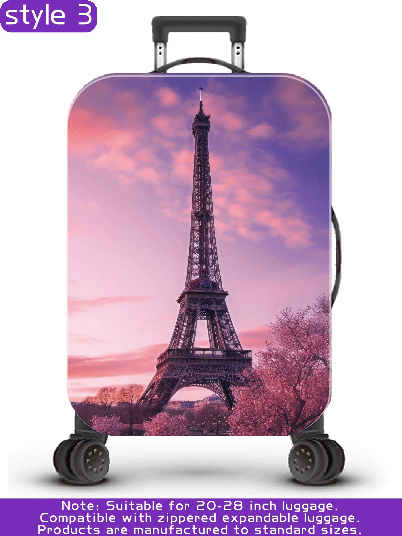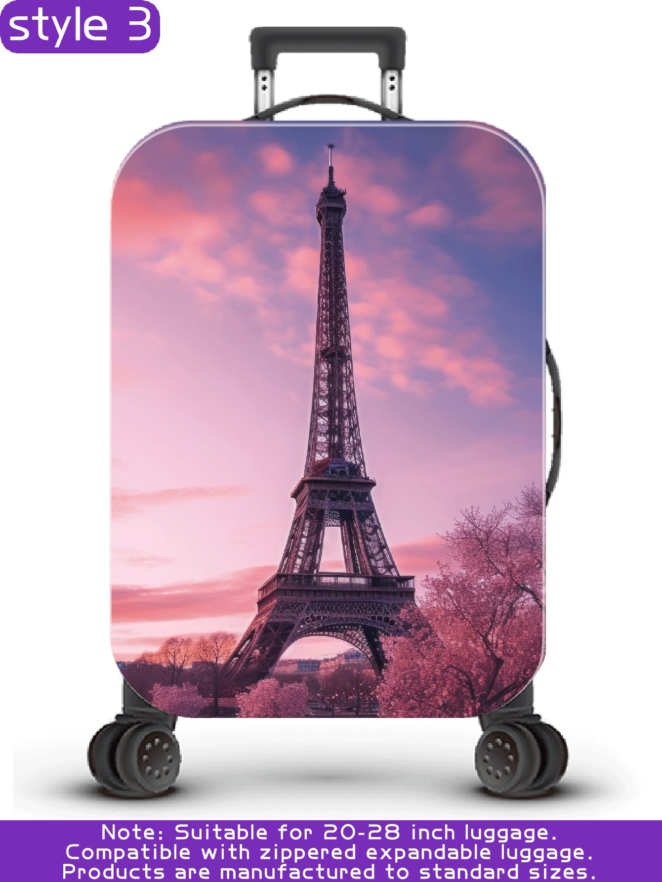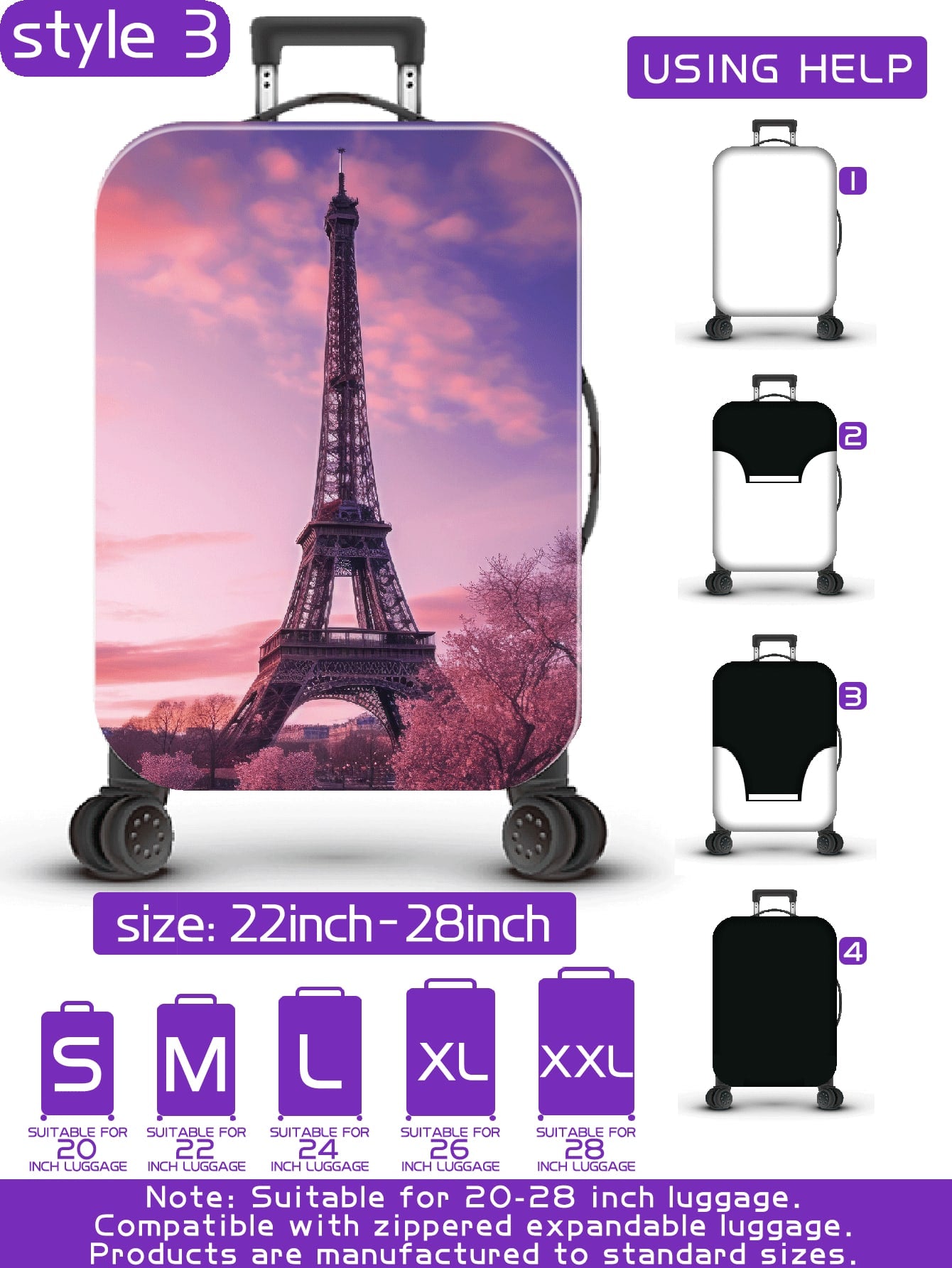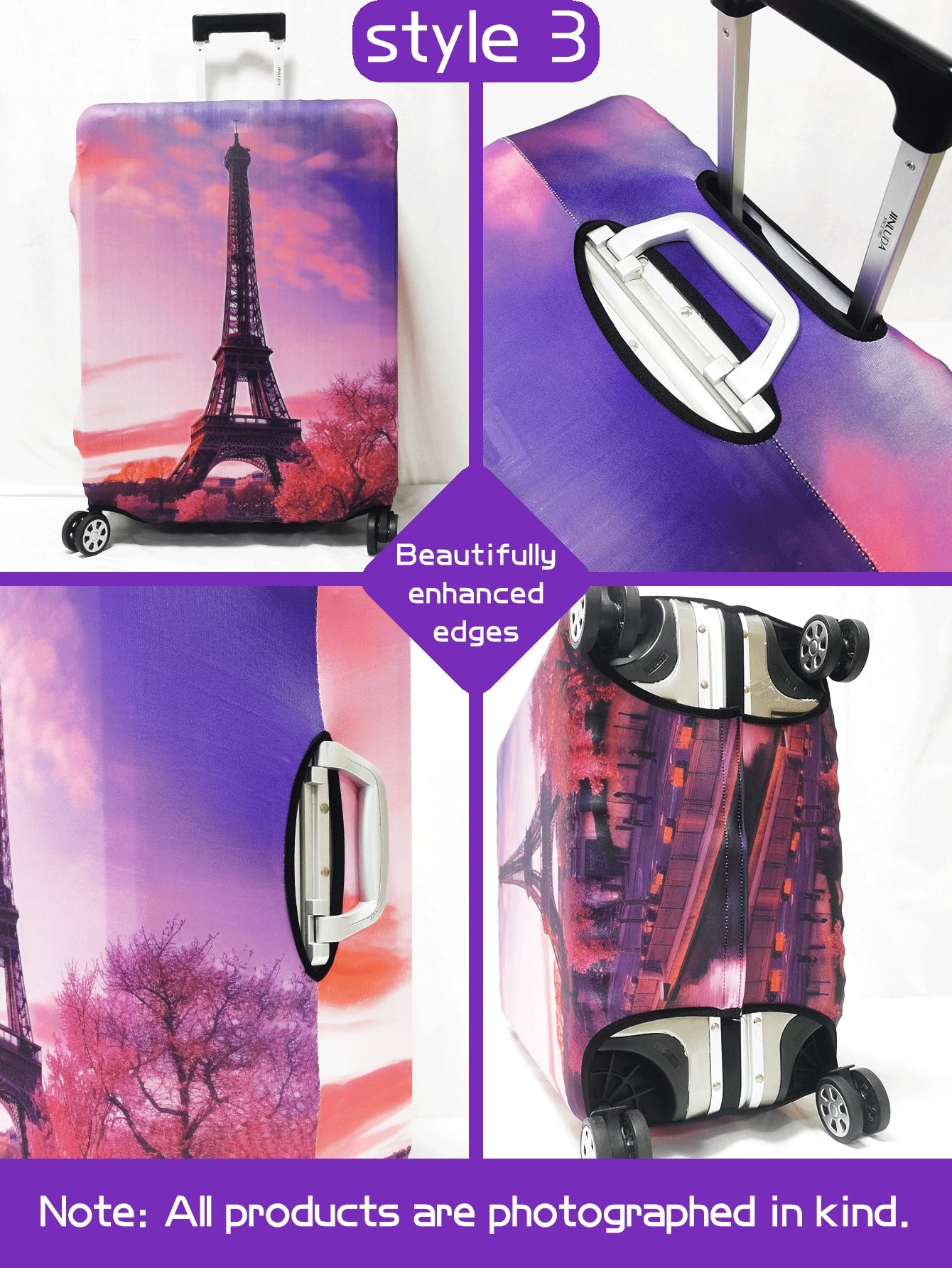سلسلة برج ايفل، نمط طباعة رقمي شخصي، عملية الإنتاج ترقية بشكل عام، عملية التهيئة الشاملة بحواف مطاطية، قماش مطاطي سميك، قابل للغسل، غطاء حماية للحقيبة، غطاء للحقيبة، غطاء غبار للحقيبة، غطاء غبار للحقيبة، مناسب جداً لرحلات العمل، السفر، فحص الأمتعة، مناسب