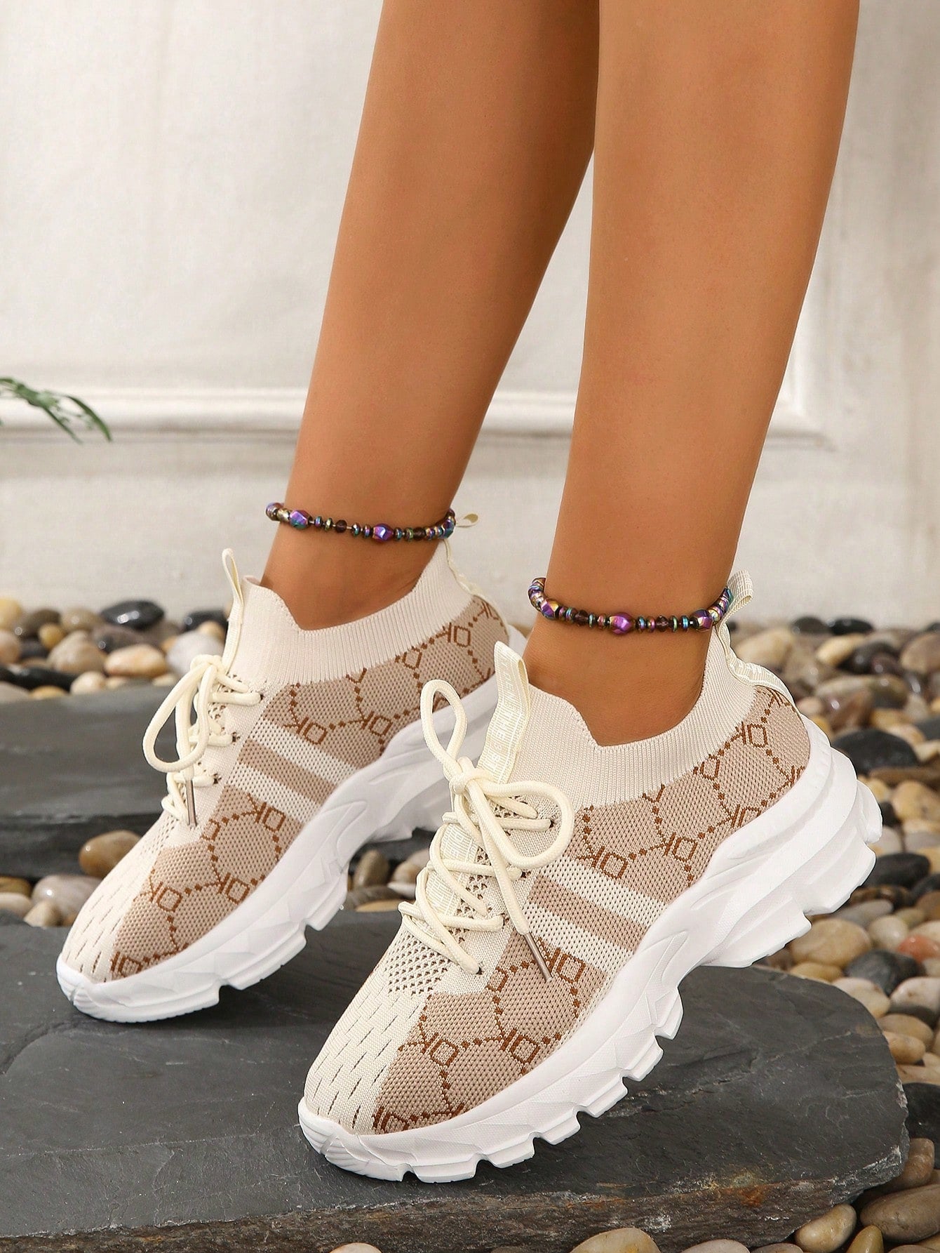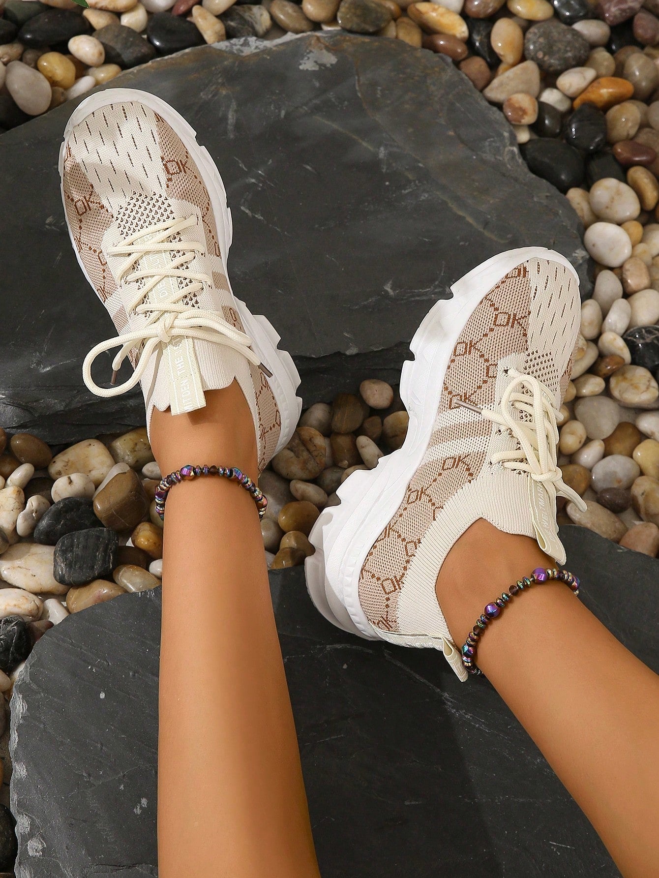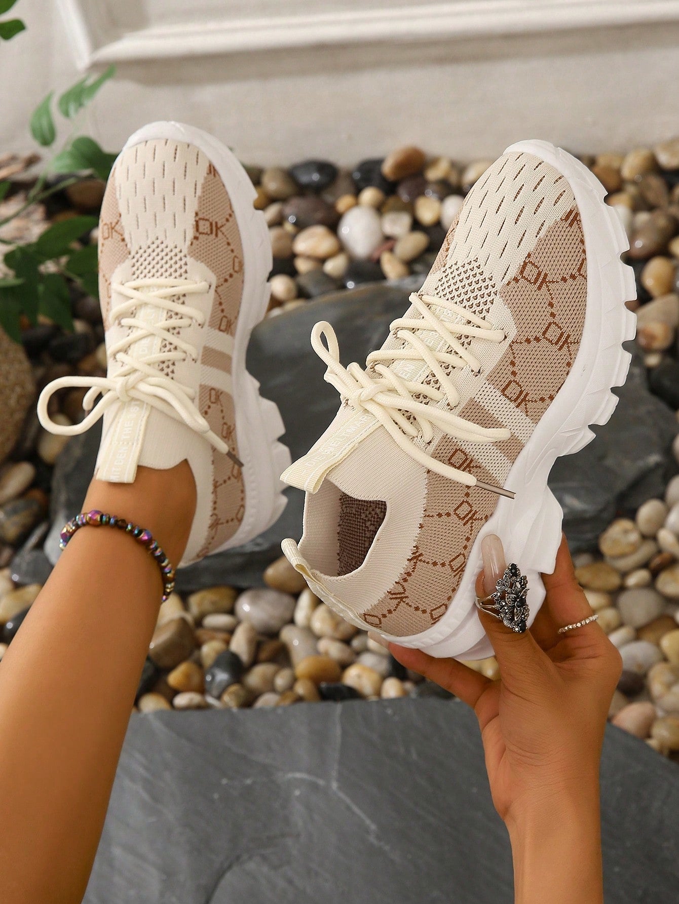 سيدات الموضة كاكي لون مقاس كبير ألوان متجانسة تنفس متعدد الجوانب والاستعمالات شبكة حذاء جري , حذاء رياضي
