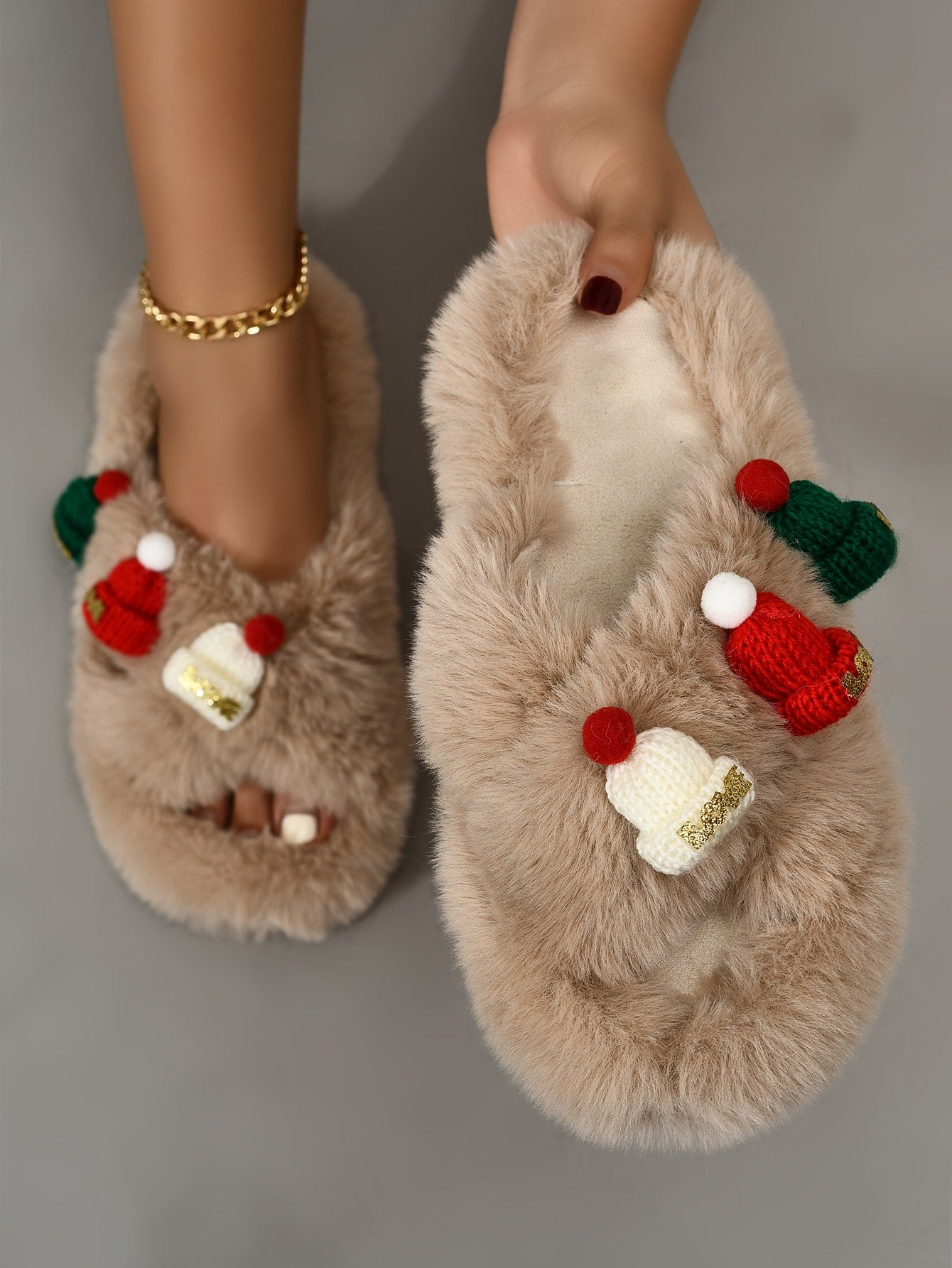 شباشب غرفة نوم زغبي بحزام متقاطع بديكور رسوم كارتون