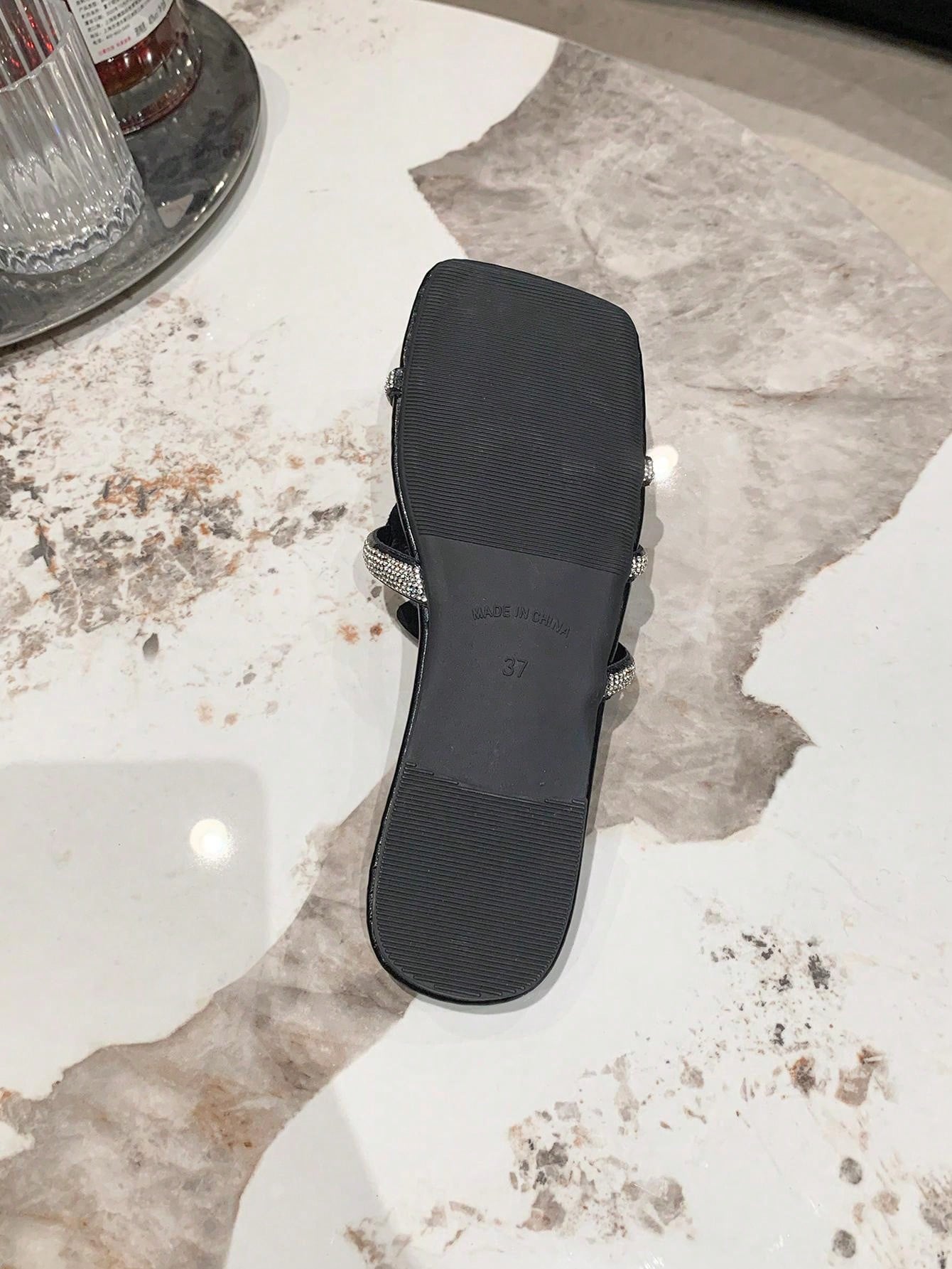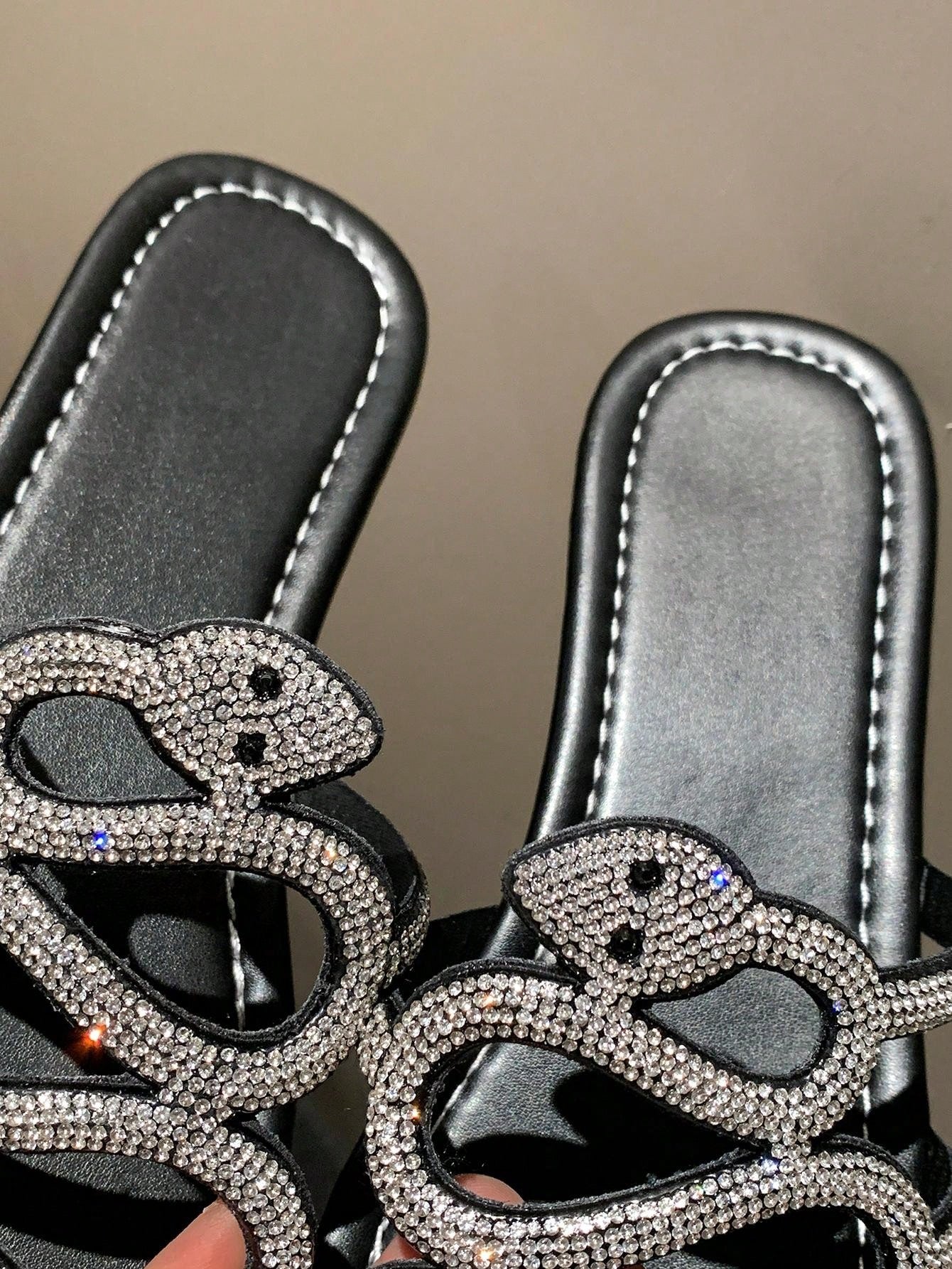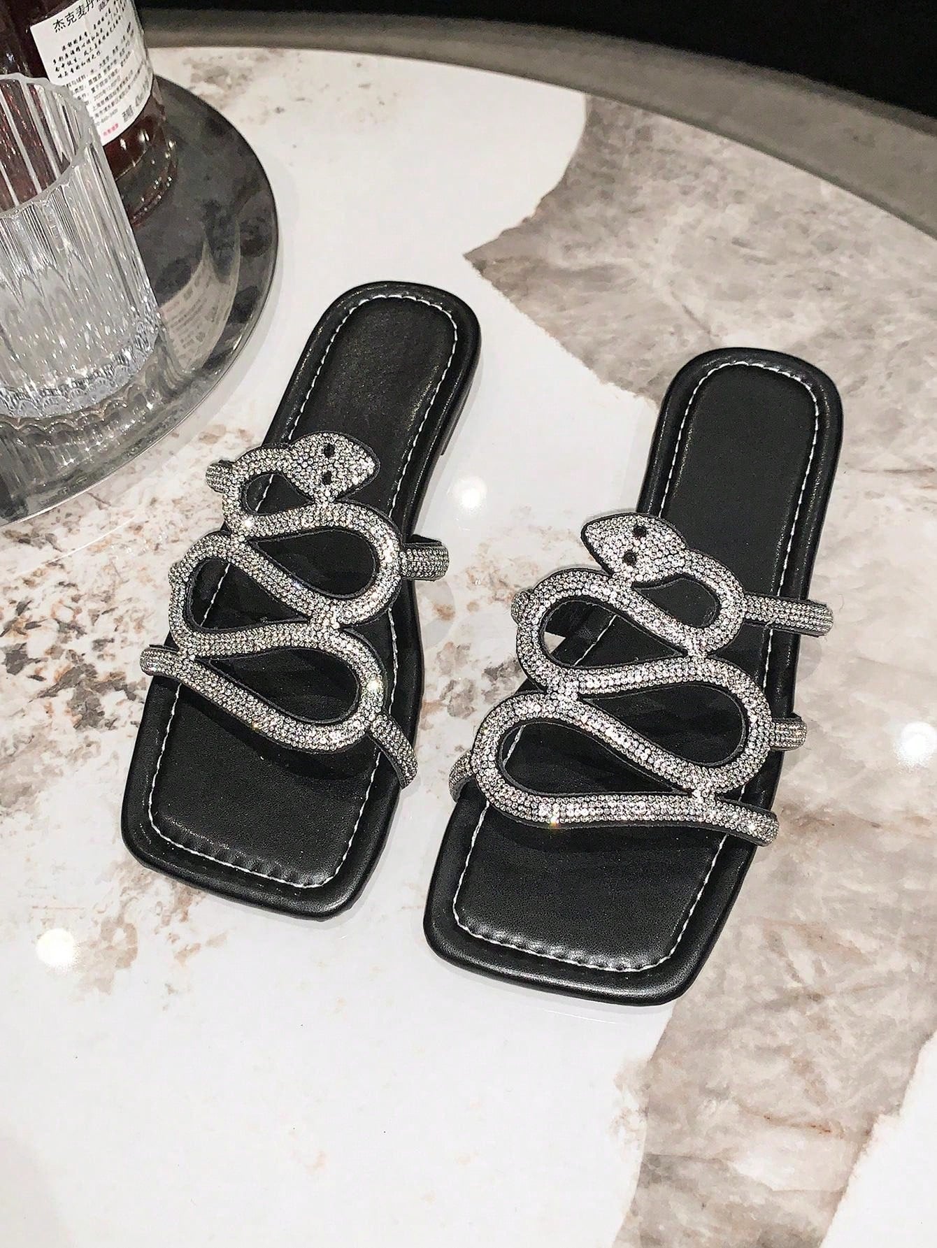شباشب نسائية بقع بلاستيكية مزخرفة بالراينستون على شكل حية، شباشب بحزام أنيق، شباشب بلاط للشاطئ