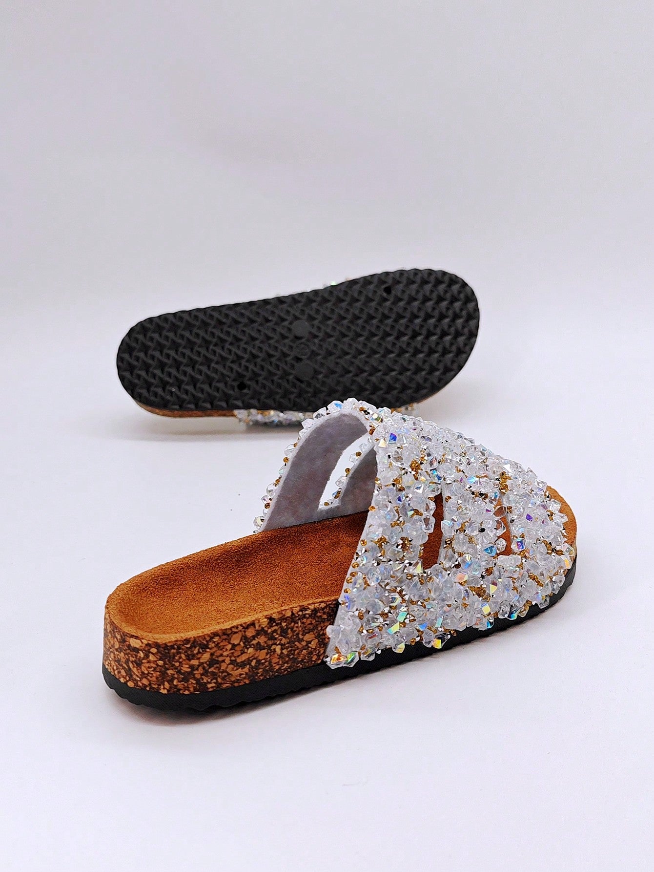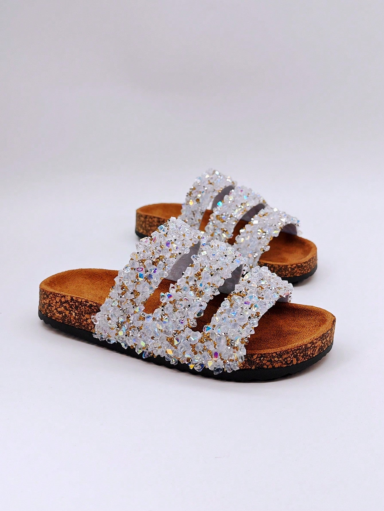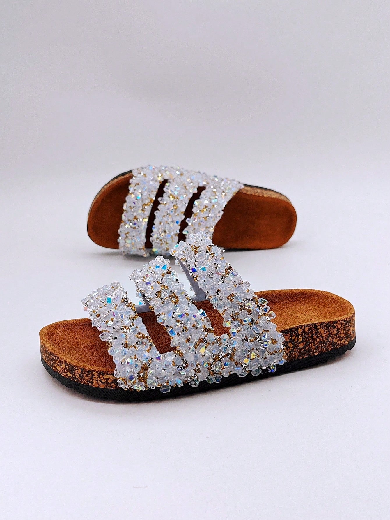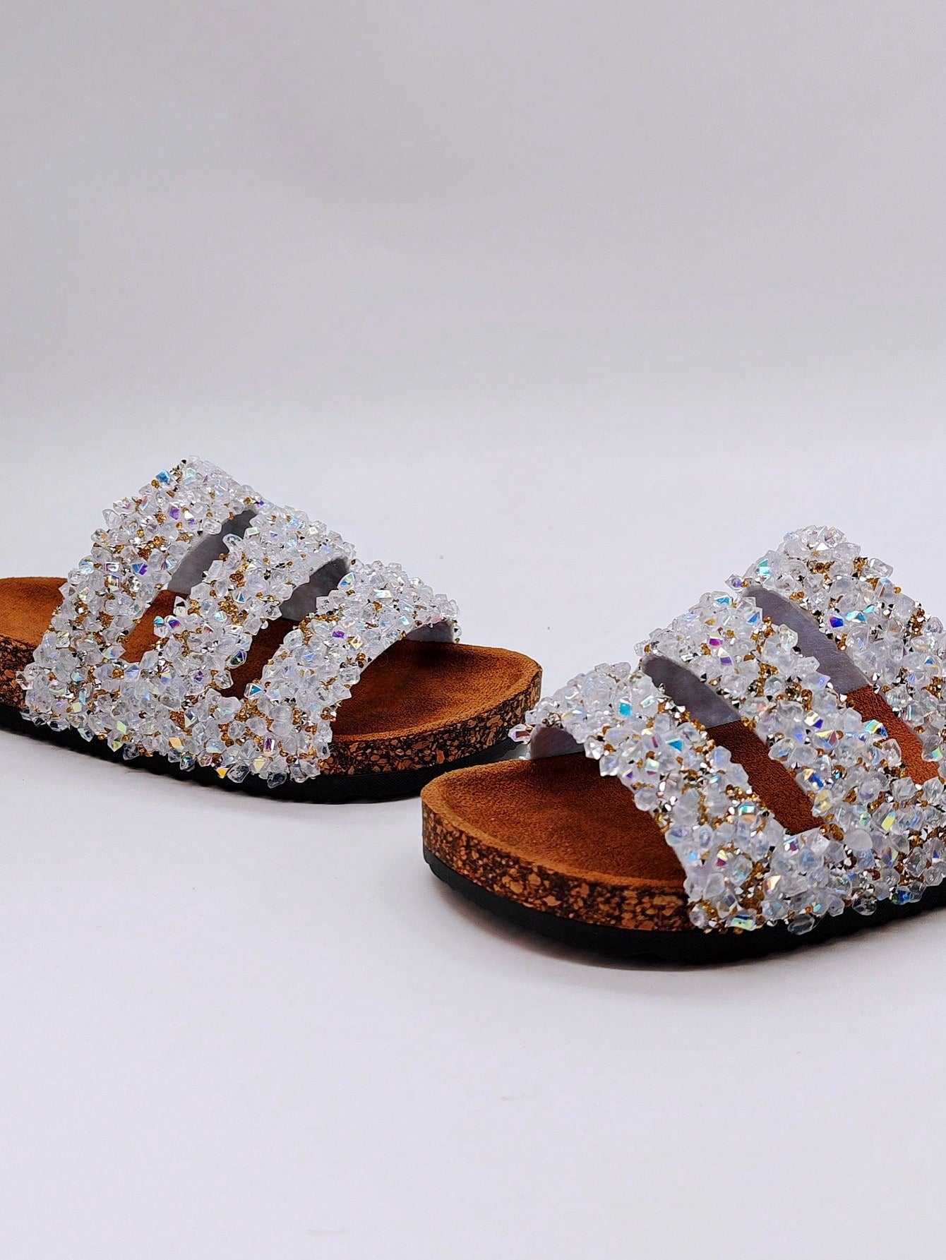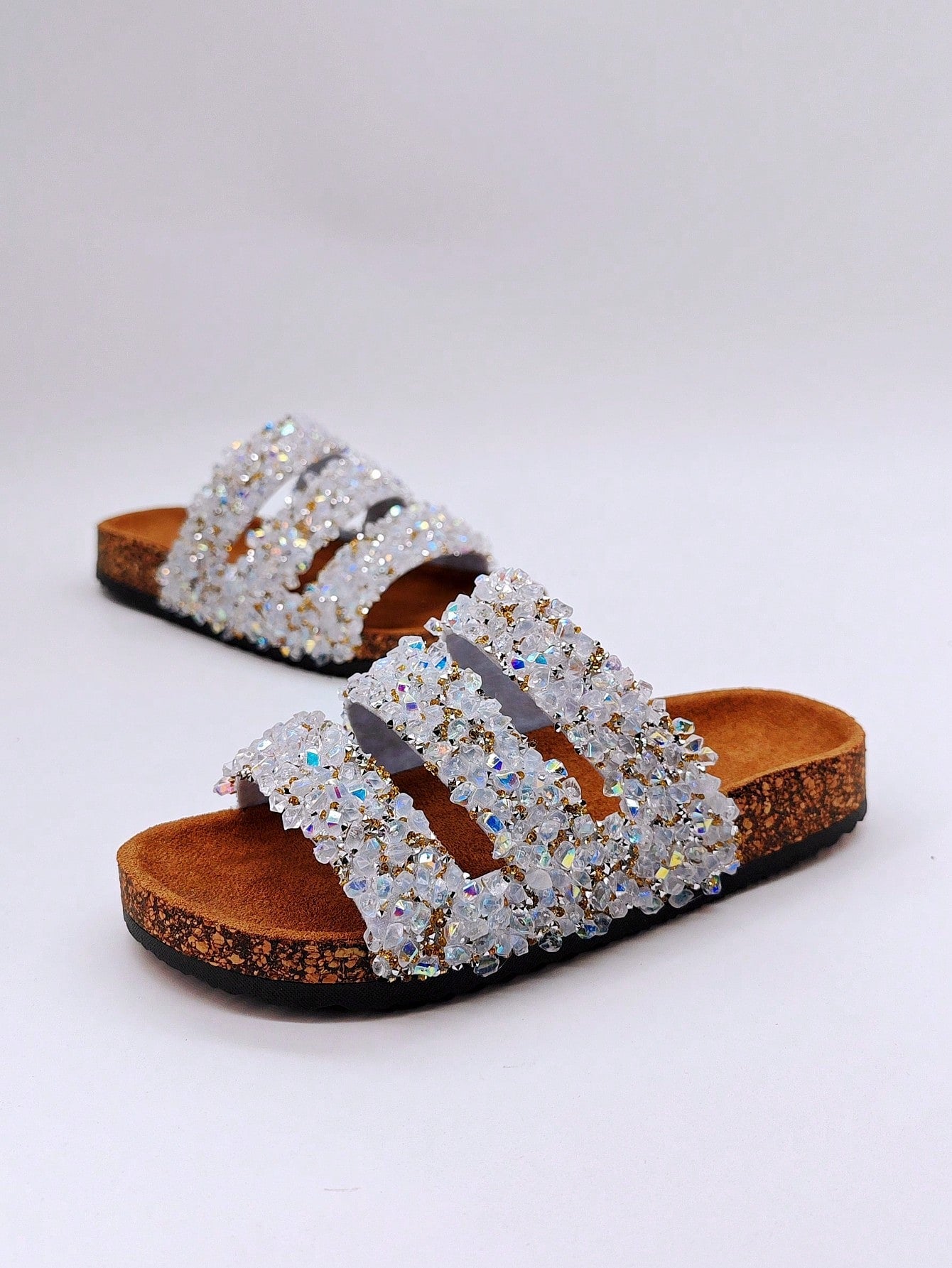 شباشب نسائية لامعة بالراين سوفت وود بنمط مقاوم للماء للاستخدام على الشاطئ وفي الأماكن المريحة والمفتوحة وفي العطلات، صنادل مسطحة