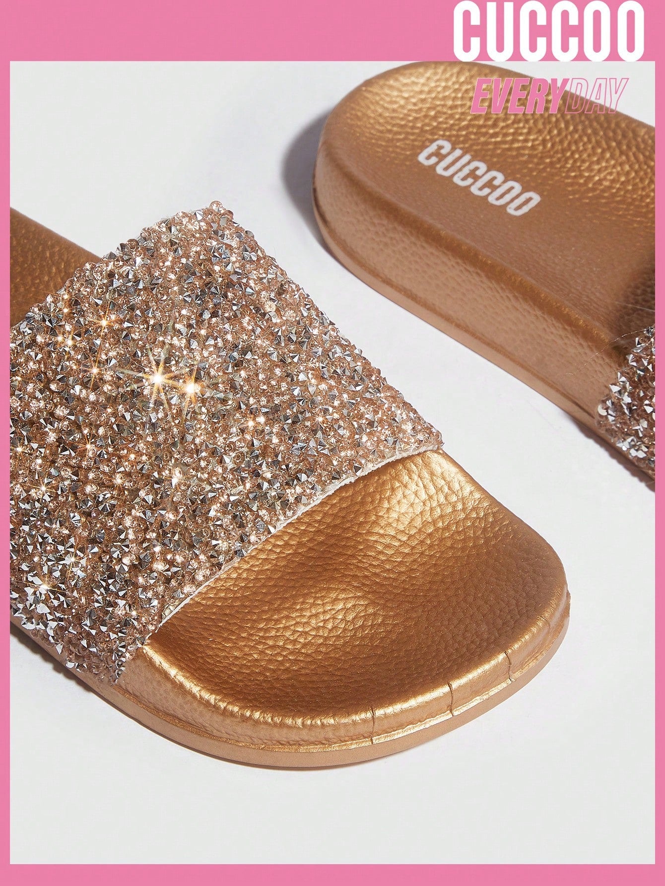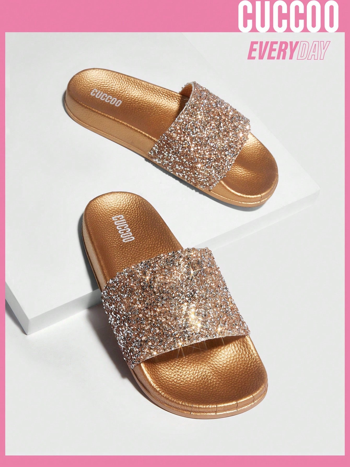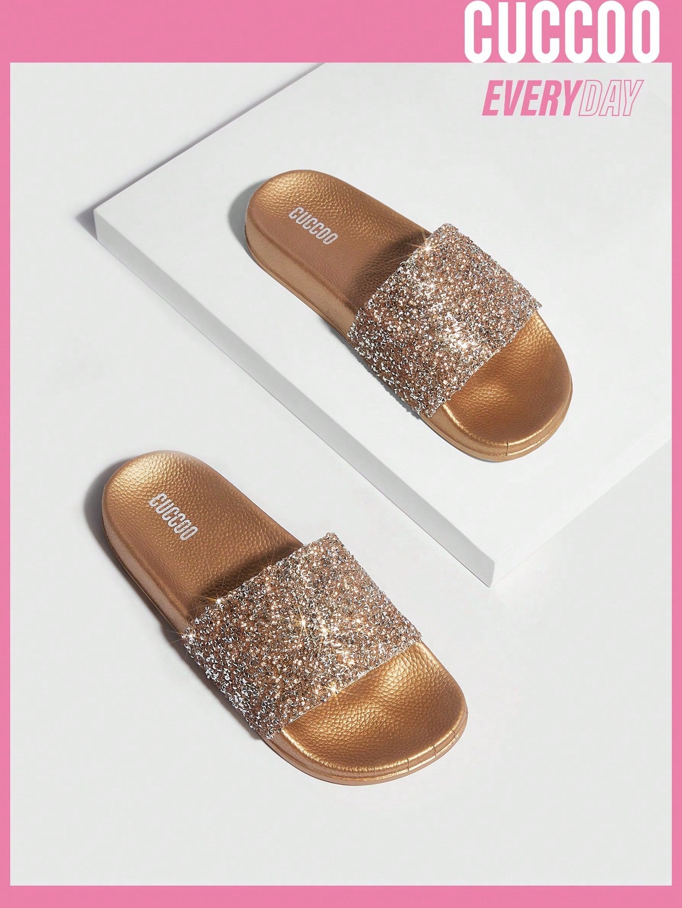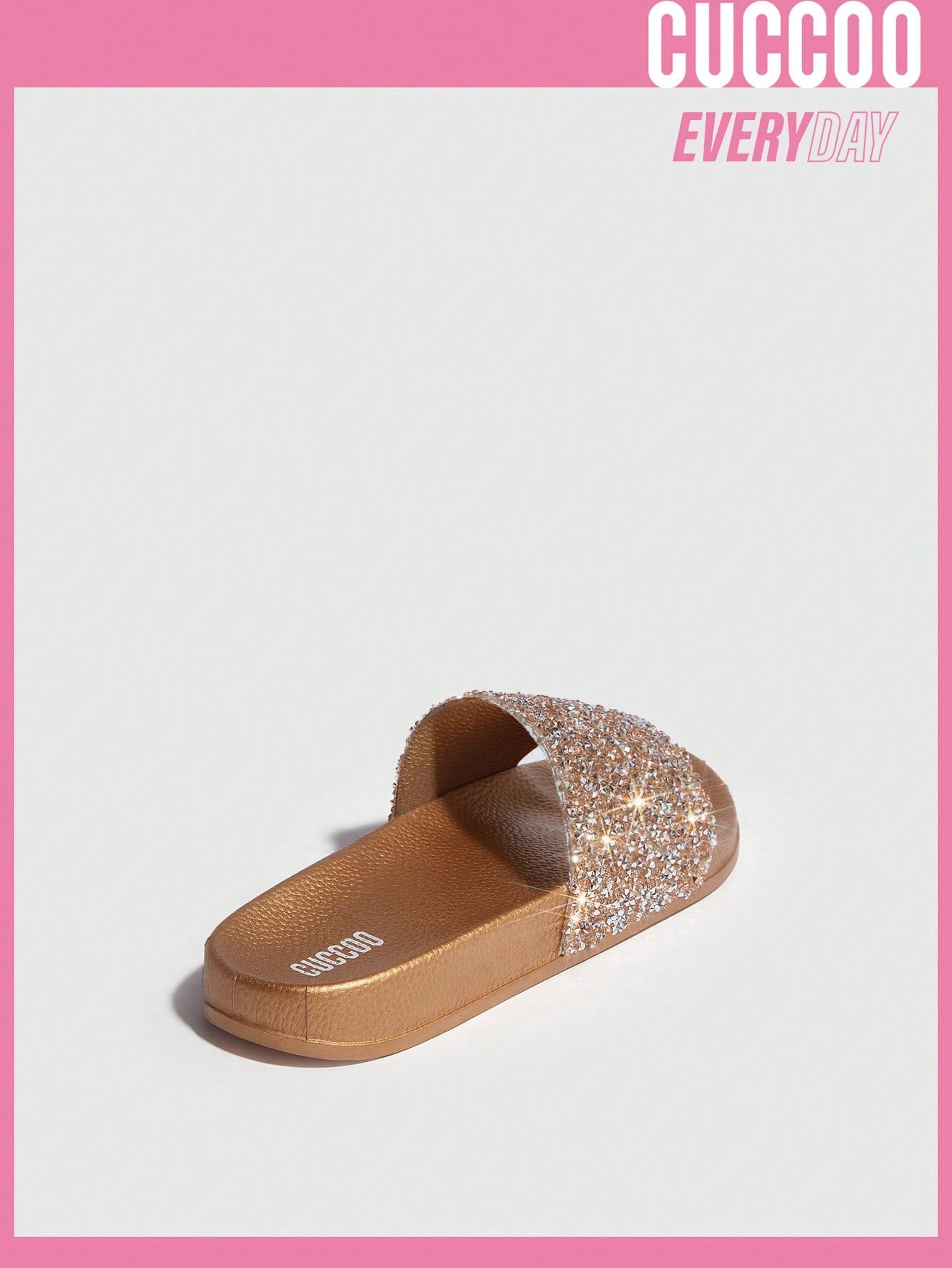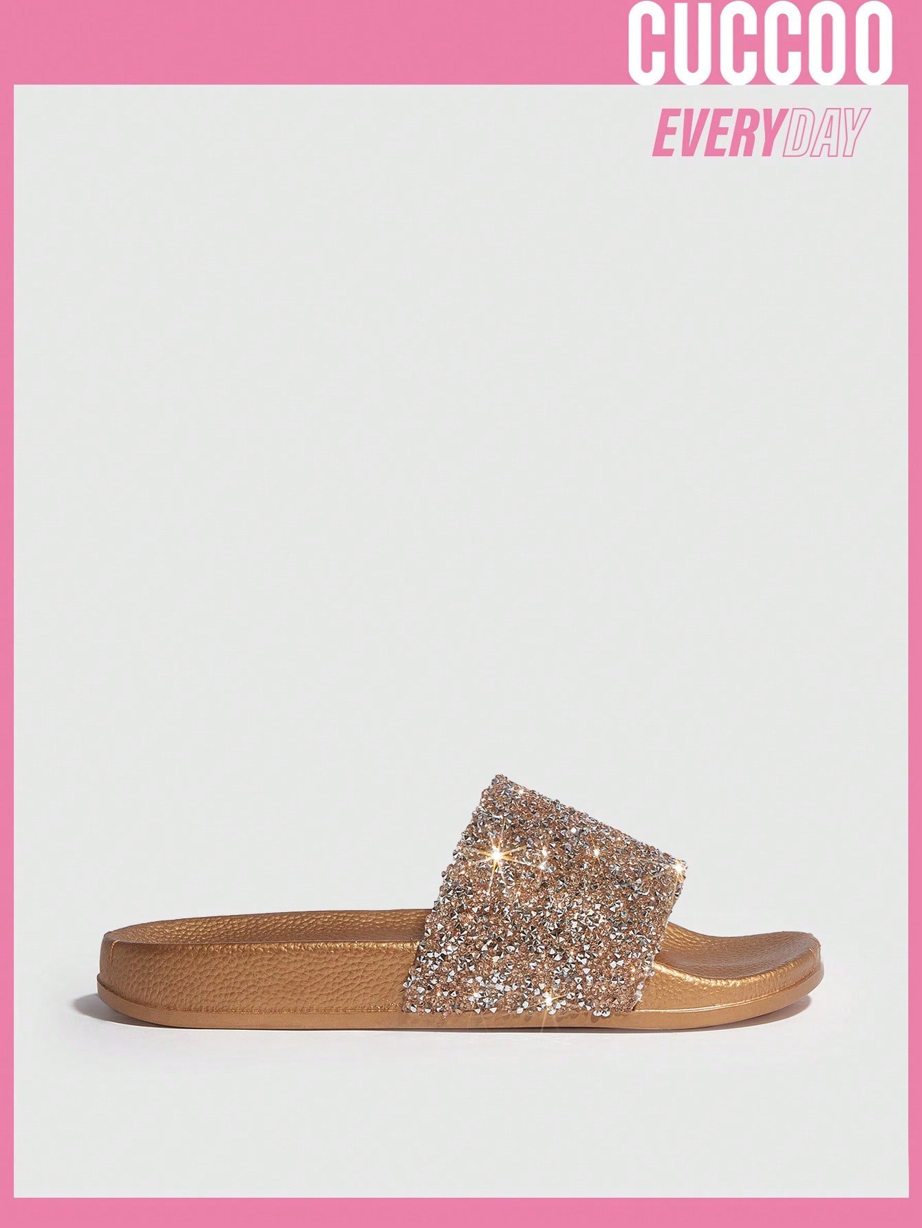 شبشب نسائي بحزام واحد مزخرف باللؤلؤ الاصطناعي والذهب اللافت للنظر لربيع وصيف انيق