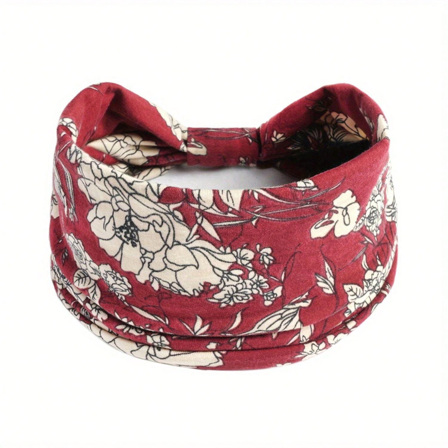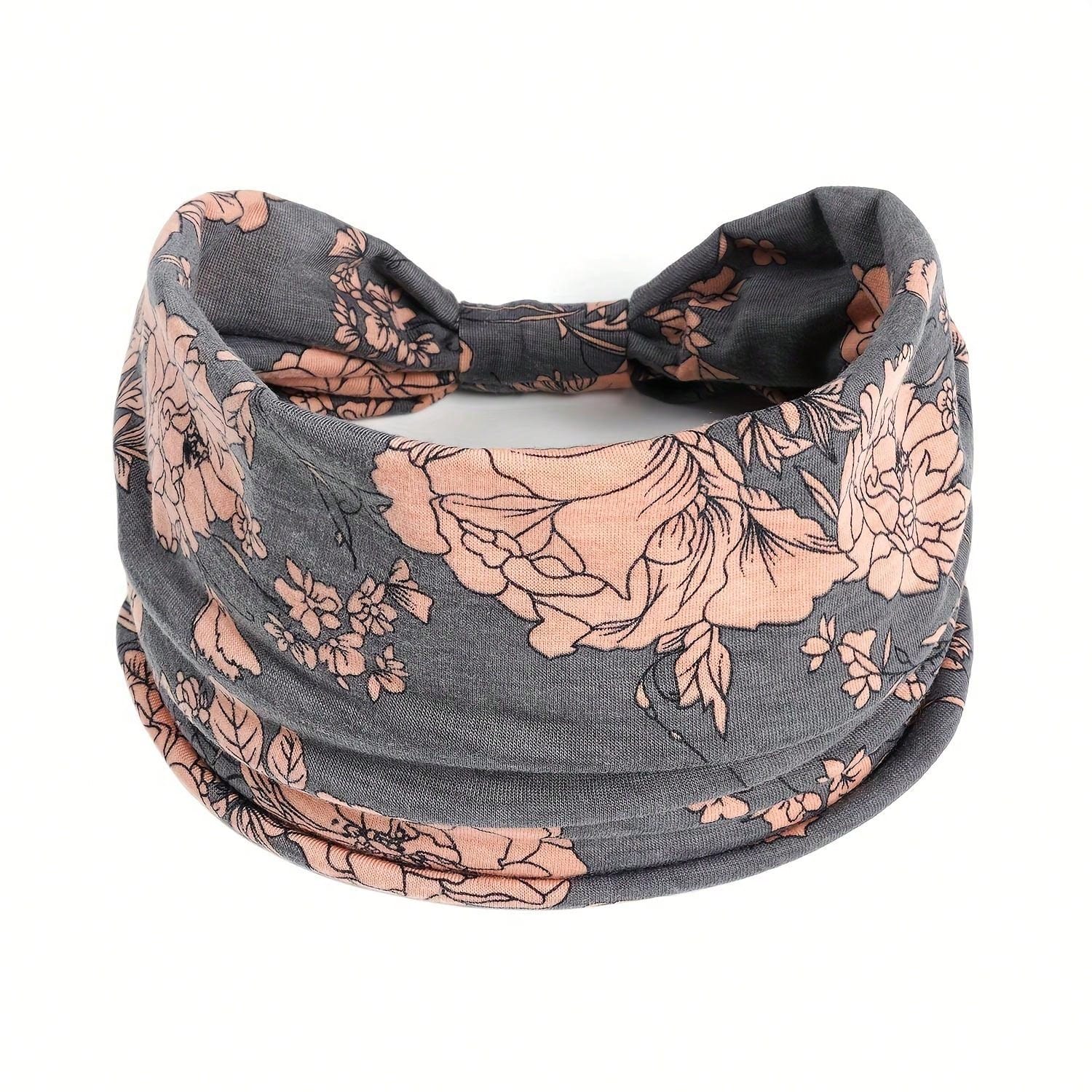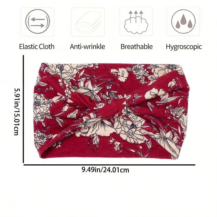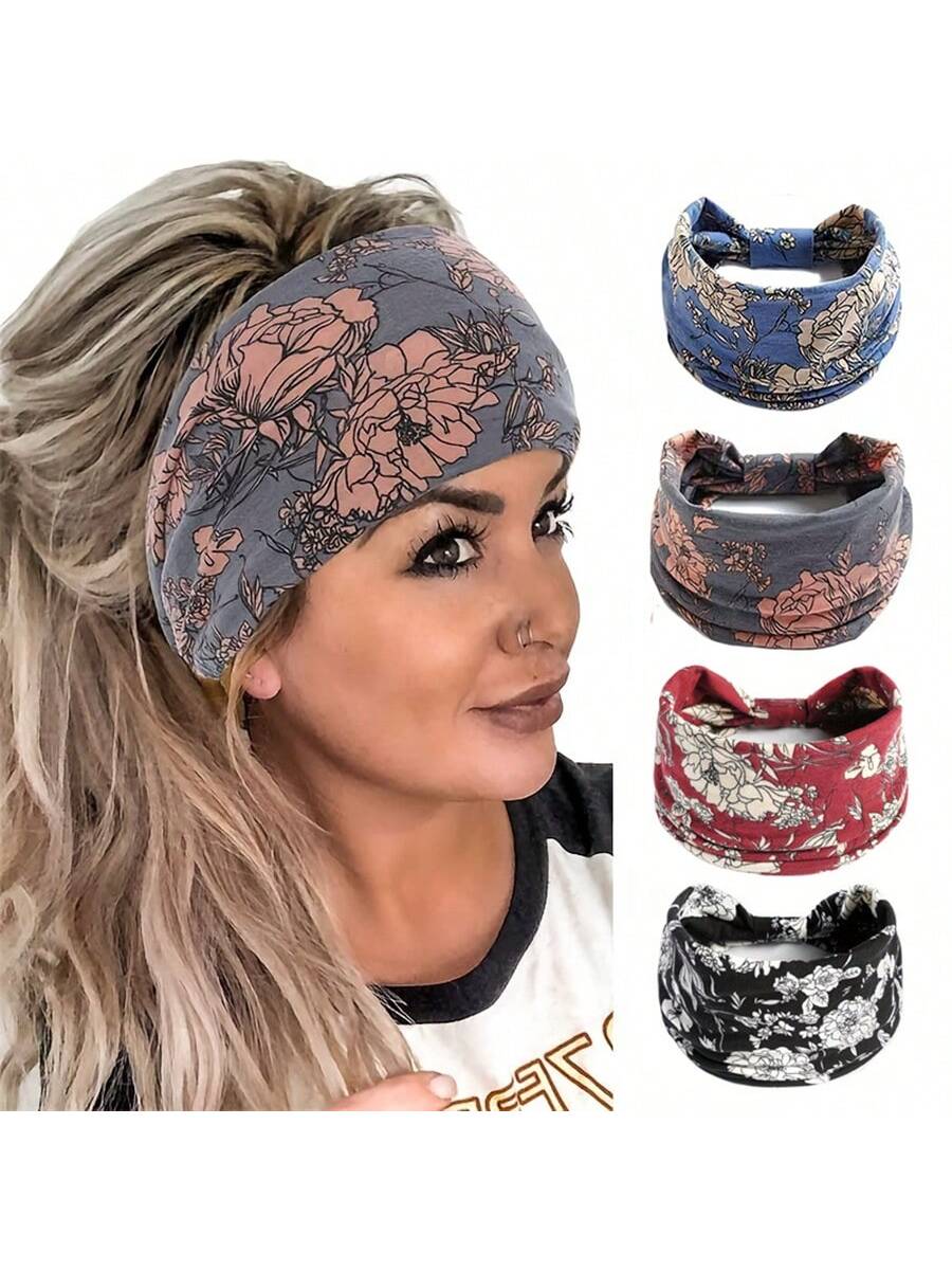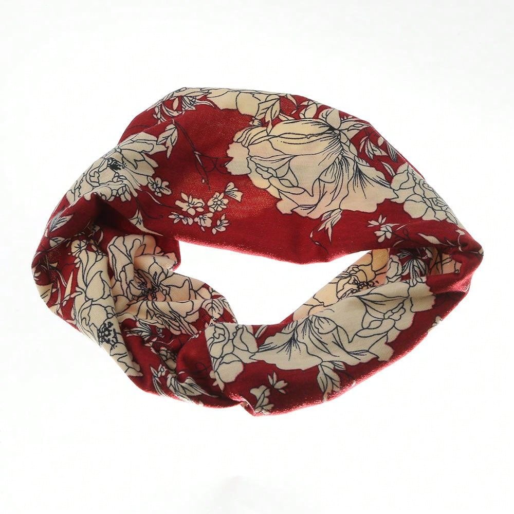شريط رأس طويل بوهو عريض مع عقدة عصري وطبعة زهور ، استحواذ شديد التمدد للرأس من النسيج يناسب المرأة في الرياضة واليوغا والجري