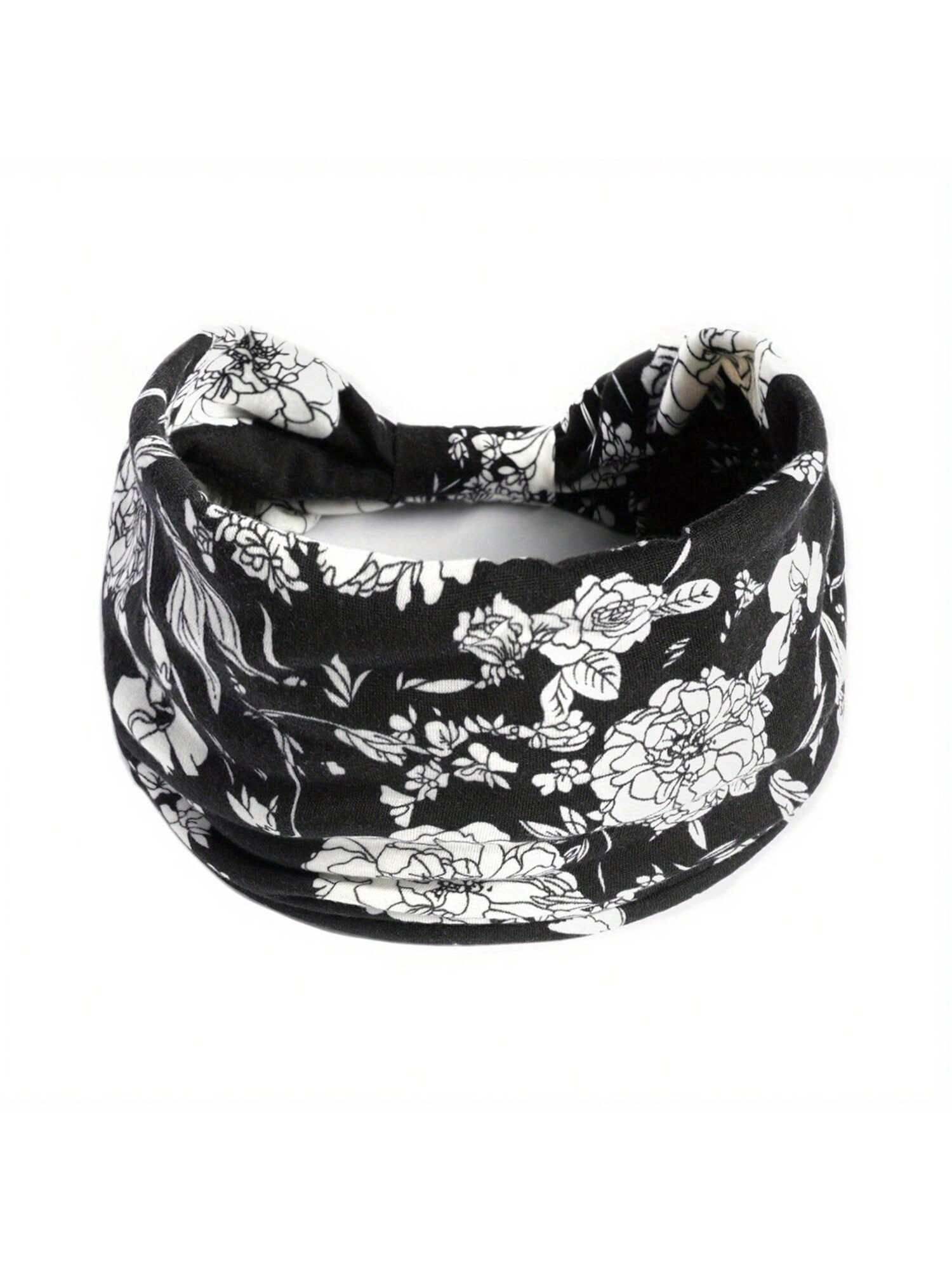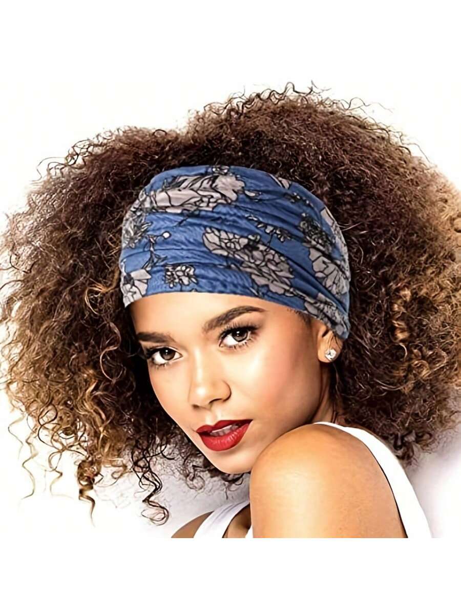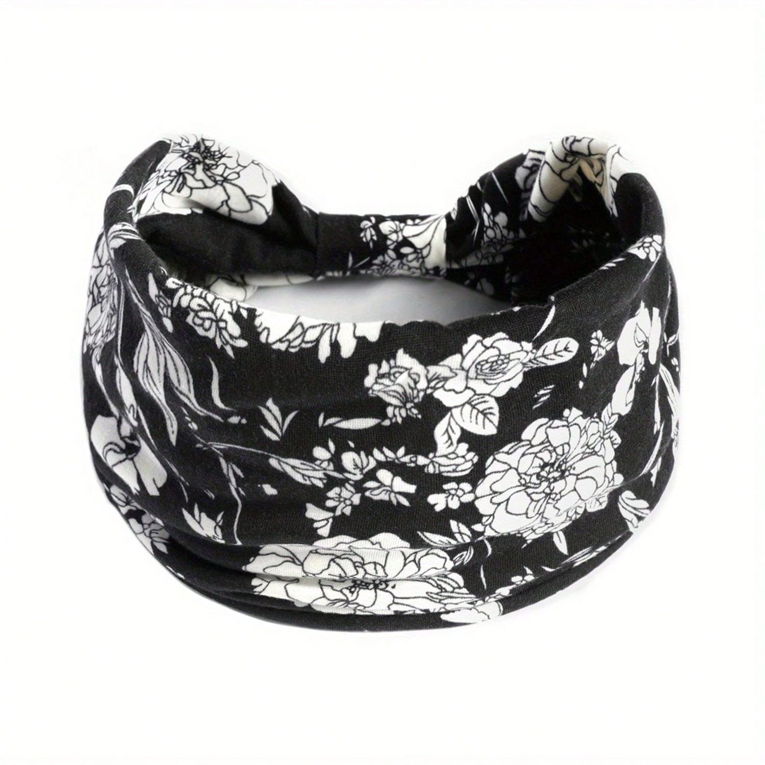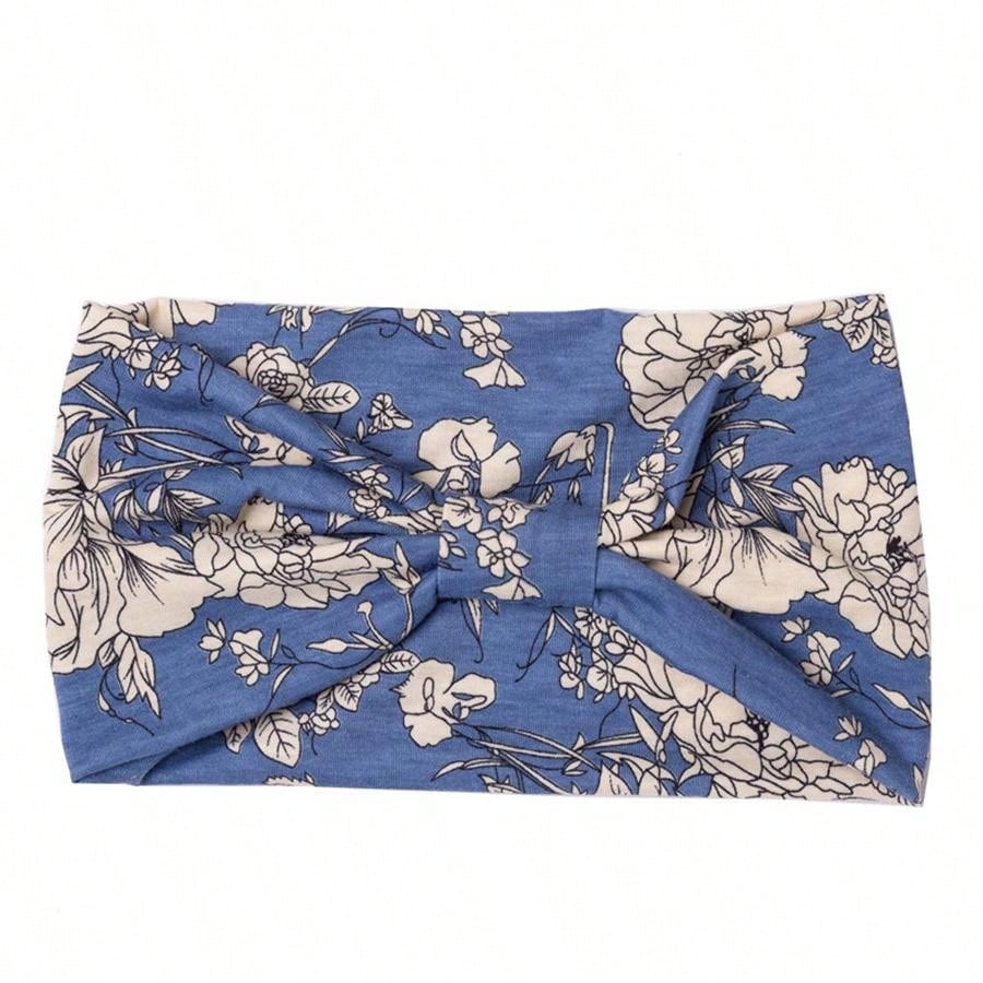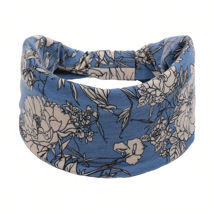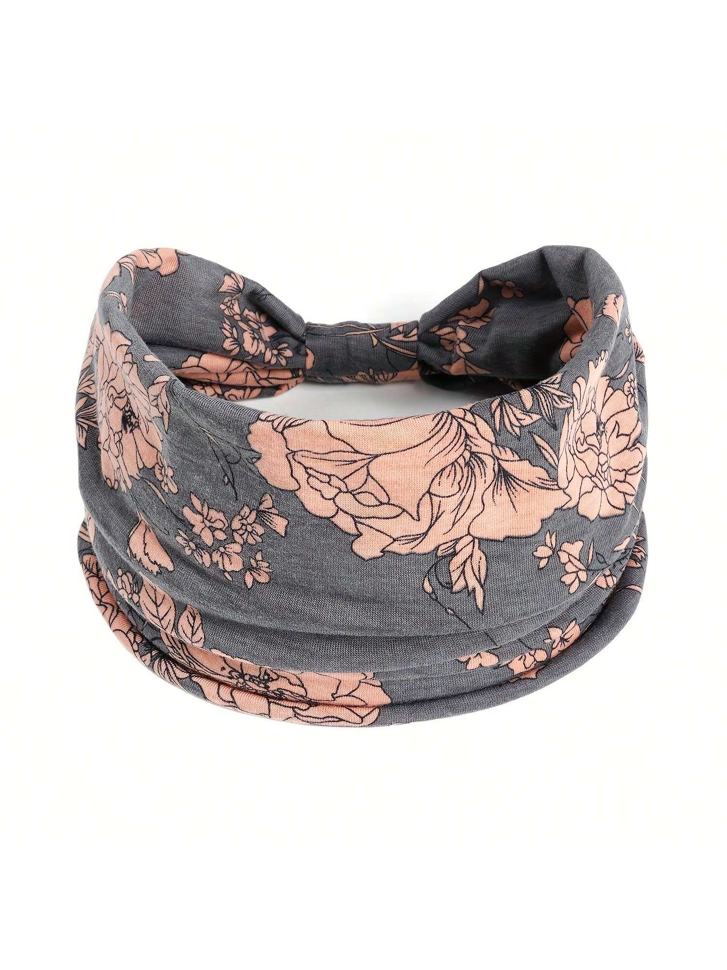 شريط رأس طويل بوهو عريض مع عقدة عصري وطبعة زهور ، استحواذ شديد التمدد للرأس من النسيج يناسب المرأة في الرياضة واليوغا والجري