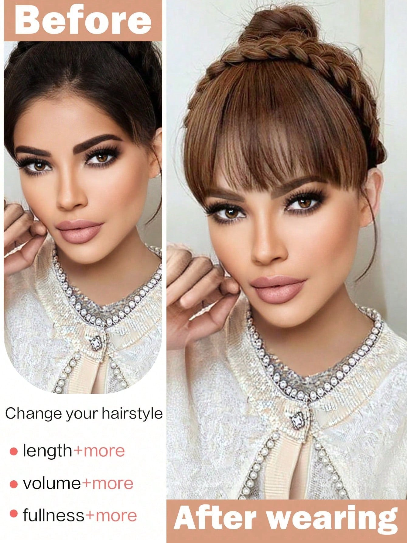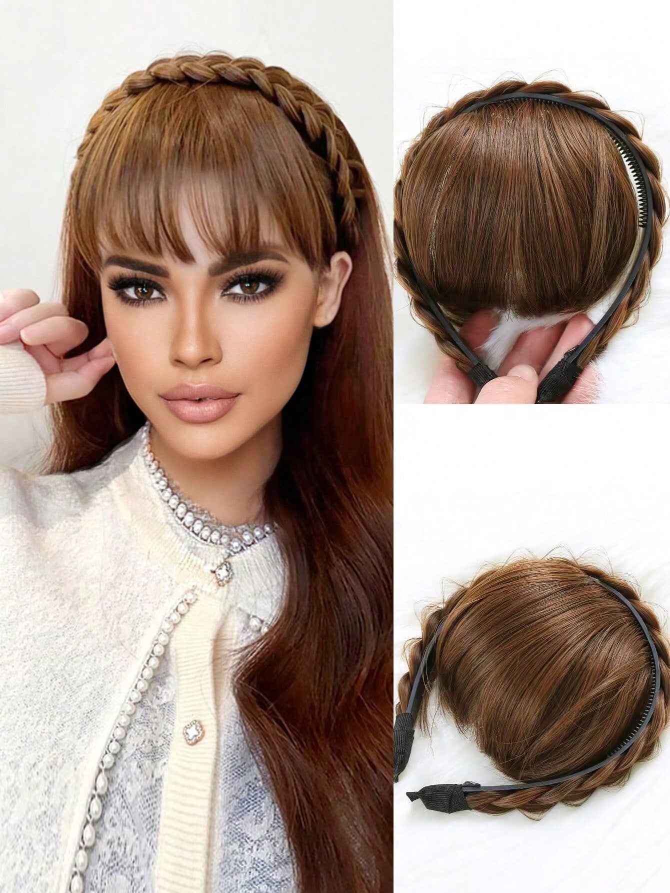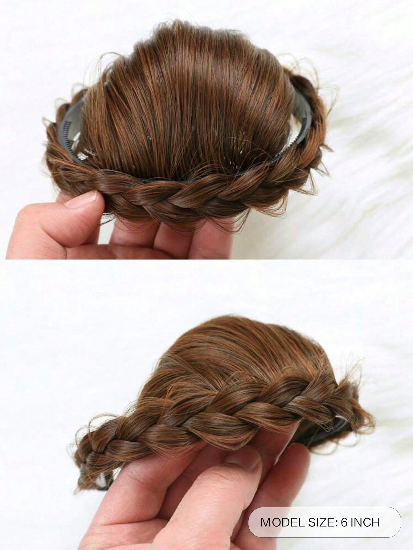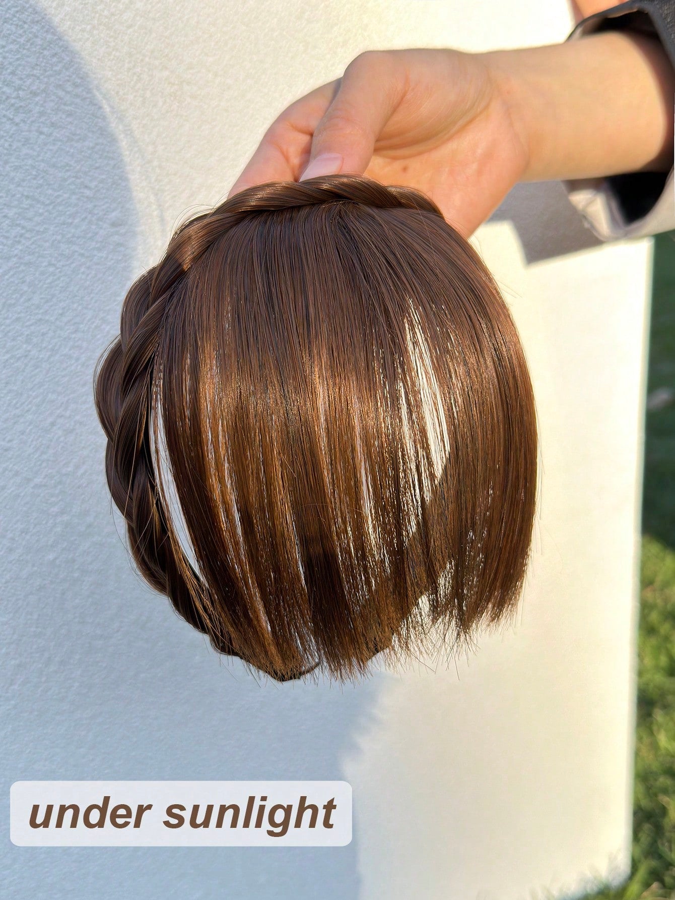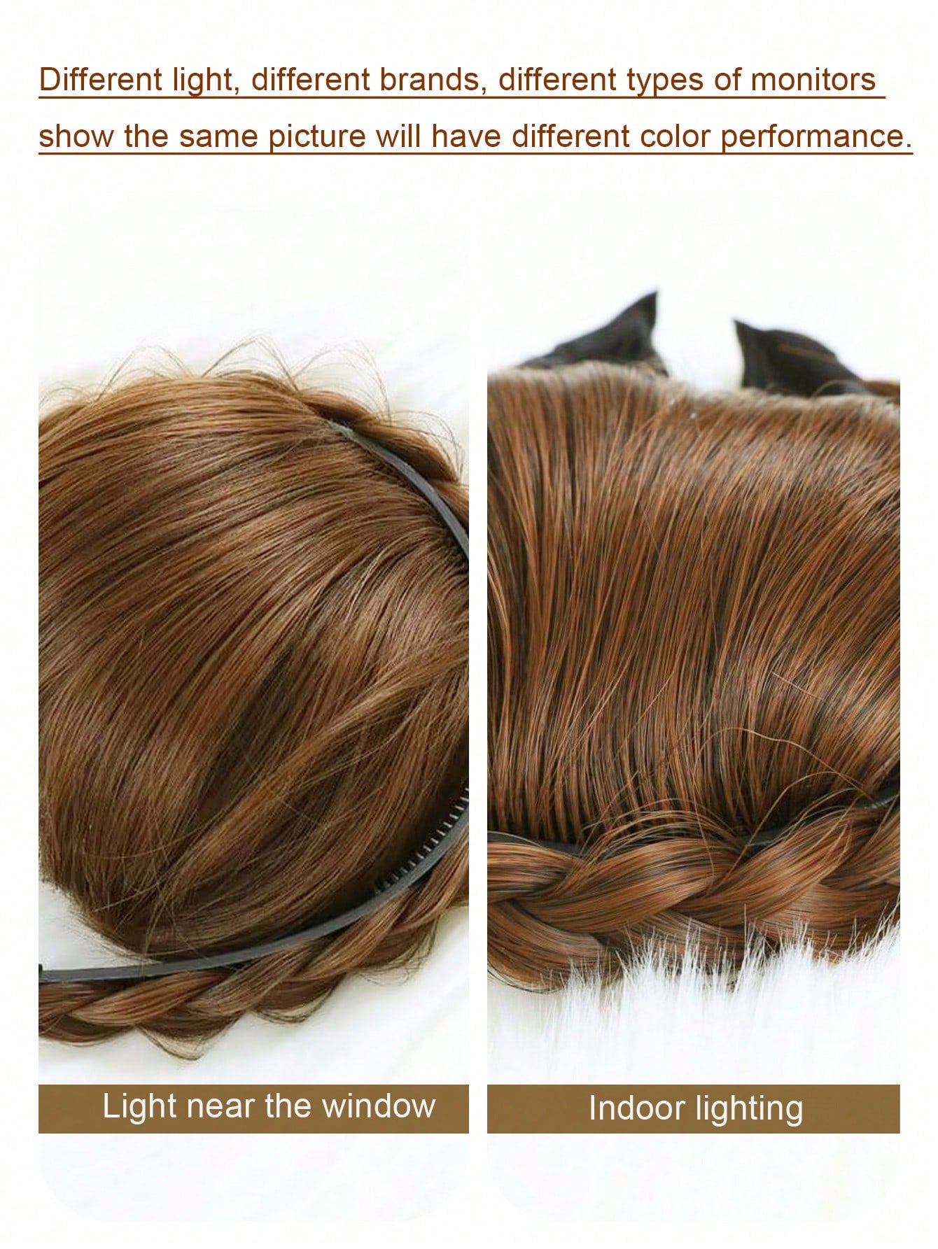 شريط شعر محبوك بثلاثة خيوط اصطناعي مجدول عريض باللون البني باروكة