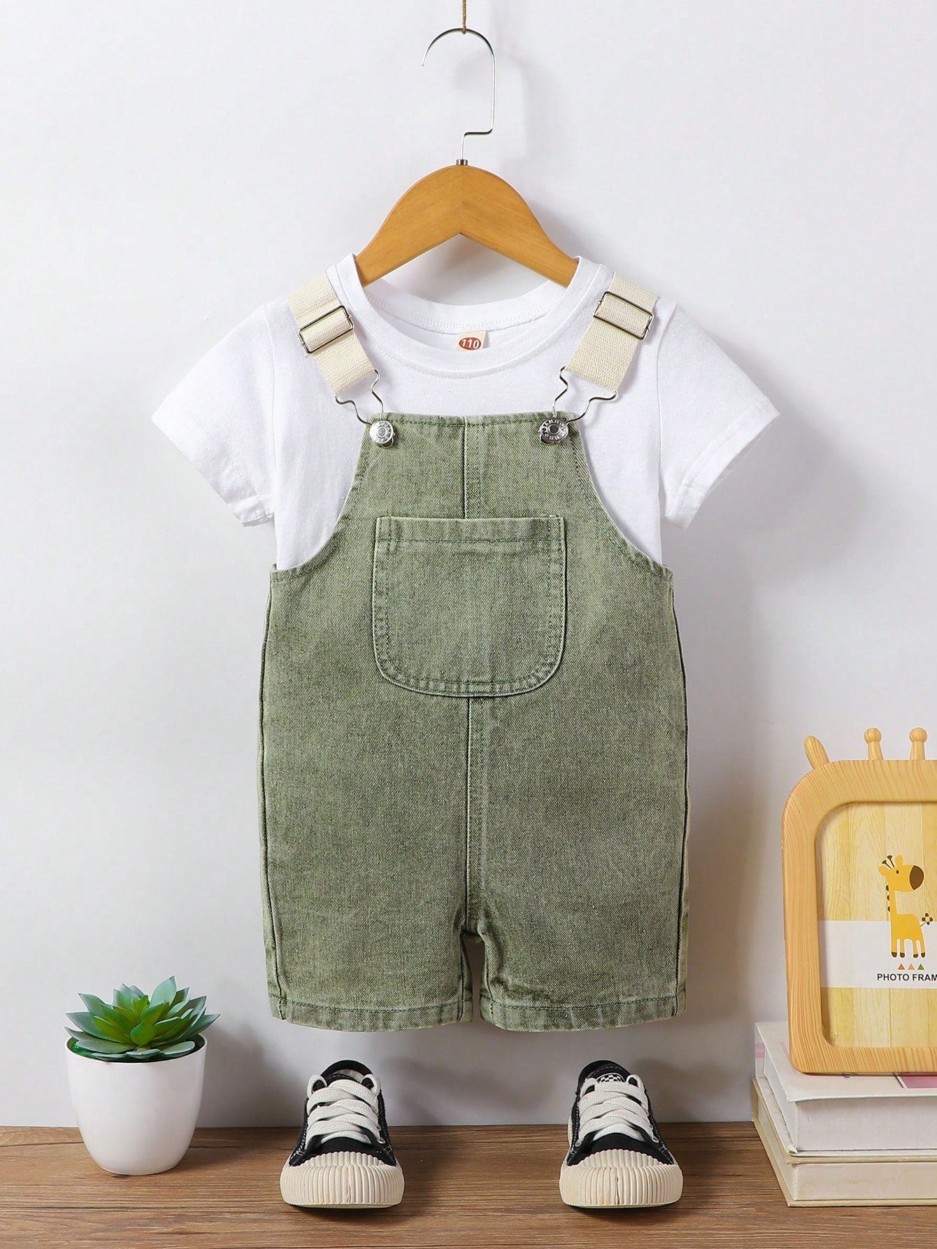 شورت رضيع صبي كاجوال عصري من الدنيم بحمالات