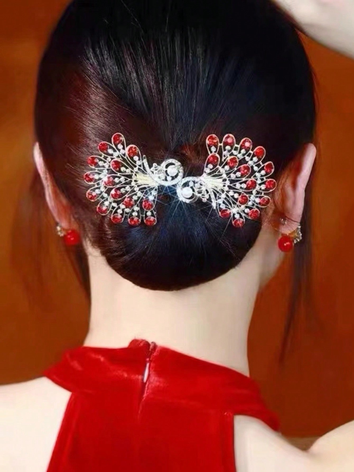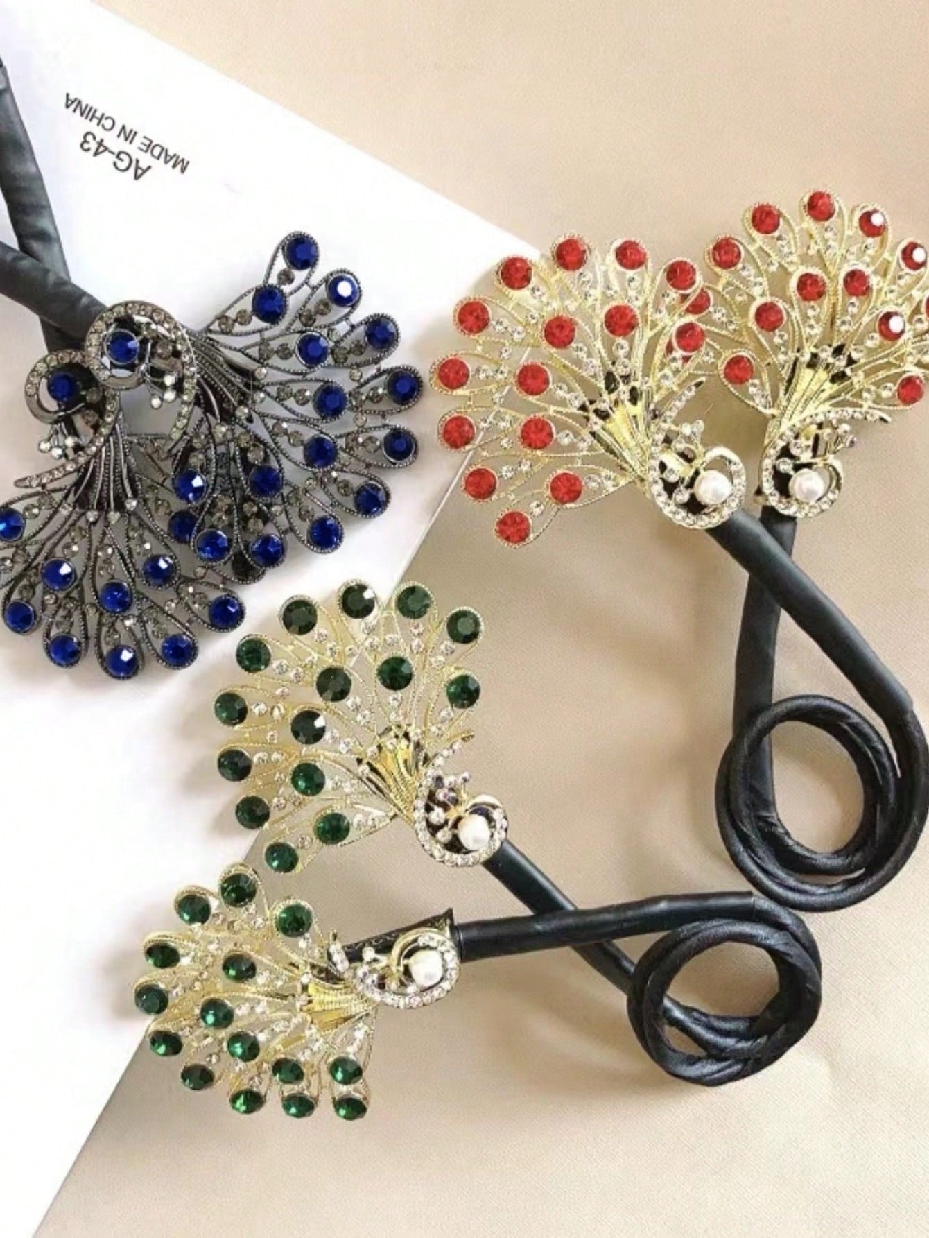 صانعة لفافة شعر على شكل ذيل الطاووس بالأحجار اللامعة، قطعة واحدة