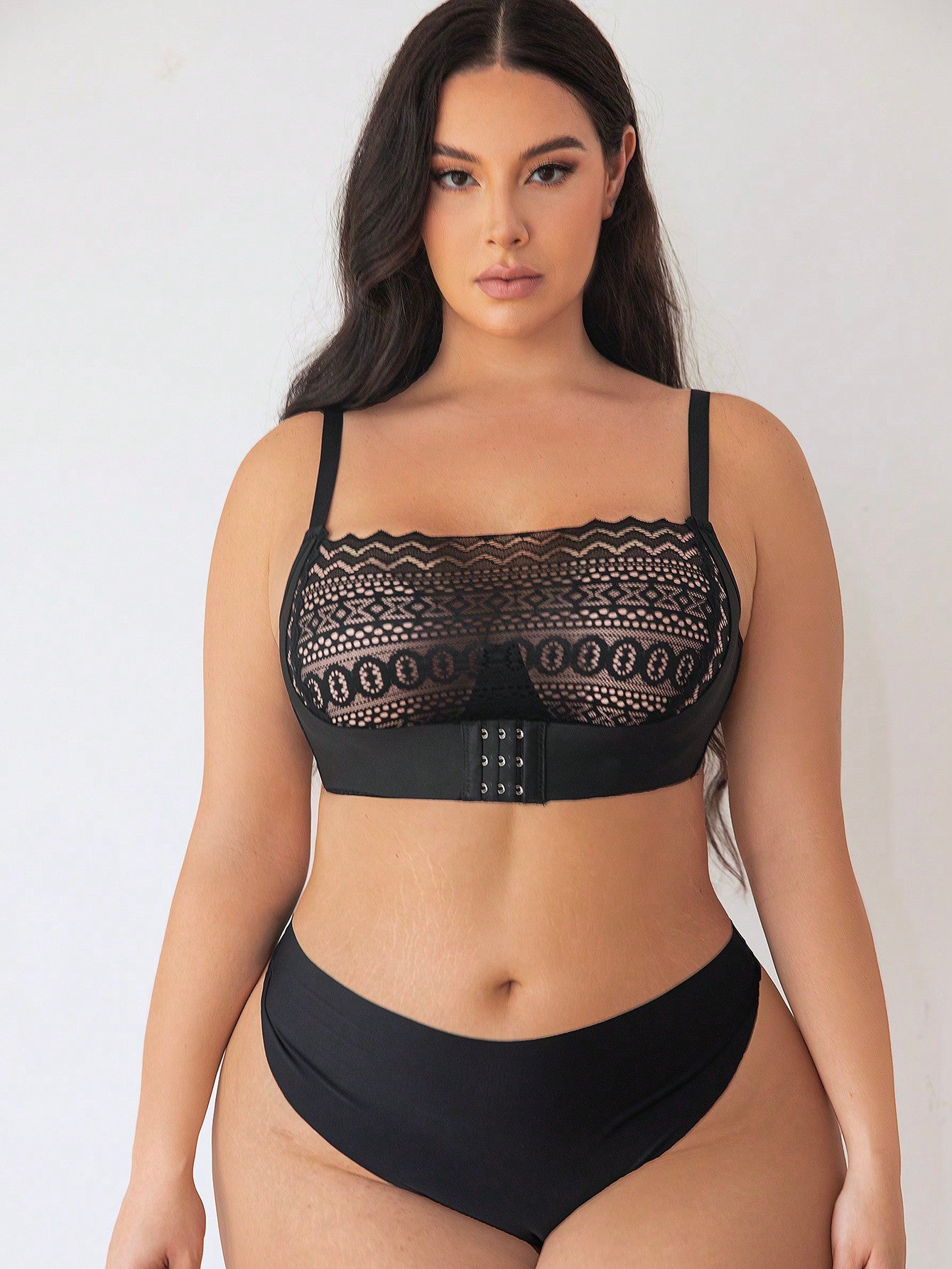 صدرية الدانتيل للنساء بمقاس زائد وأسلاك داخلية، قطعة واحدة