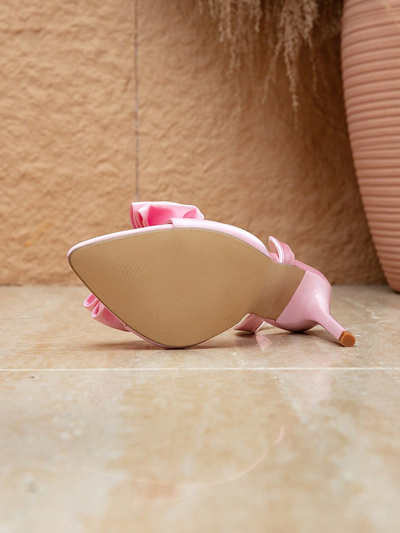 صنادل إبزيم خلفي وردية من الساتان للخروج والحفلات النسائية موضة كعب عالي مدبب
