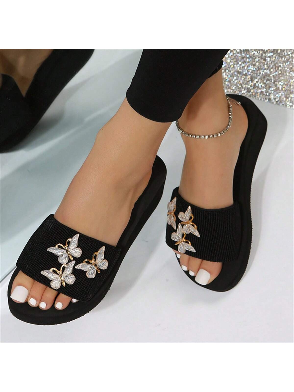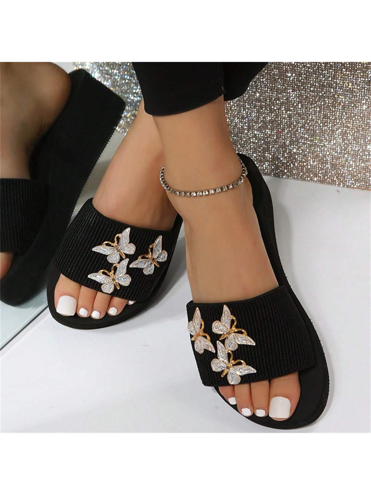 صنادل إسفين بديكور على شكل فراشة من حجر الراين