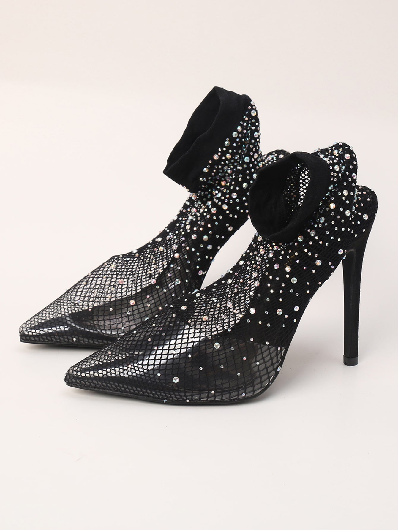 صنادل اصبع مدبب كعب عالي حجر الراين شبكة للنساء للحفلة
