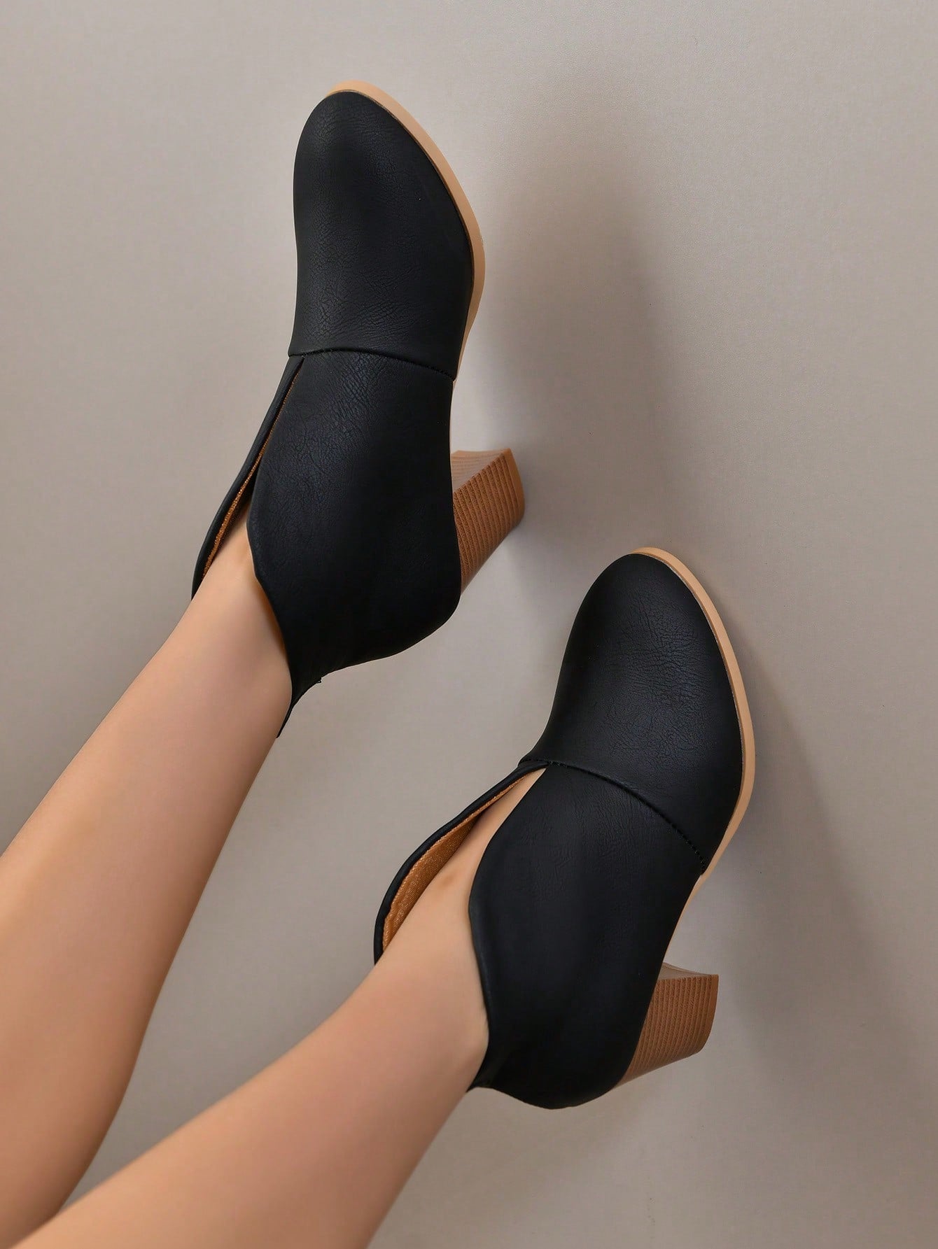 صنادل الكاحل للنساء برأس مدبب وأرجل مسطحة للمقاسات الكبيرة ، نمط أوروبي وأمريكي لخريف/شتاء 2023 ، كعب سميك ، لون صلب