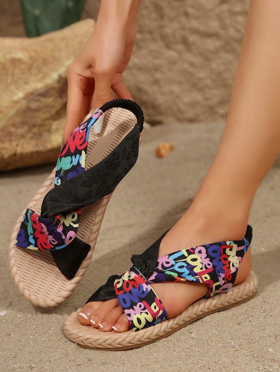 صنادل خفيفة للنساء مصنوعة من قماش معقود