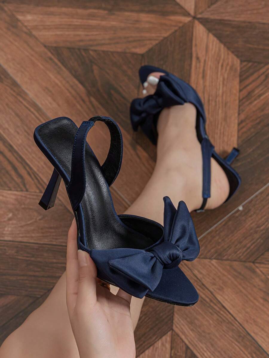 صنادل ذات كعب عالي مزينة بفراشة وحزام مطّاطي