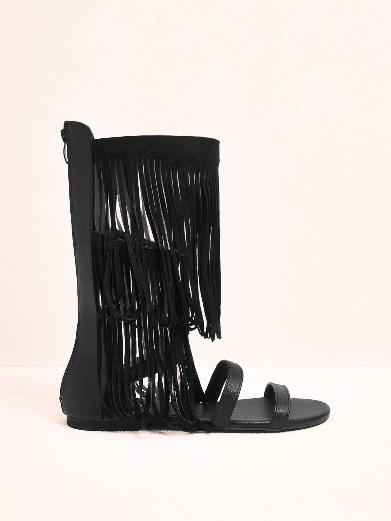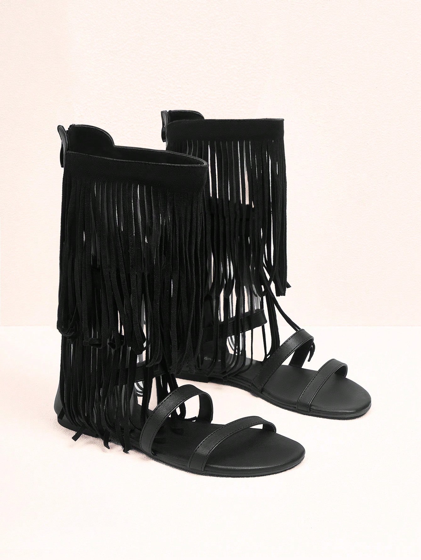 صنادل رومانية عالية بسحاب خلفي وربطات بتدرجات هندسية وشراشيب للنساء، للاستخدام في الصيف، تخفيضات الصيف
