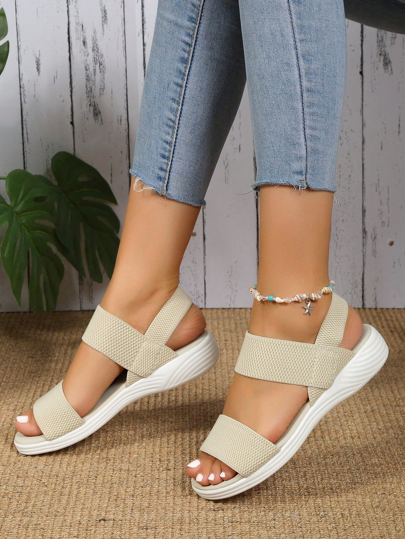 صنادل رياضية مبسط مفتوح الوراء رياضي رياضي البني الفاتح قماش نساء