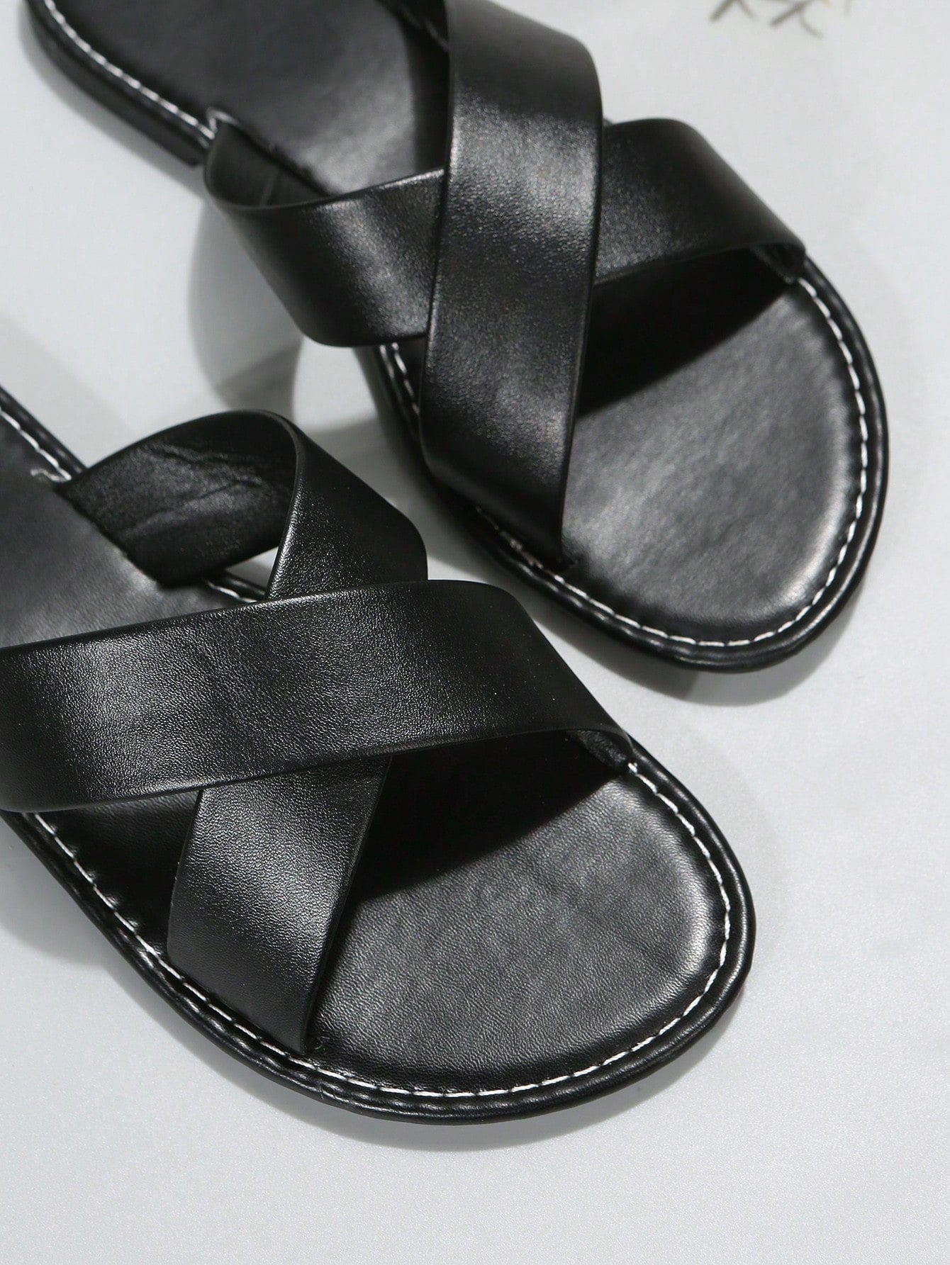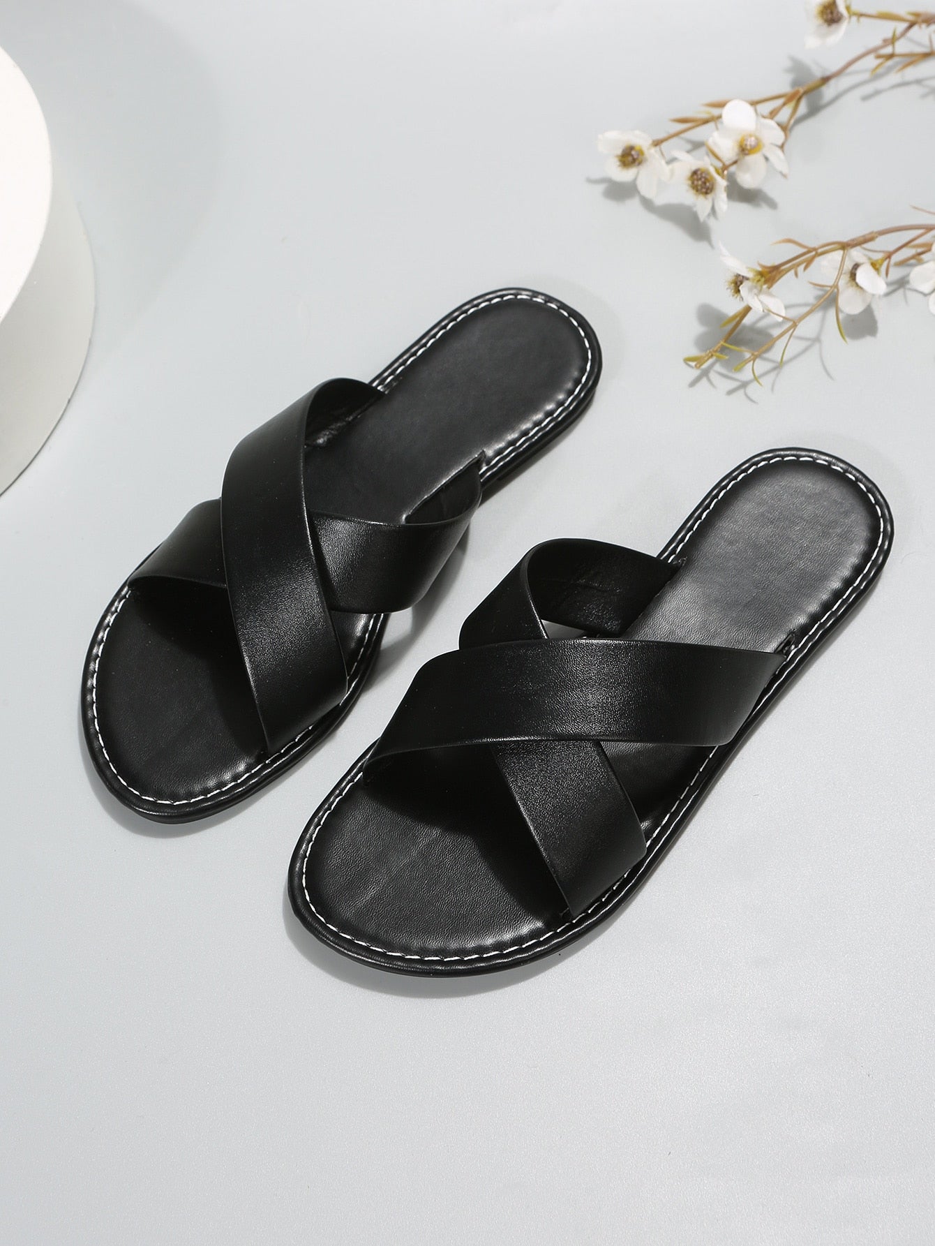صنادل سلايد أشرطة متقاطعة مسطح أنيق الى خارجي نساء