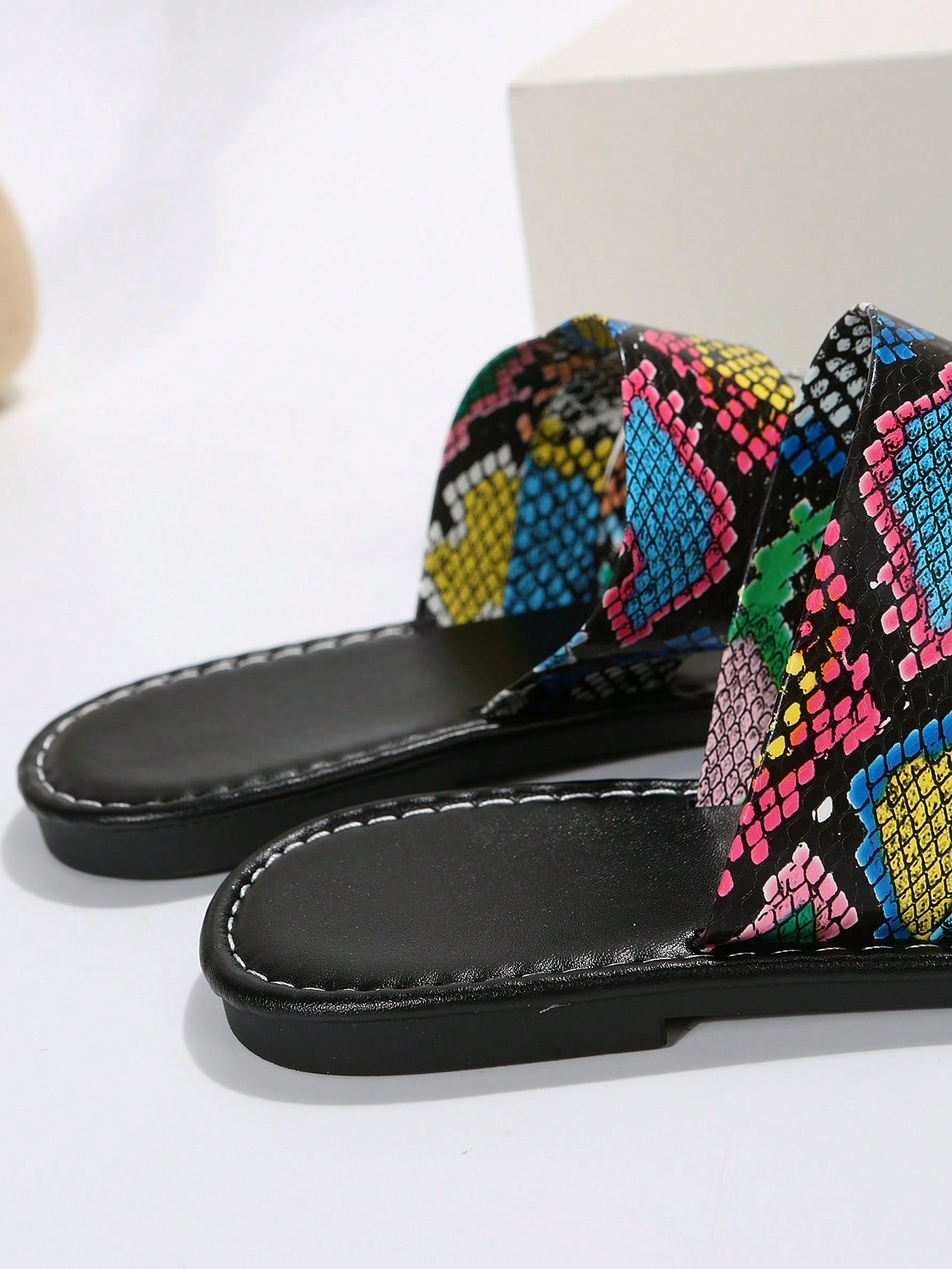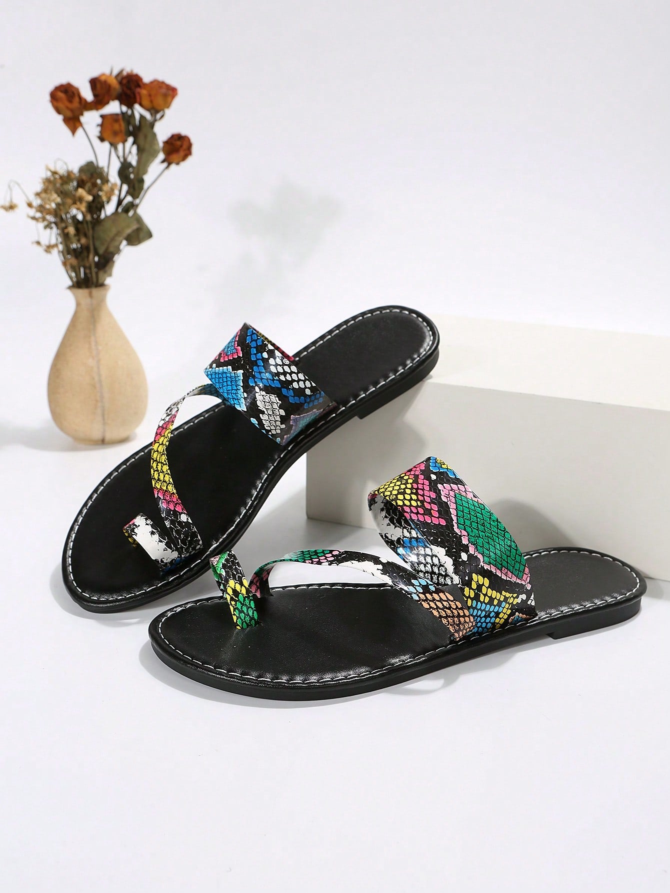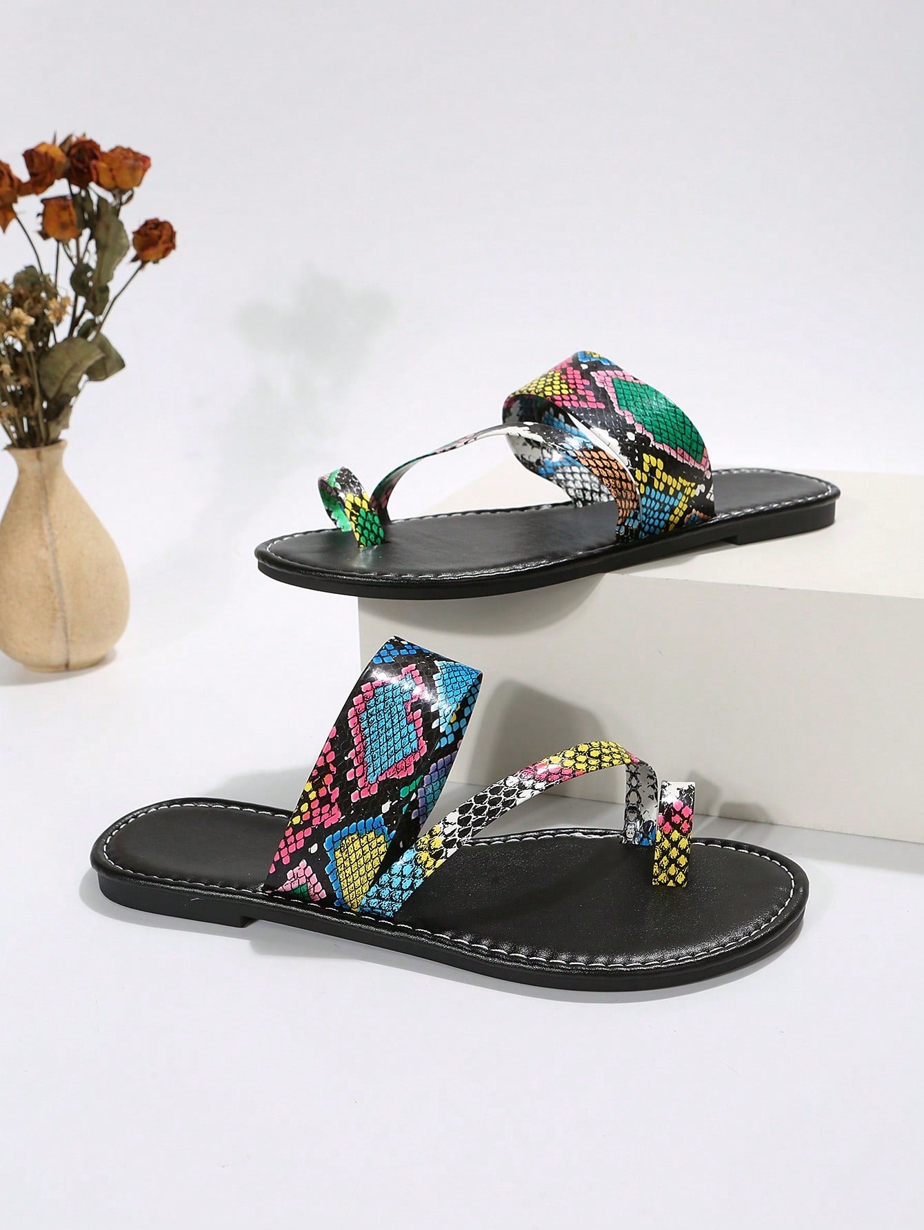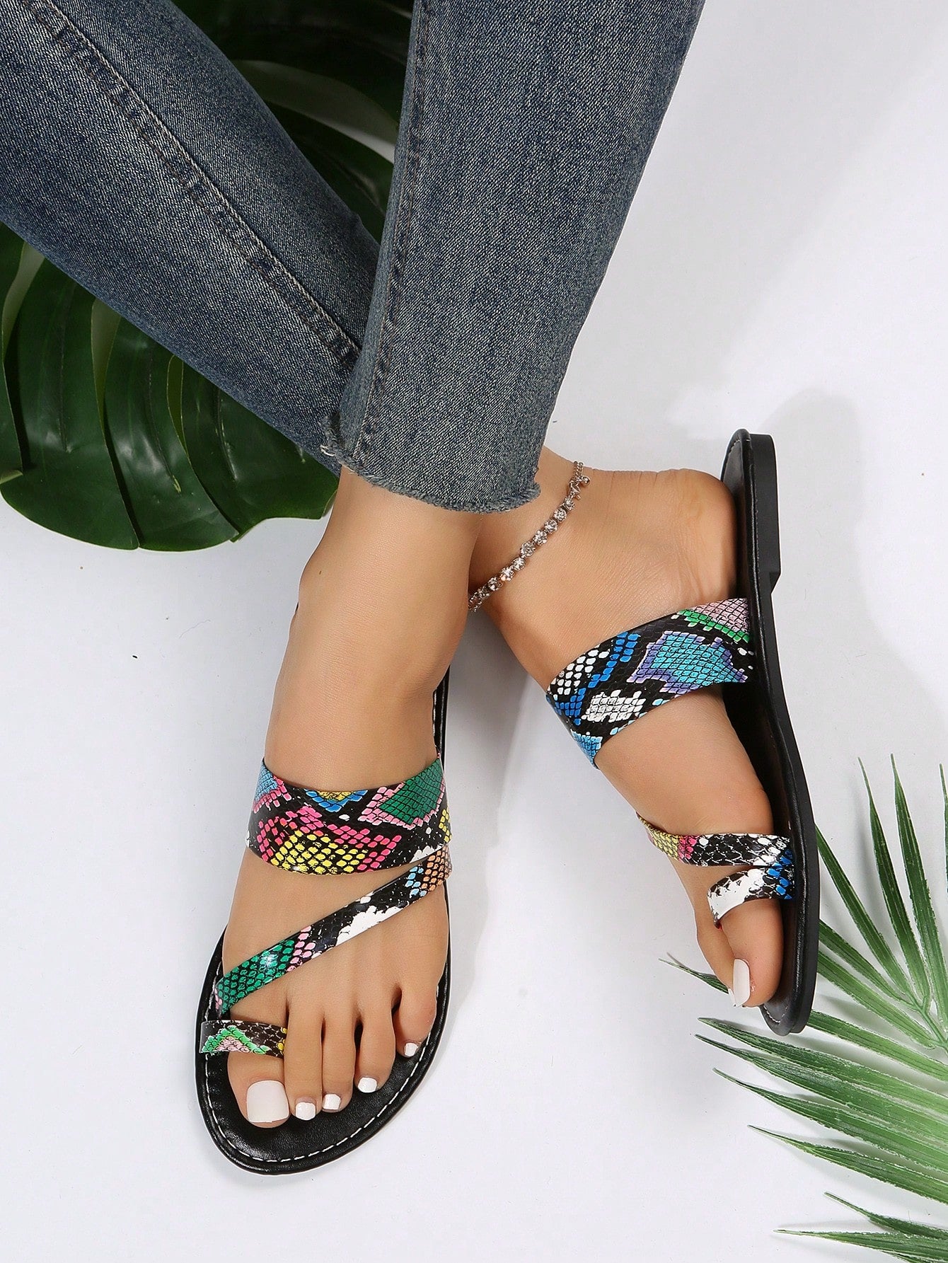 صنادل غير تقليدي للنساء ، صنادل رباط منقوش بجلد الأفعى