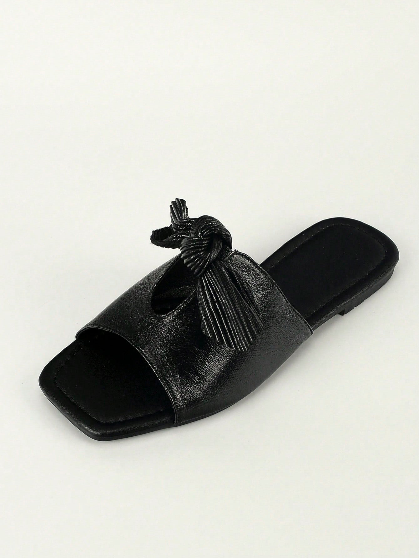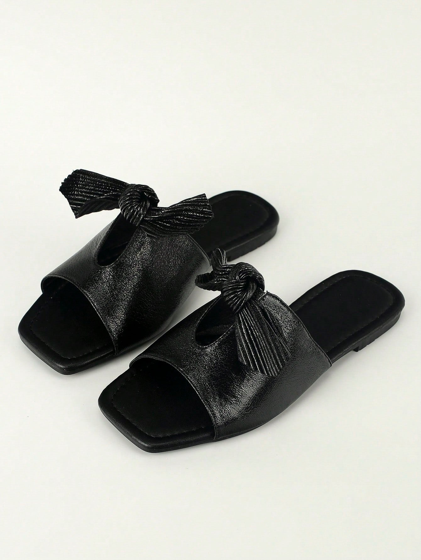 صنادل مسطح مبسط مزخرف بعقدة الفراشة موضة الصيف نساء
