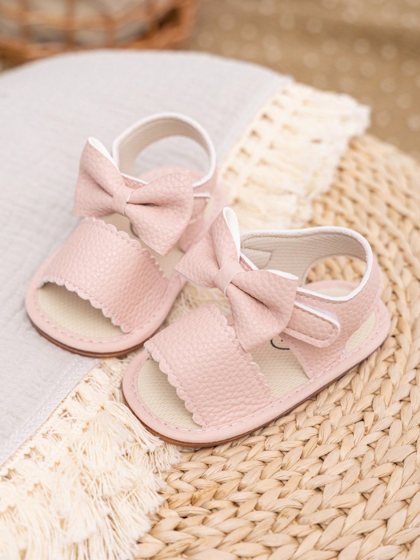 صنادل مسطح مزخرف بعقدة الفراشة مقلم شكل اقواس تفاصيل لاصق سحري مفتوح الوراء لطيفة خارجي بنات