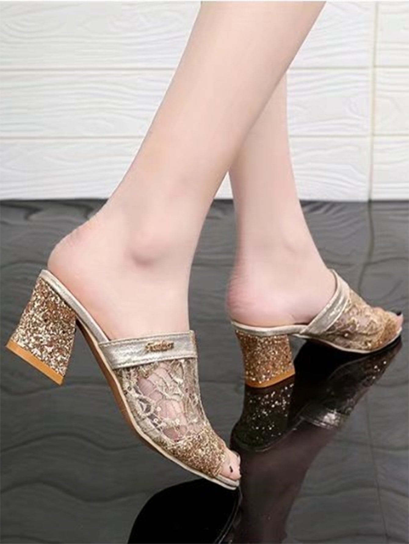 صنادل مول بتفاصيل براق حذاء كعب مكتنز
