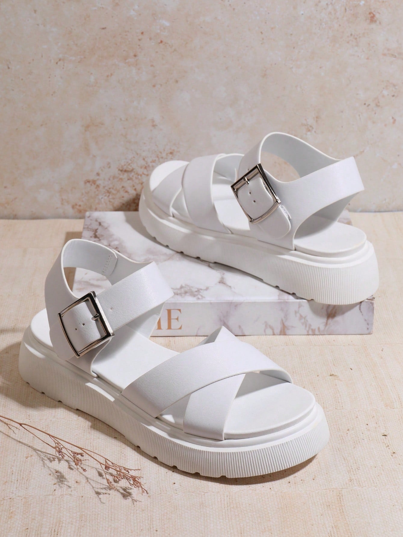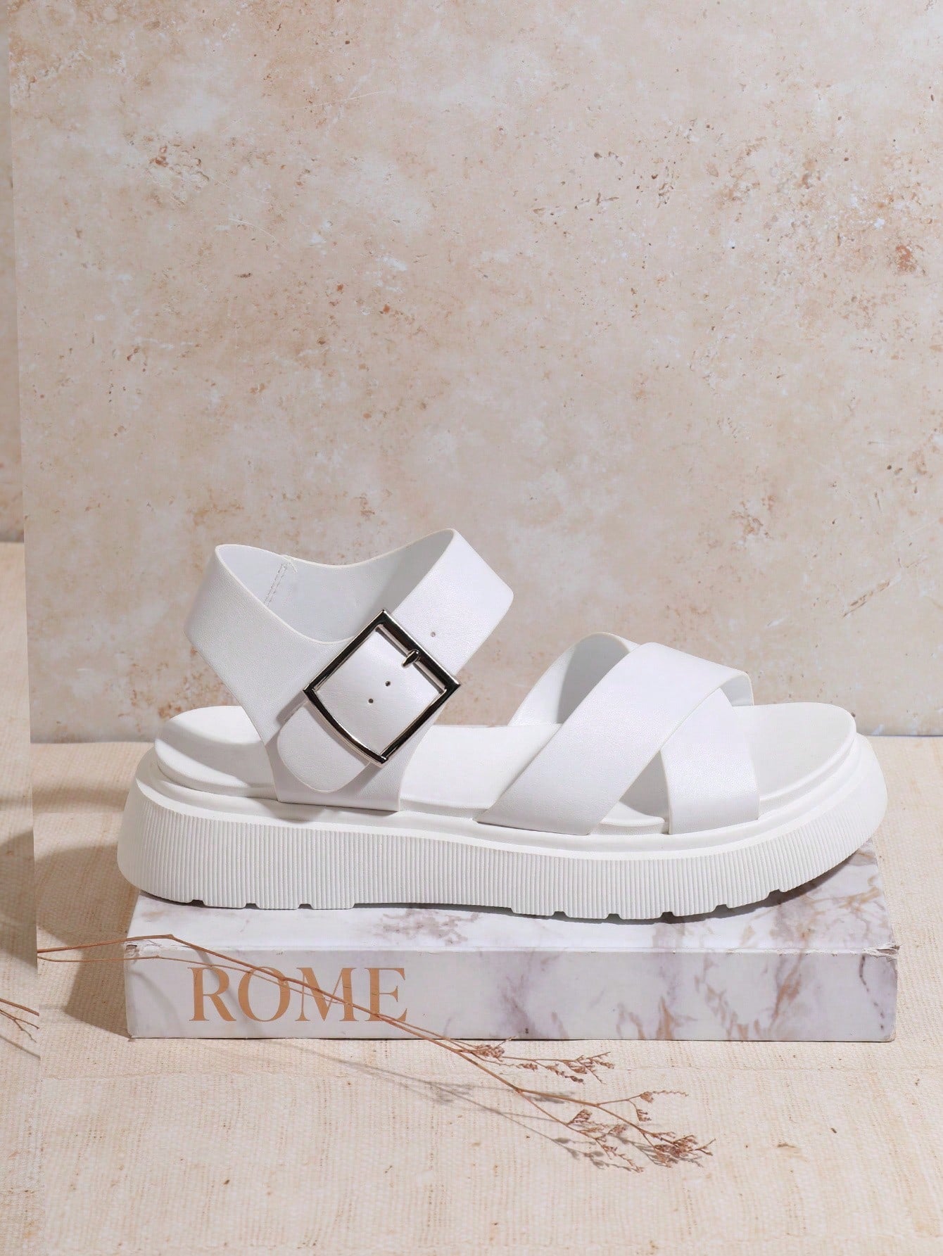 صنادل نسائية بكعب متوسط ونعل سميك عريض وأحزمة عريضة على الجزء العلوي