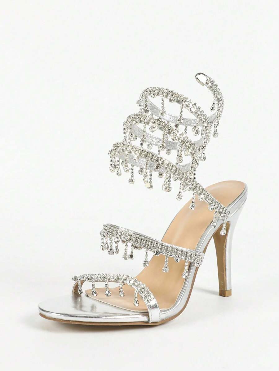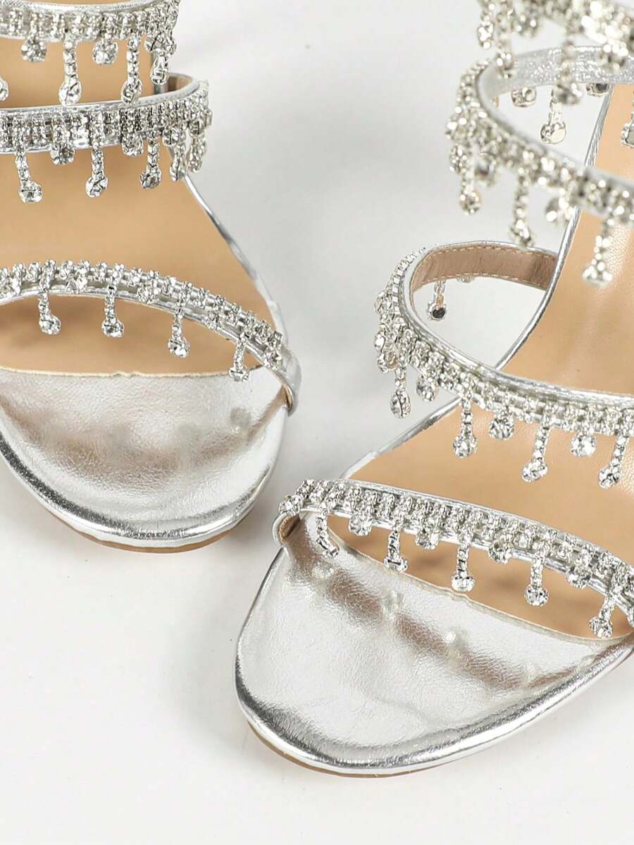صنادل نسائية ذات كعب عالي رفيعة، بحزام على الشكل الأنيق