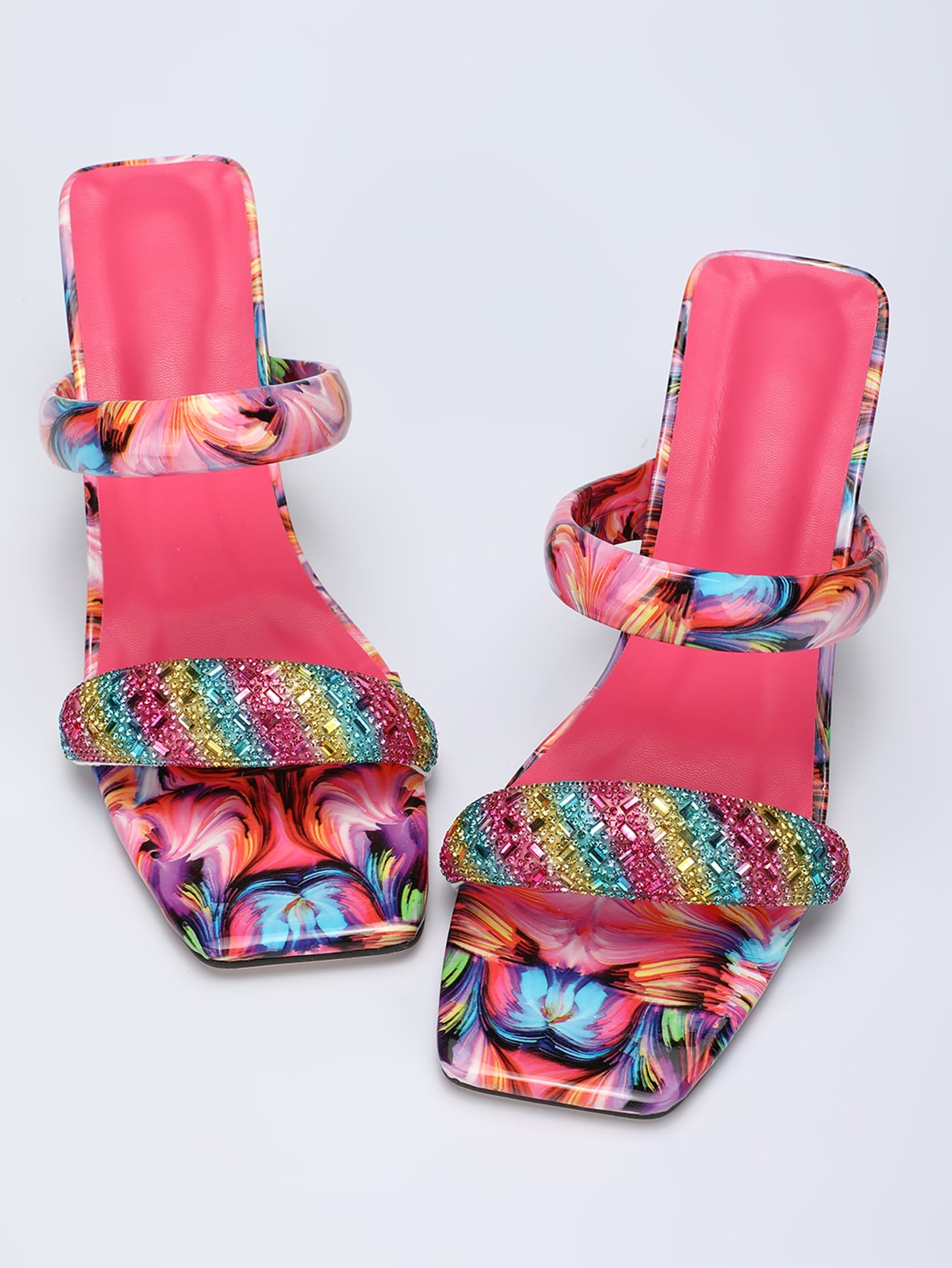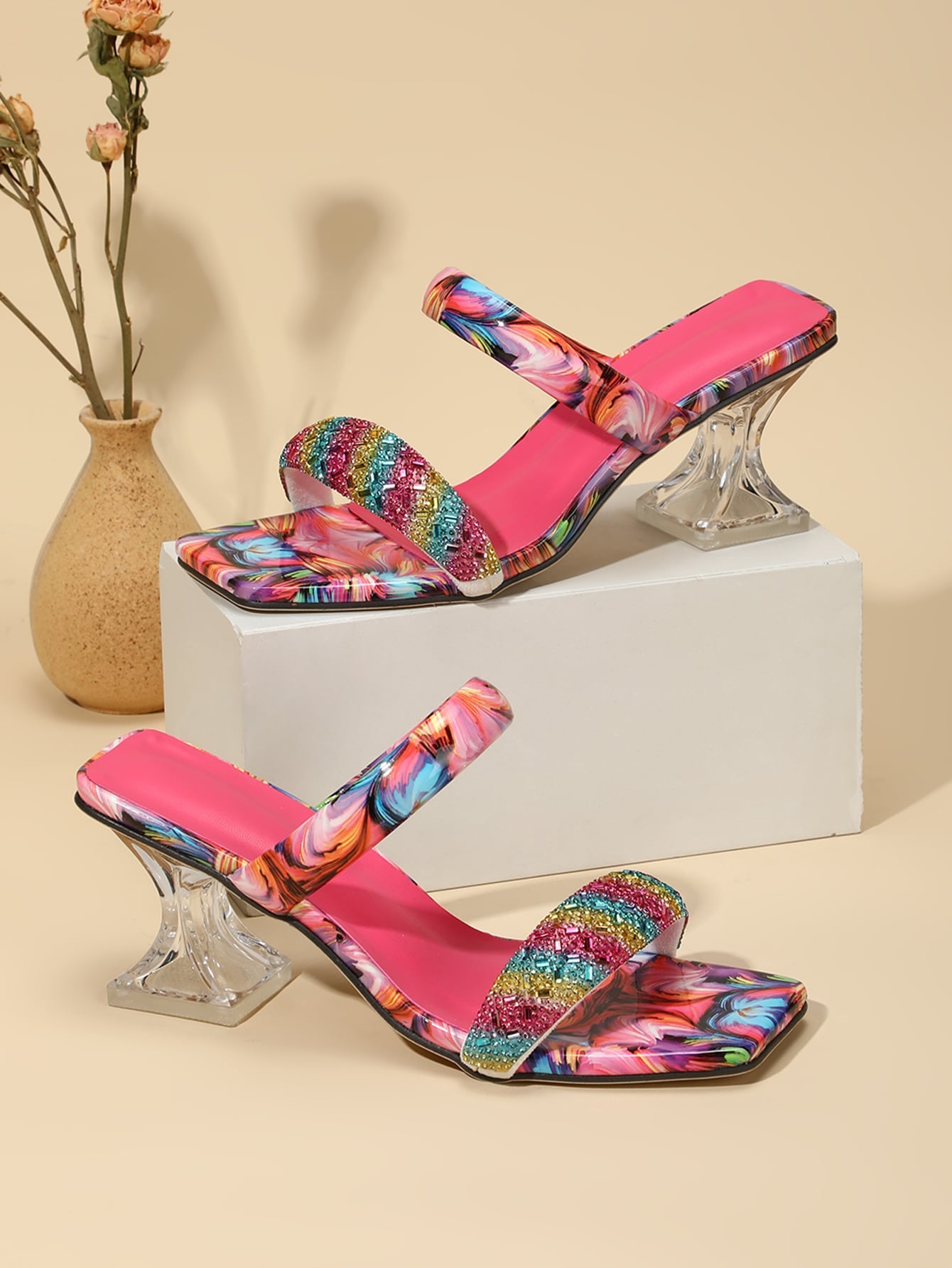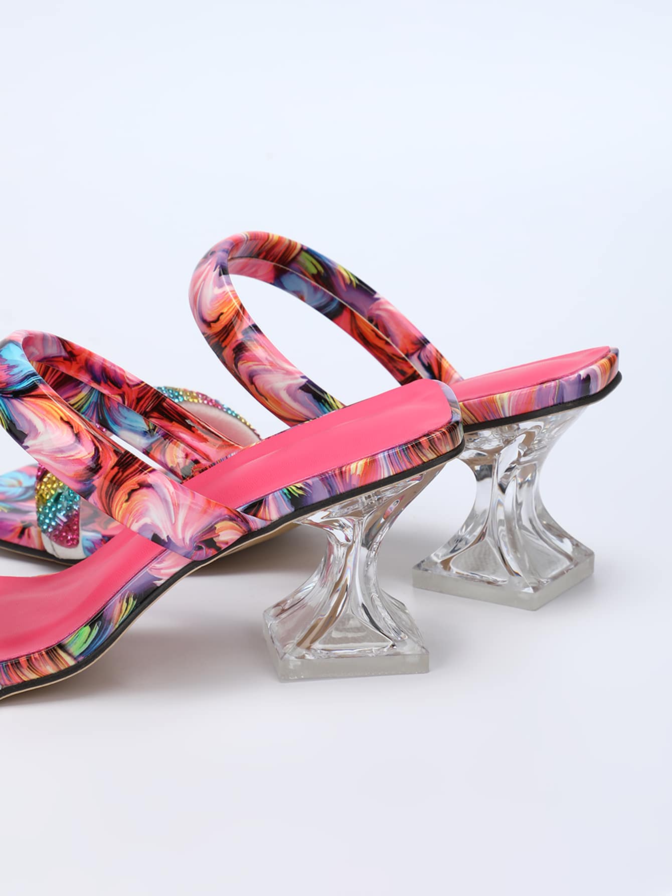 صنادل نسائية ذات كعب عالٍ بأحجار الراين مزخرفة بأحجار الراين وصنادل بكعب صيفية موضة