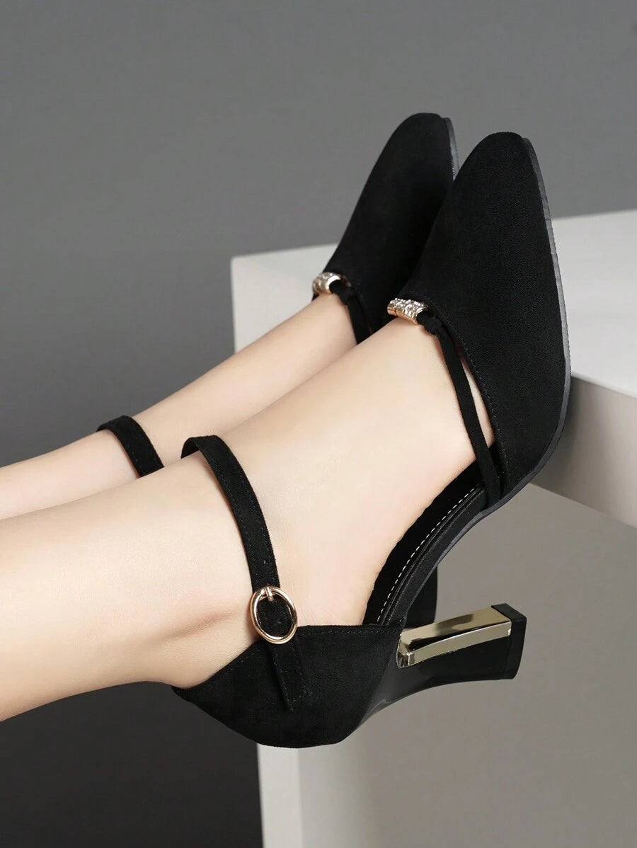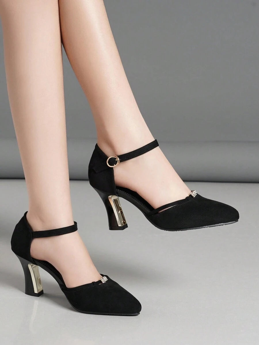 صنادل نسائية ذات كعب كبير سميك بحزام ومرصعة بالراين، فتحة للأصابع، للربيع والصيف