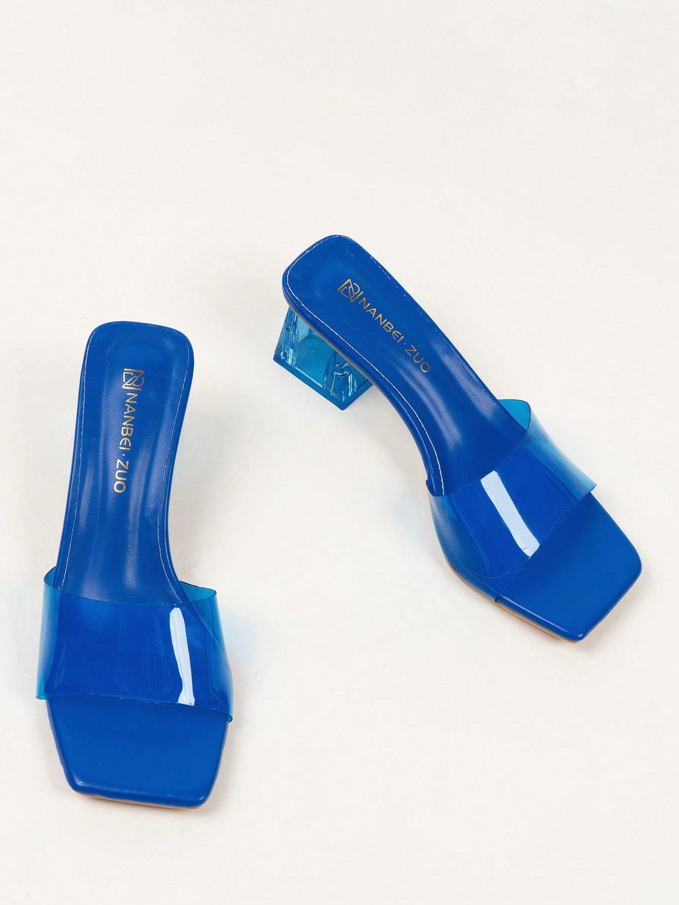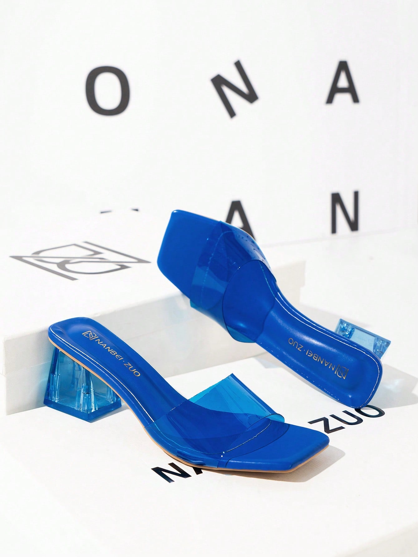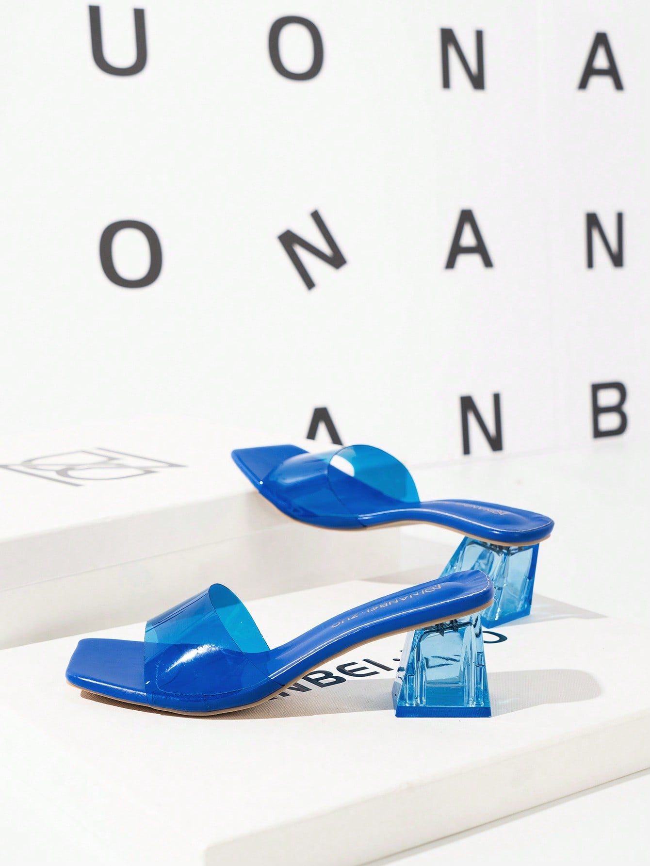 صنادل نسائية عالية الكعب شفافة بلون أزرق