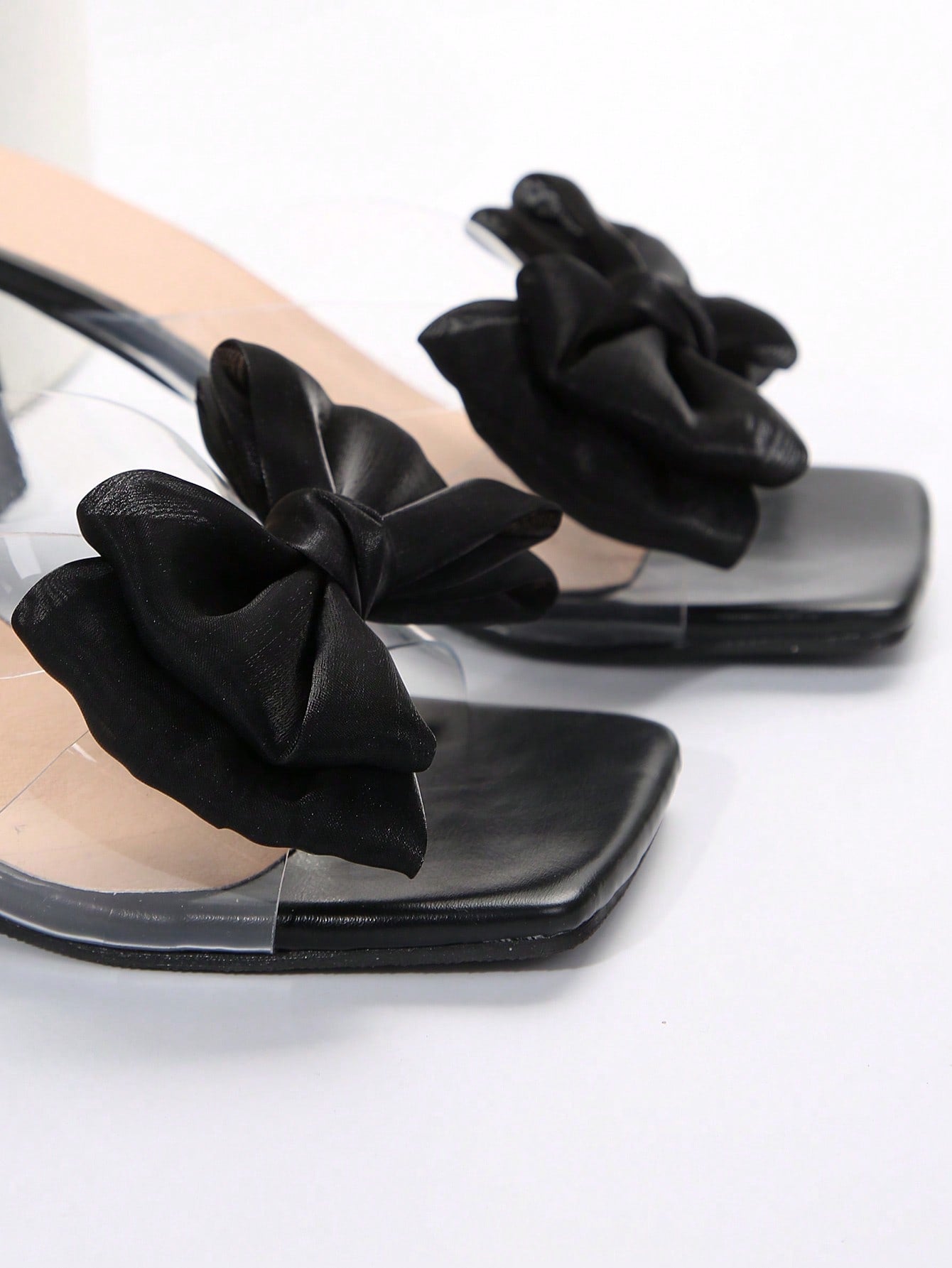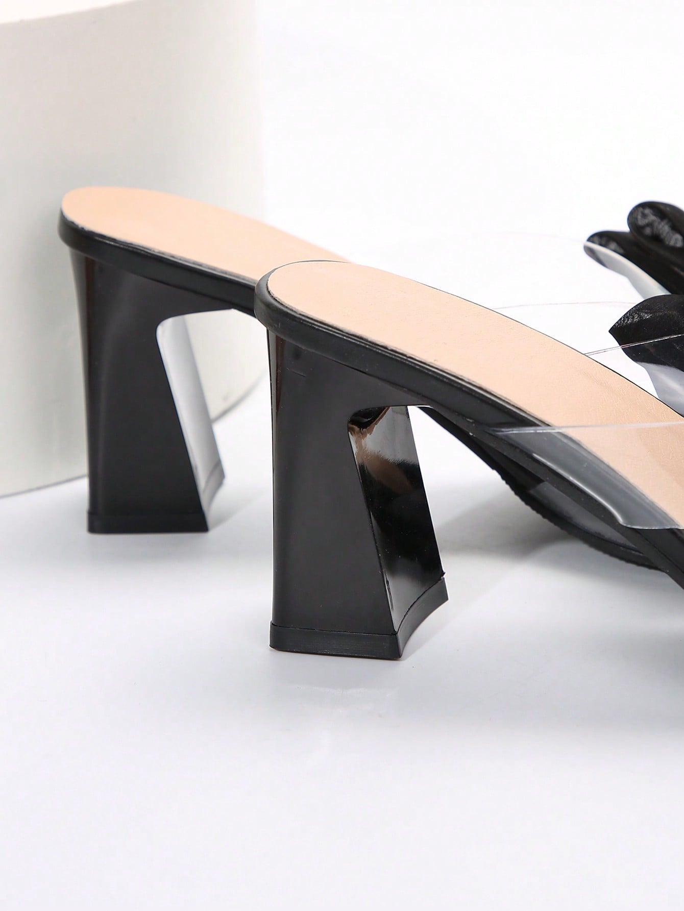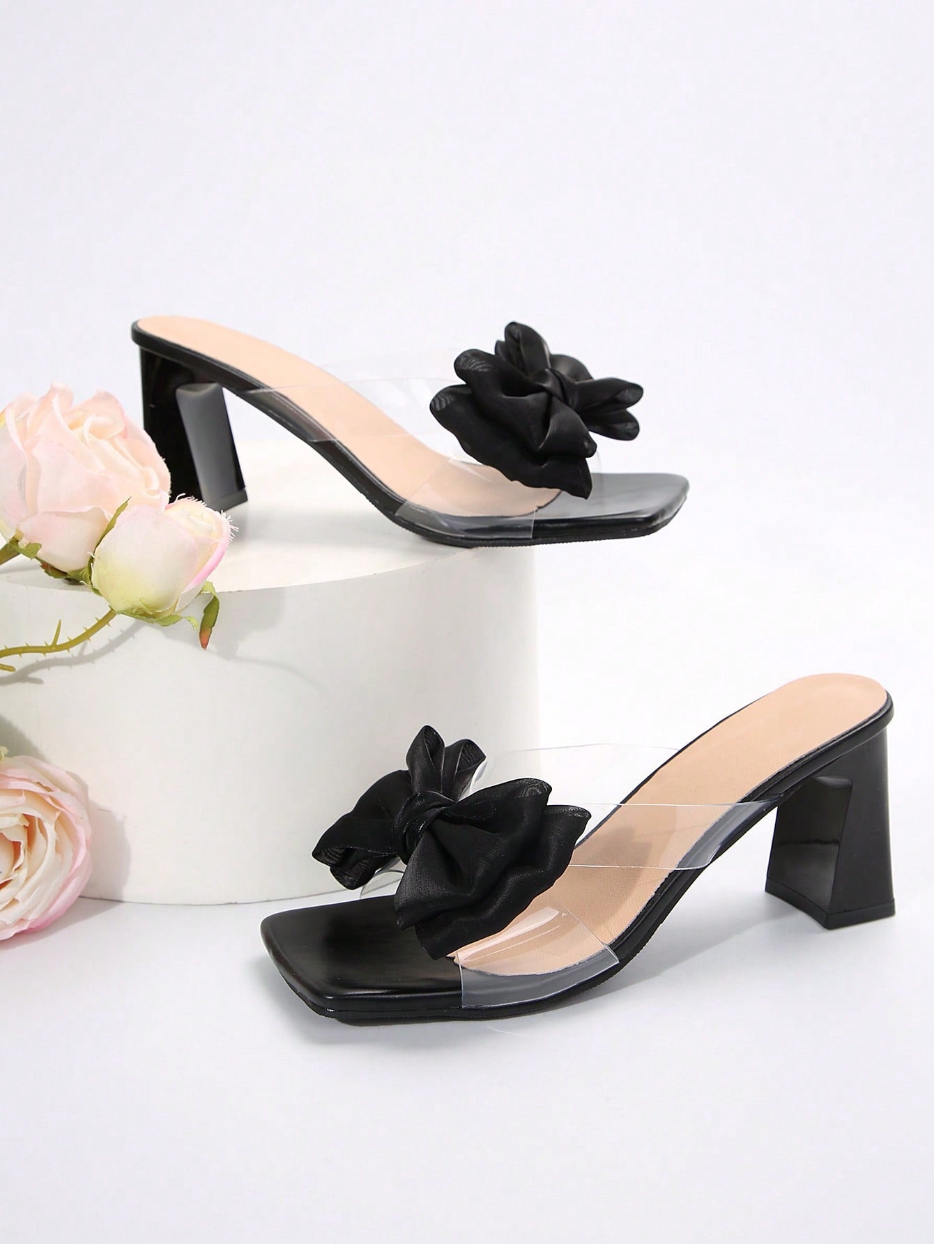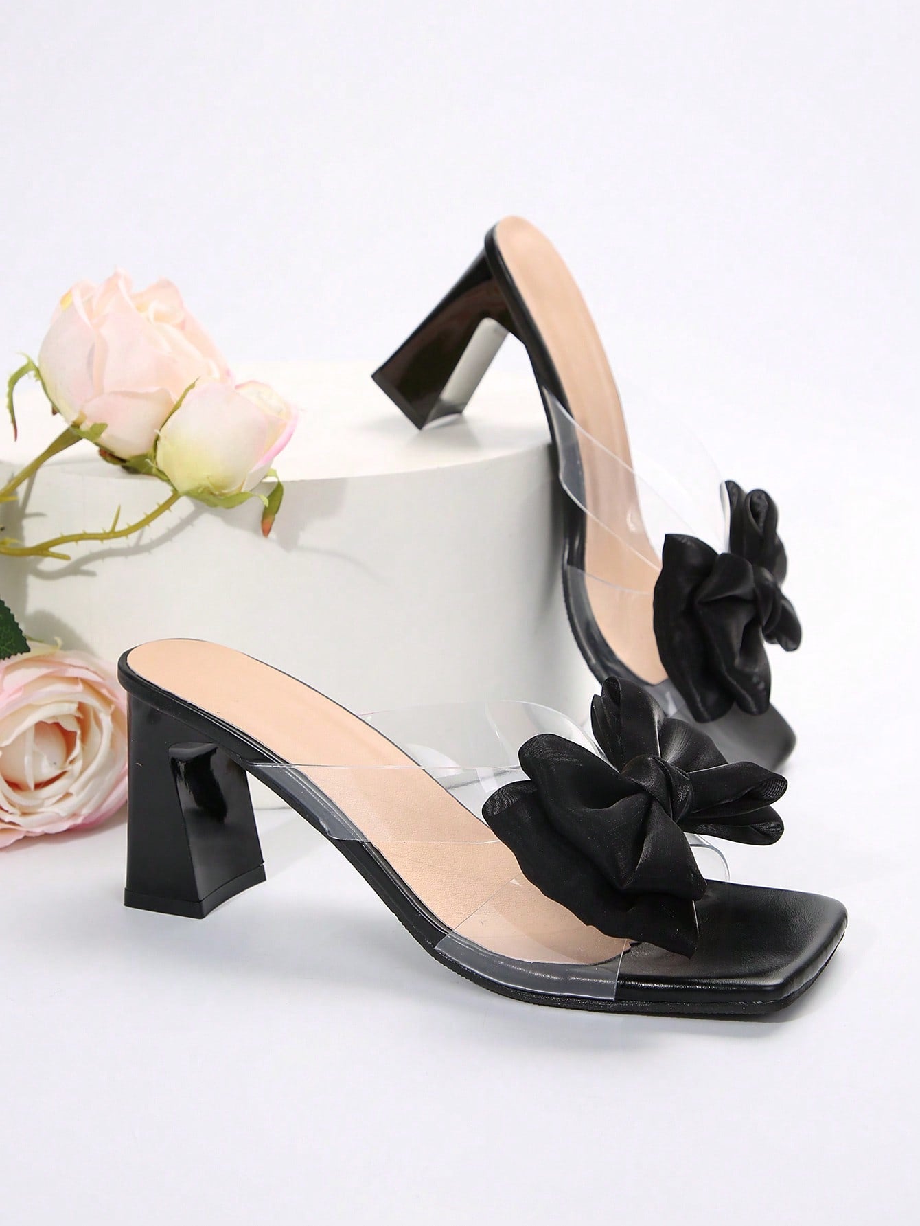صنادل نسائية مدببة بكعب سميك وقوس عنقودي من اللون الأسود بأسلوب فرنسي، مثالي للصيف والخريف.