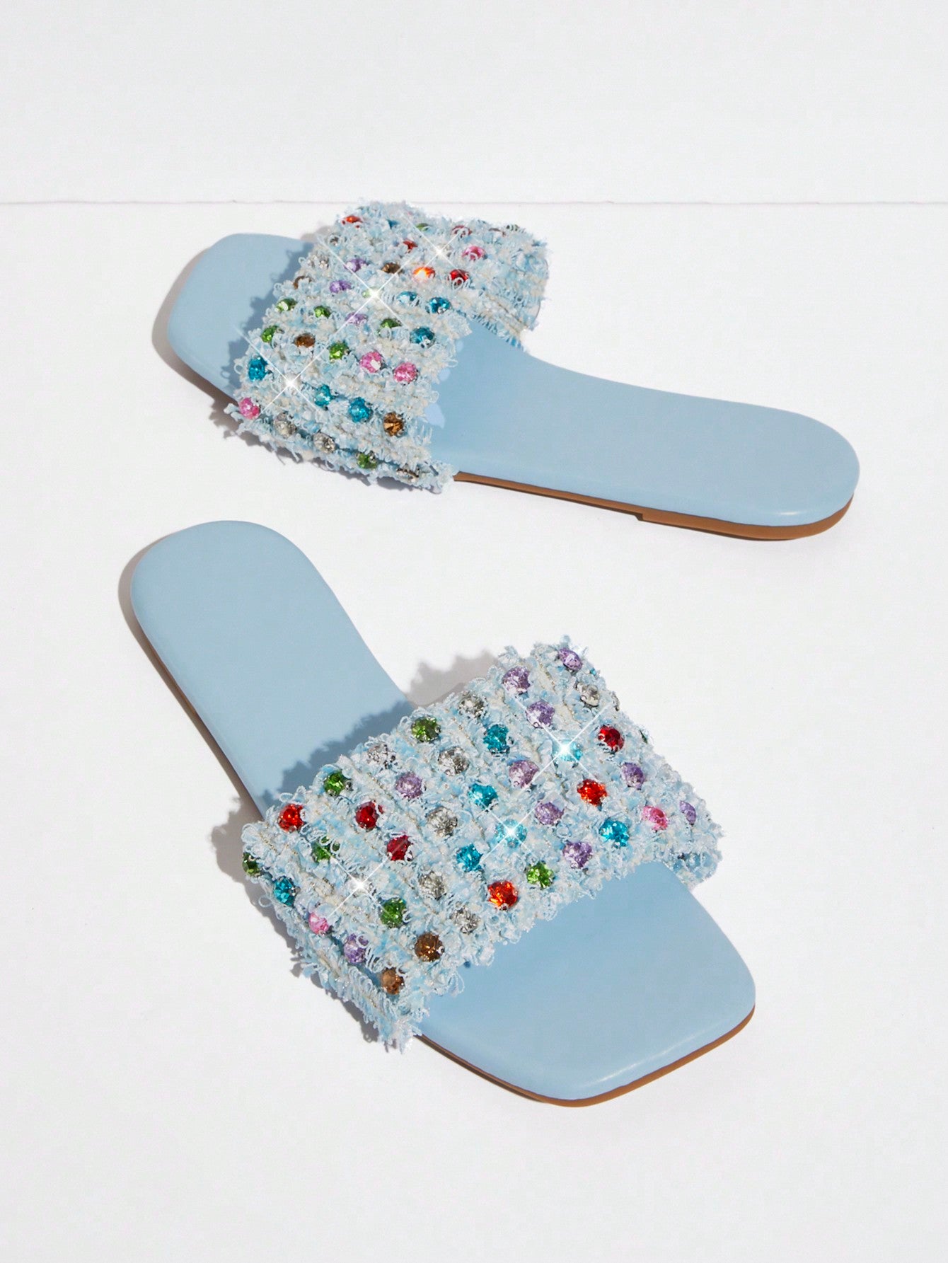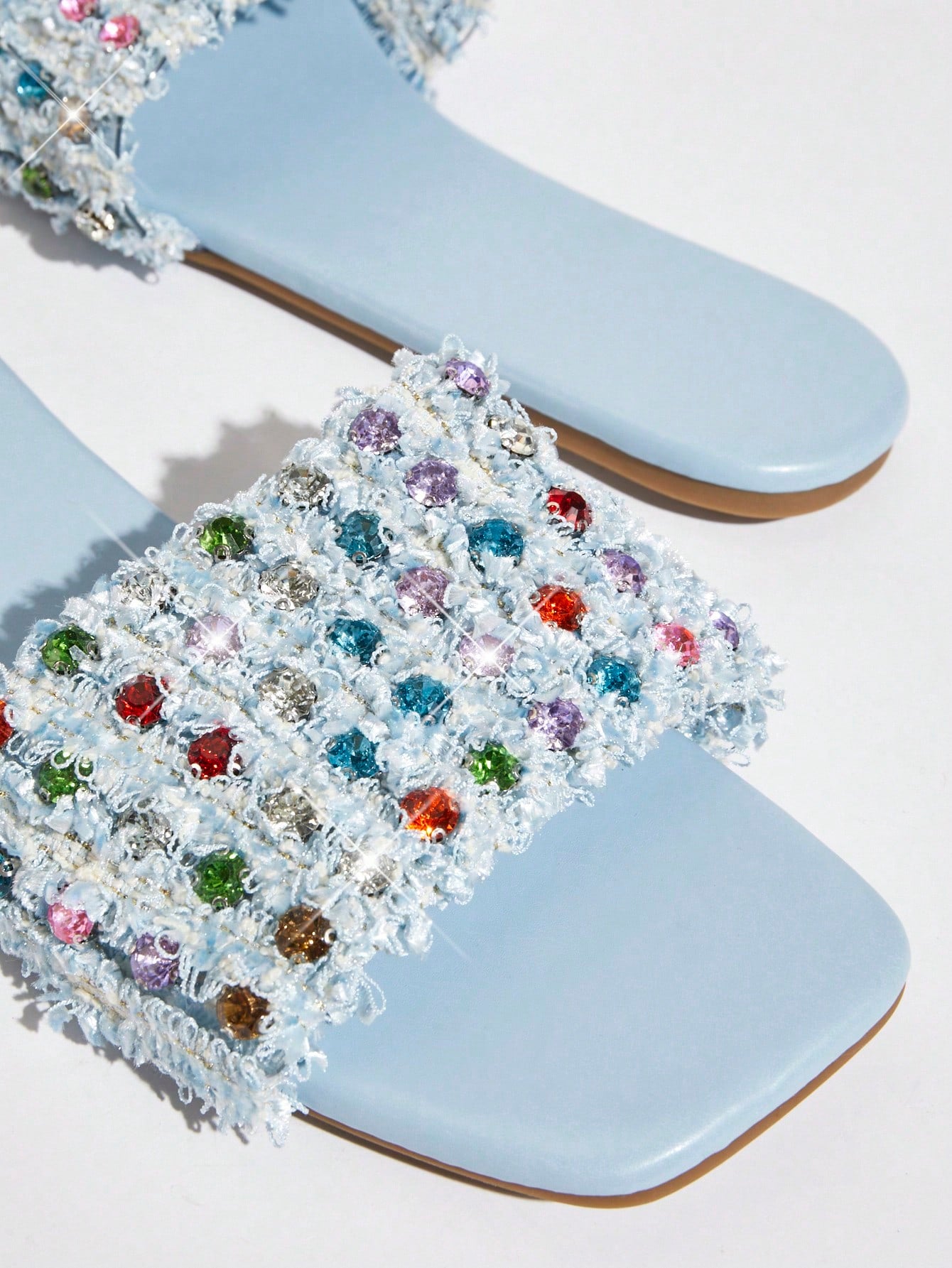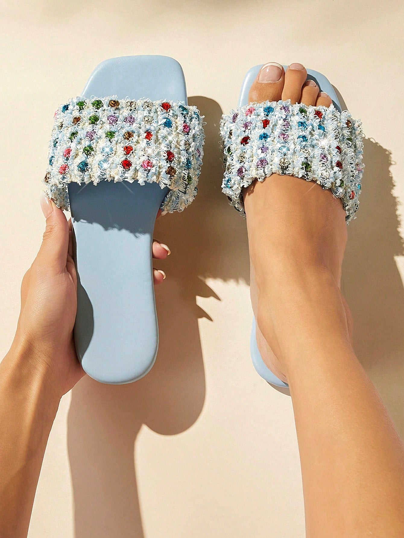 صنادل نسائية مربعة الأصابع واسعة النطاق بتصميم متعدد الألوان، وصلح جديد للصيف، أنيقة وأنيقة.