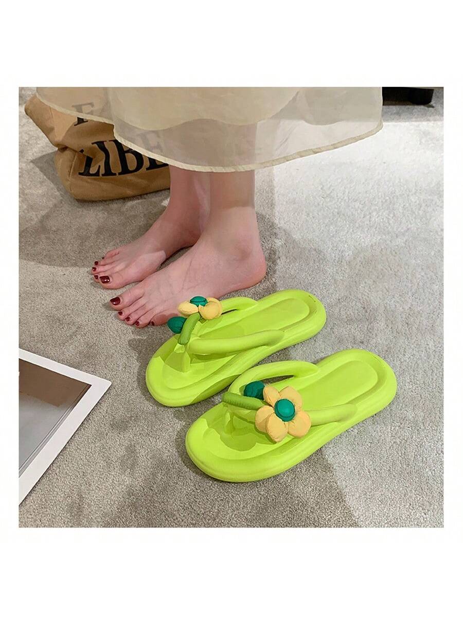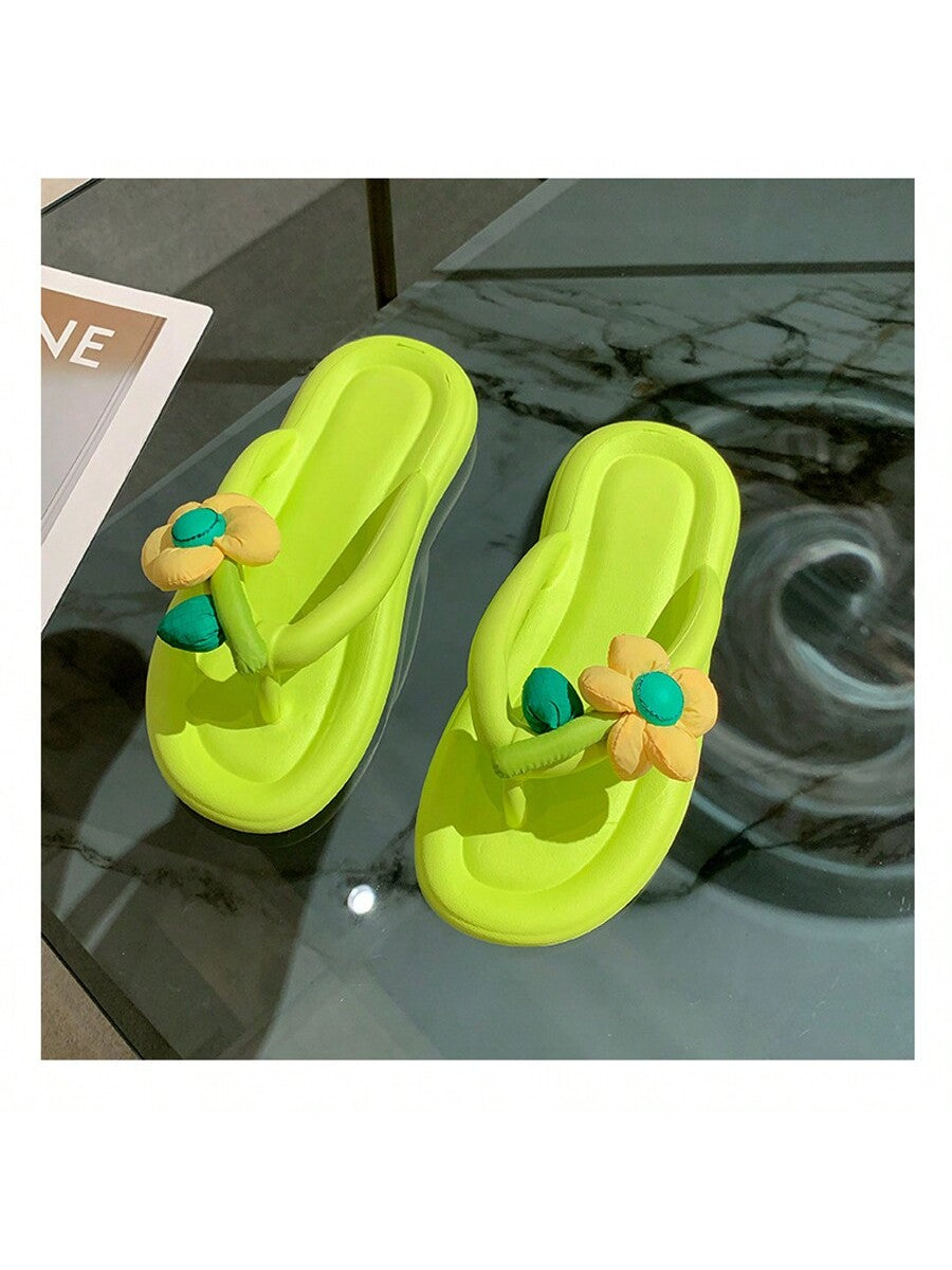 صندل ايفا نسائي وردي بنمط زهرة، رائع المظهر ومانع للانزلاق، مثالي للشاطئ والأماكن الخارجية مع نعل سميك.