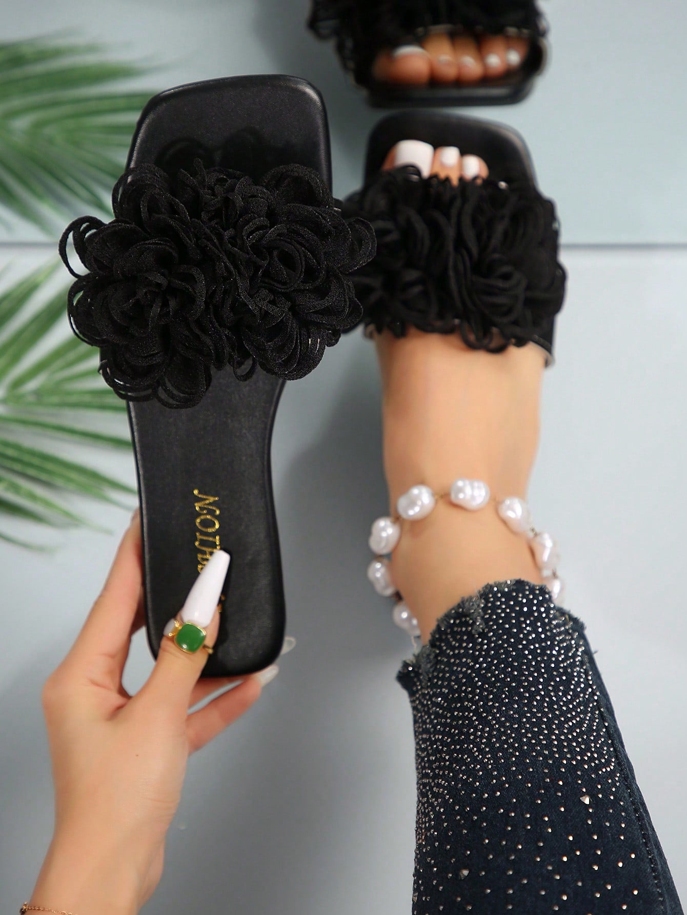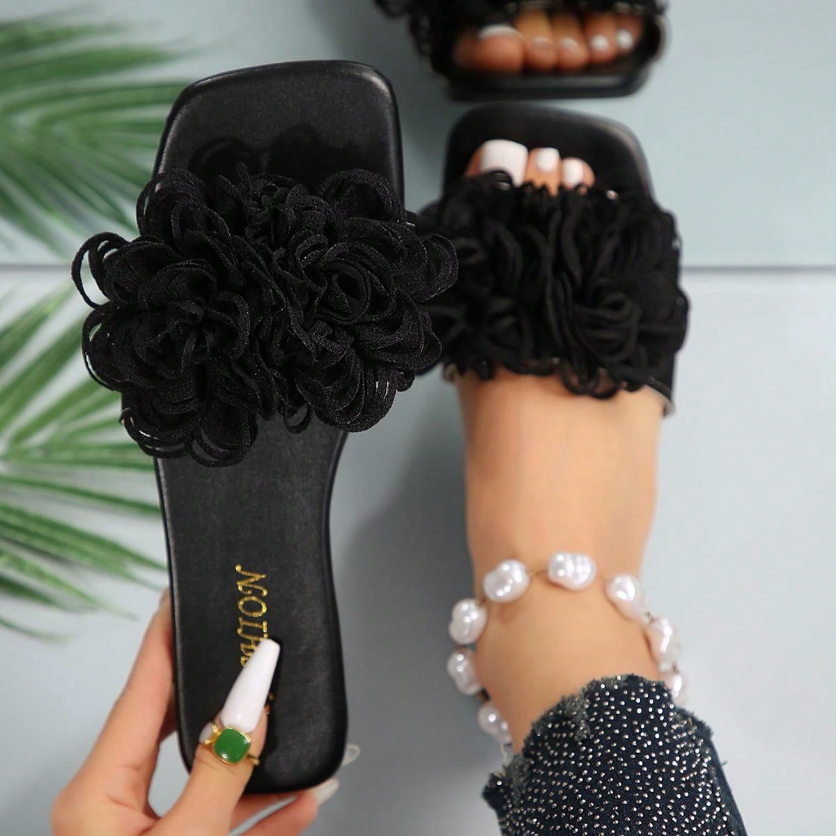 صندل شاطئ صيفي عاري القدم من الأزهار الزخرفية الشعبية العصرية، الوافد الجديد للأحذية الشاطئية الأنيقة